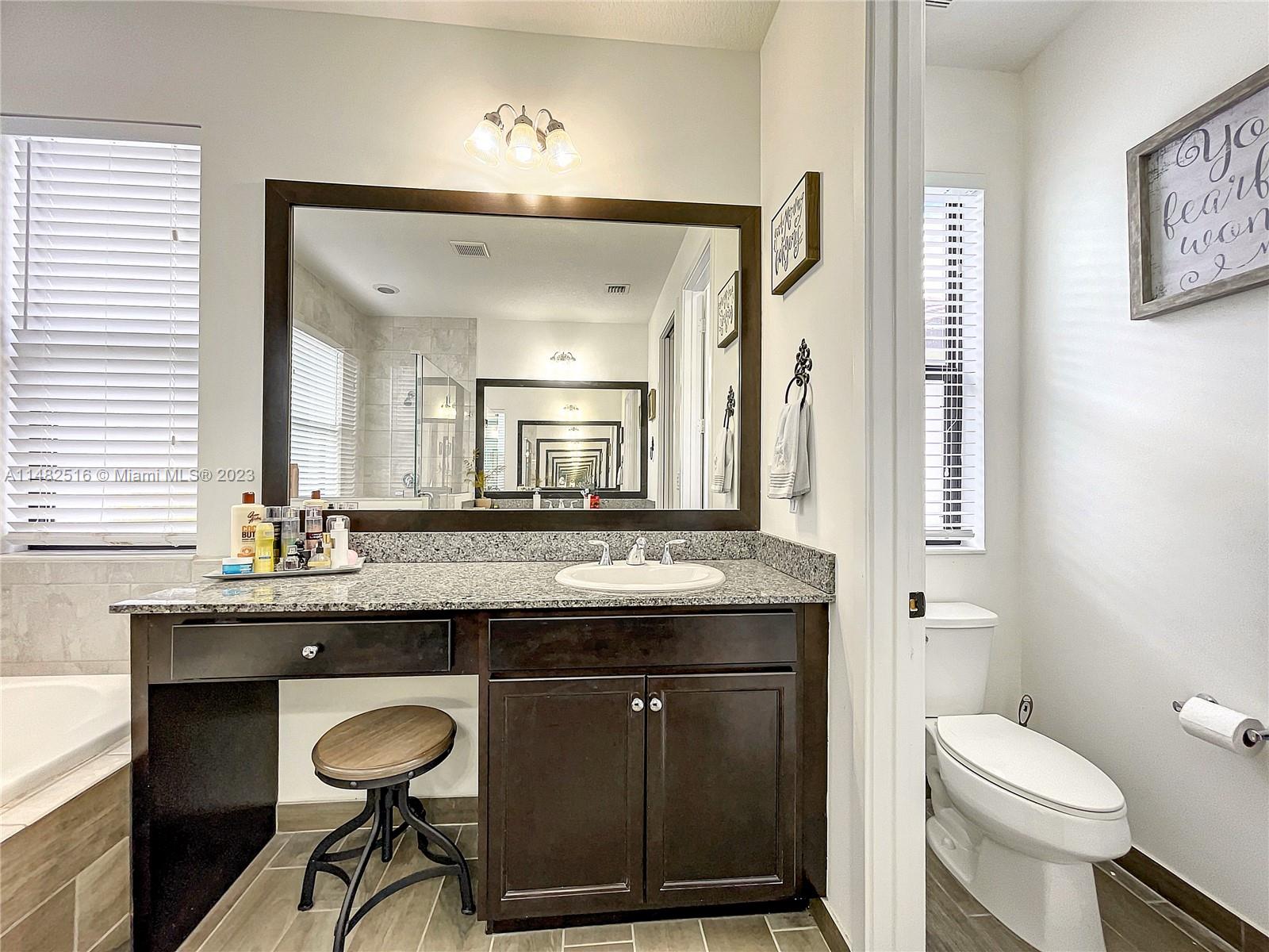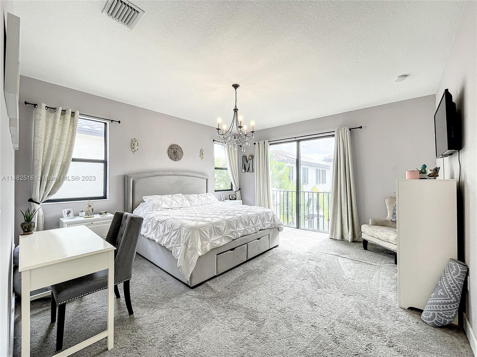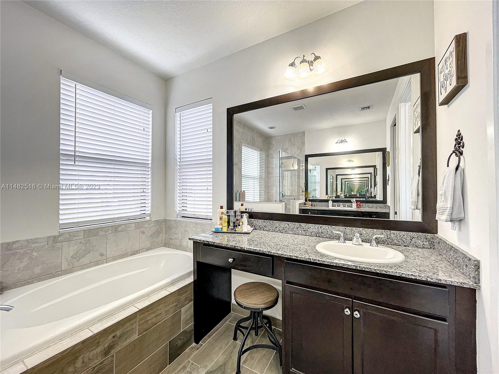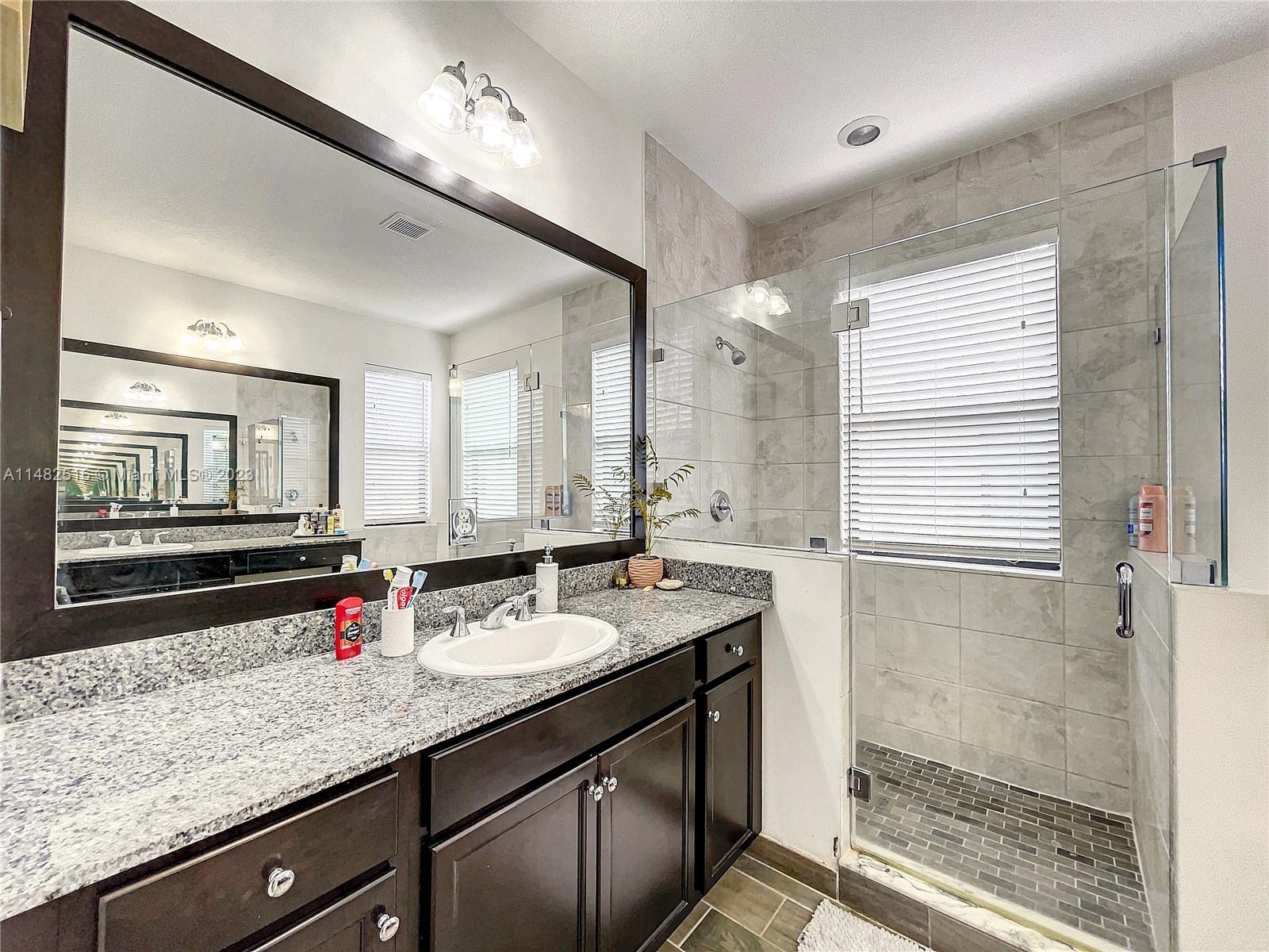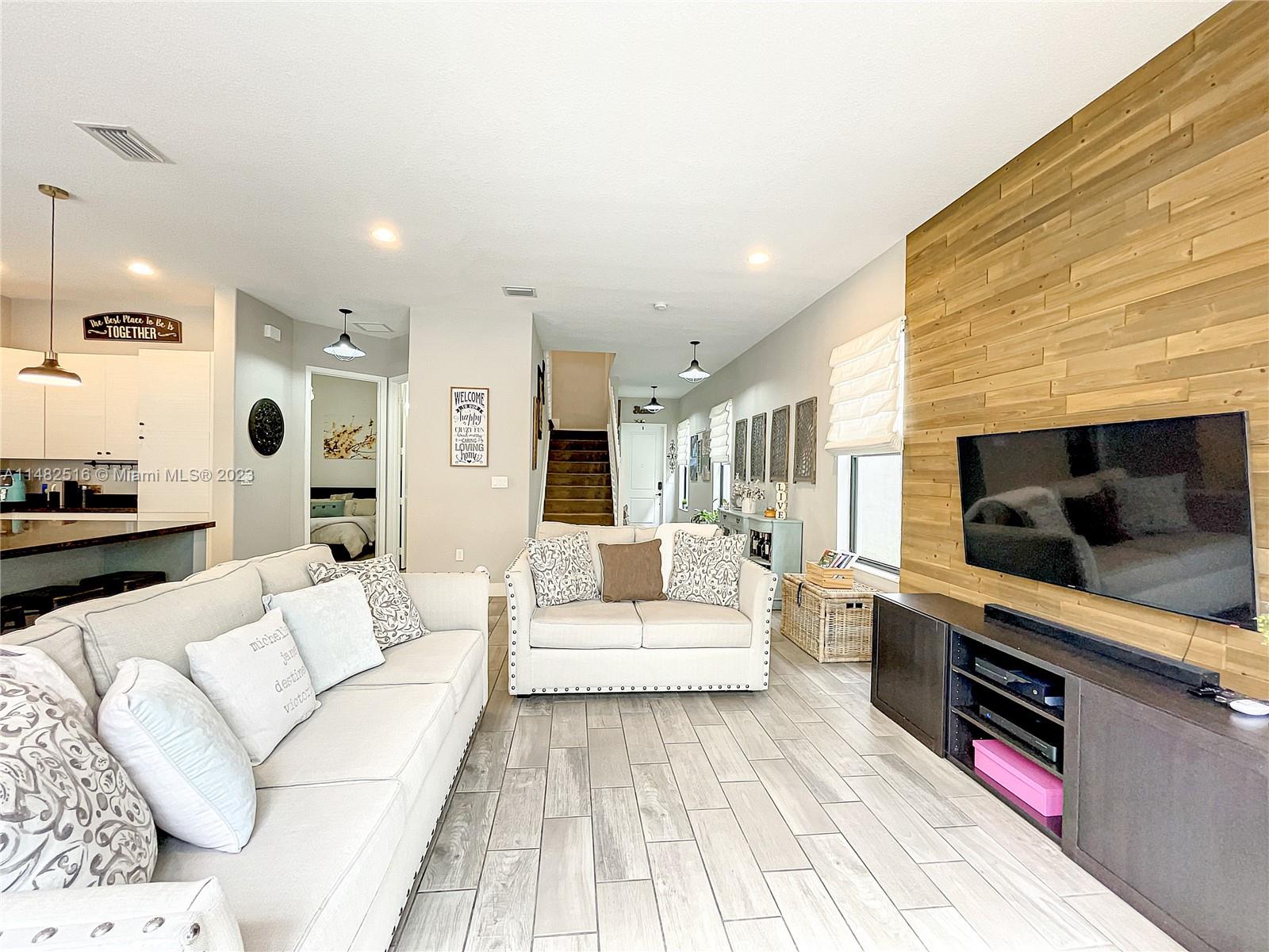 Stunning residence available in the prestigious Bonterra community. This home boasts 5 bedrooms and 3 bathrooms, including a first-floor bedroom! The kitchen offers stainless steel appliances and a generous stone counter island with seating. Upgrades include wood plank flooring, upstairs loft, granite counters throughout, wood plank feature wall, and upgraded lightingl Enjoy your outdoor space with oversized pavered patio, upstairs balcony, laundry, and 2 car garage. Clubhouse ammenities include, gym, pool, tennis, basketball and mini soccer courts. Conveniently located near Interstate I-75 and the Palmetto Expressway. Low HOA!!