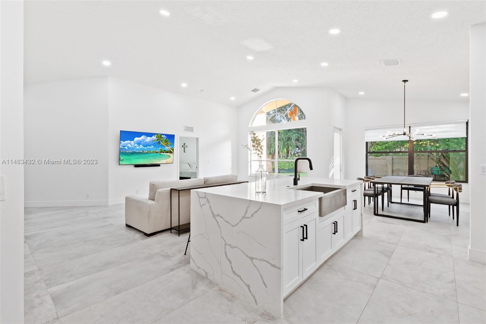Complete Interior remodel in 2022 of this 3 BR, 2.5 Bath home. Split Bed room with vaulted ceilings New re-designed open floor plan with New Kitchen and Quartz waterfall Island and counter tops.Custom Cabinets along with new Steel appliances including a gas range.Newer A/C.Newer Gas Water heater. All new Impact windows and Doors. New Bathrooms with custom floating vanities. All new High Hat lighting throughout. Clear glass Interior doors.Spacious back yard.Community ammenities include pools, clubhouse,tennis 24/7 security and manned gates. HOA fee includes High speed Internet, Cablwe and ADT home security. Great Pembroke Pines Schools. Convenient to I-75 and close to shopping.