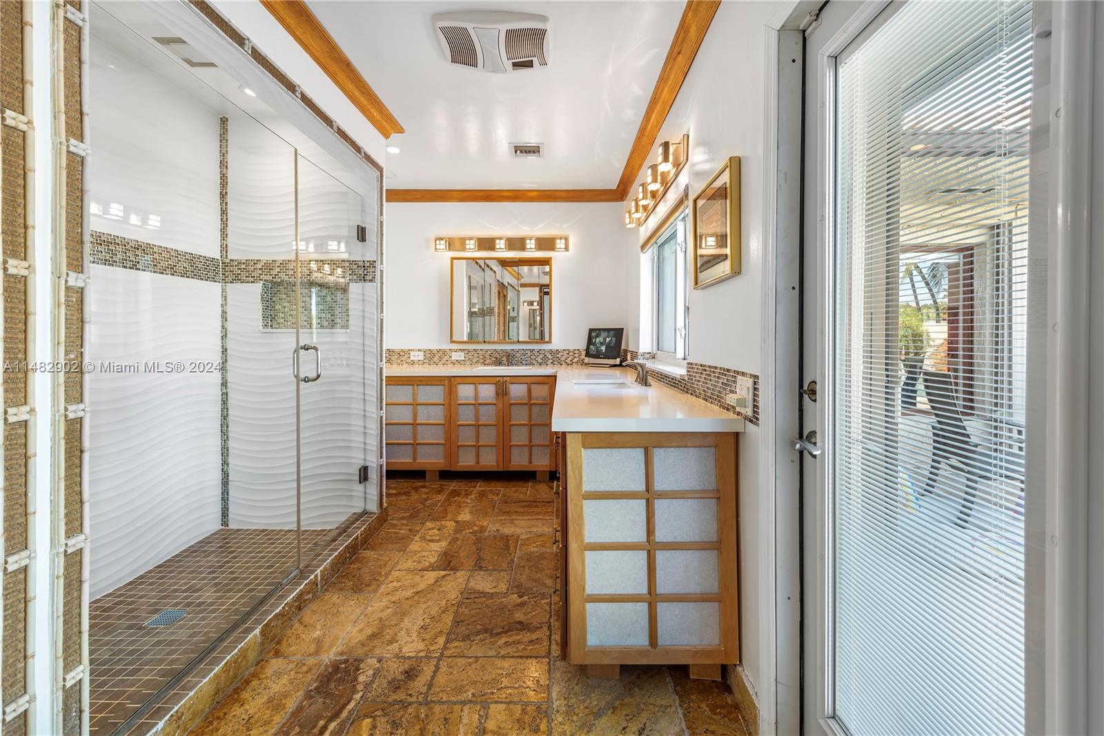 Nestled within the secure confines of the gated Keystone Islands, this residence epitomizes luxurious waterfront living. Waterfront the property bestows captivating Biscayne Bay views. Inside, the interior seamlessly marries modern elegance with timeless charm. The gourmet kitchen is equipped with top-tier appliances, resplendent quartz countertops, and a spacious butler’s pantry. The primary suite features picturesque water vistas, and a spa-like en-suite bath, creating a sanctuary of comfort. Outside, a dock extends a warm invitation to boating and fishing enthusiasts. With three generously appointed bedrooms, three exquisite bathrooms, a 2-car garage, and an abundance of storage space, this residence offers spacious living areas that beckon with sophistication and refinement.
