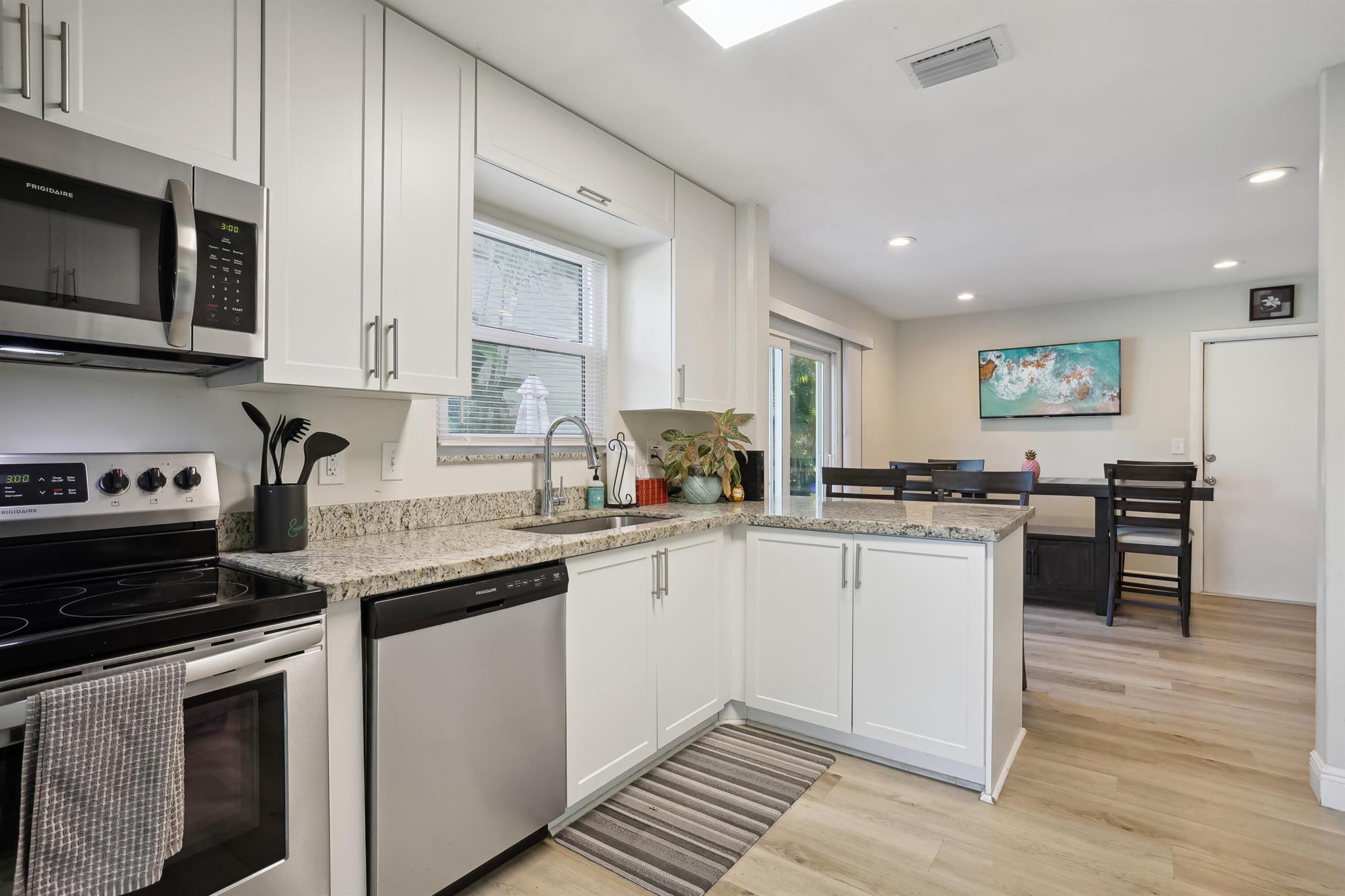 Welcome to your newly remodeled 4-bedroom, 3-full bath, single-family lakefront pool home! This stunning property has been thoughtfully updated with design elements that are sure to impress. From the moment you step inside, you'll be captivated by the modern upgrades and impeccable attention to detail. As you enter, you'll notice the brand-new flooring that flows seamlessly throughout the entire home, creating a fresh and inviting atmosphere. The custom-designed kitchen is a true highlight, boasting new upgraded granite countertops and crisp white shaker cabinets. It's not just a kitchen; it's a culinary masterpiece waiting for your creativity to shine. The family room features vaulted ceilings, adding a sense of spaciousness and airiness to the living space. Whether you're relaxing