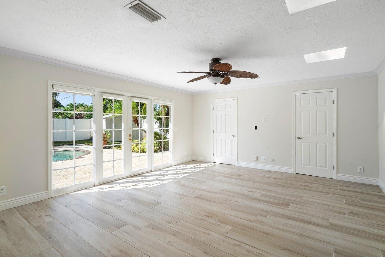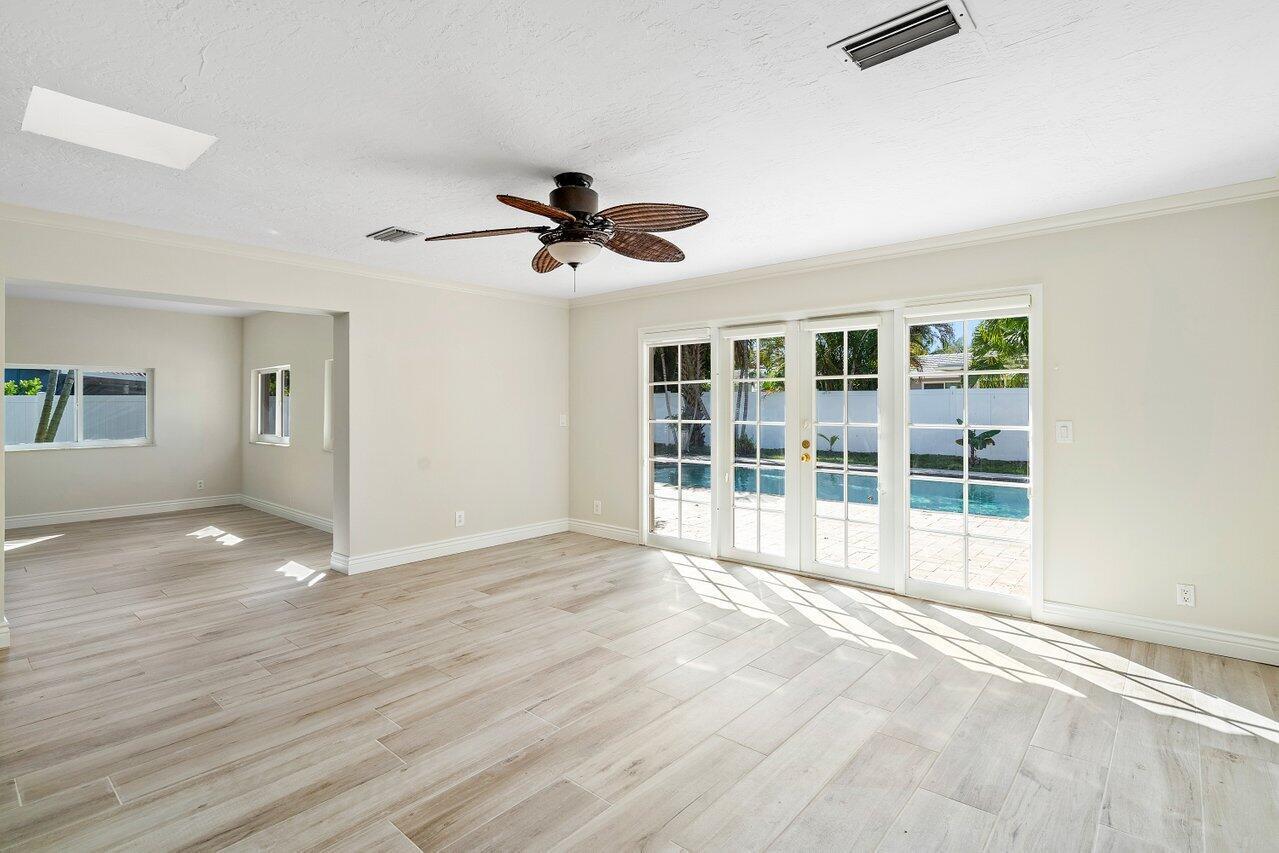 Brand new roof being installed!! Lovely, renovated pool home. Light, bright, wide open, split floor plan. Impact windows and doors throughout! Large plank porcelain floors and tall baseboards. Kitchen features: Granite counter tops, tile back splash, stainless appliances and custom cabinets. Large family room with skylights. Beautiful swimming pool with marble deck in a herringbone pattern. Huge laundry room. Spacious garage with extra storage. All highly rated schools: Addison Mizner Elementary, Boca Middle and Boca High. You can easily ride your bike to the beach via Camino Gardens Blvd and Camino Real. Mizner Park & Royal Palm Place offer outstanding dining, shopping and entertainment. The Boca Downtown area is less than 2 miles away. You just can't beat the location.