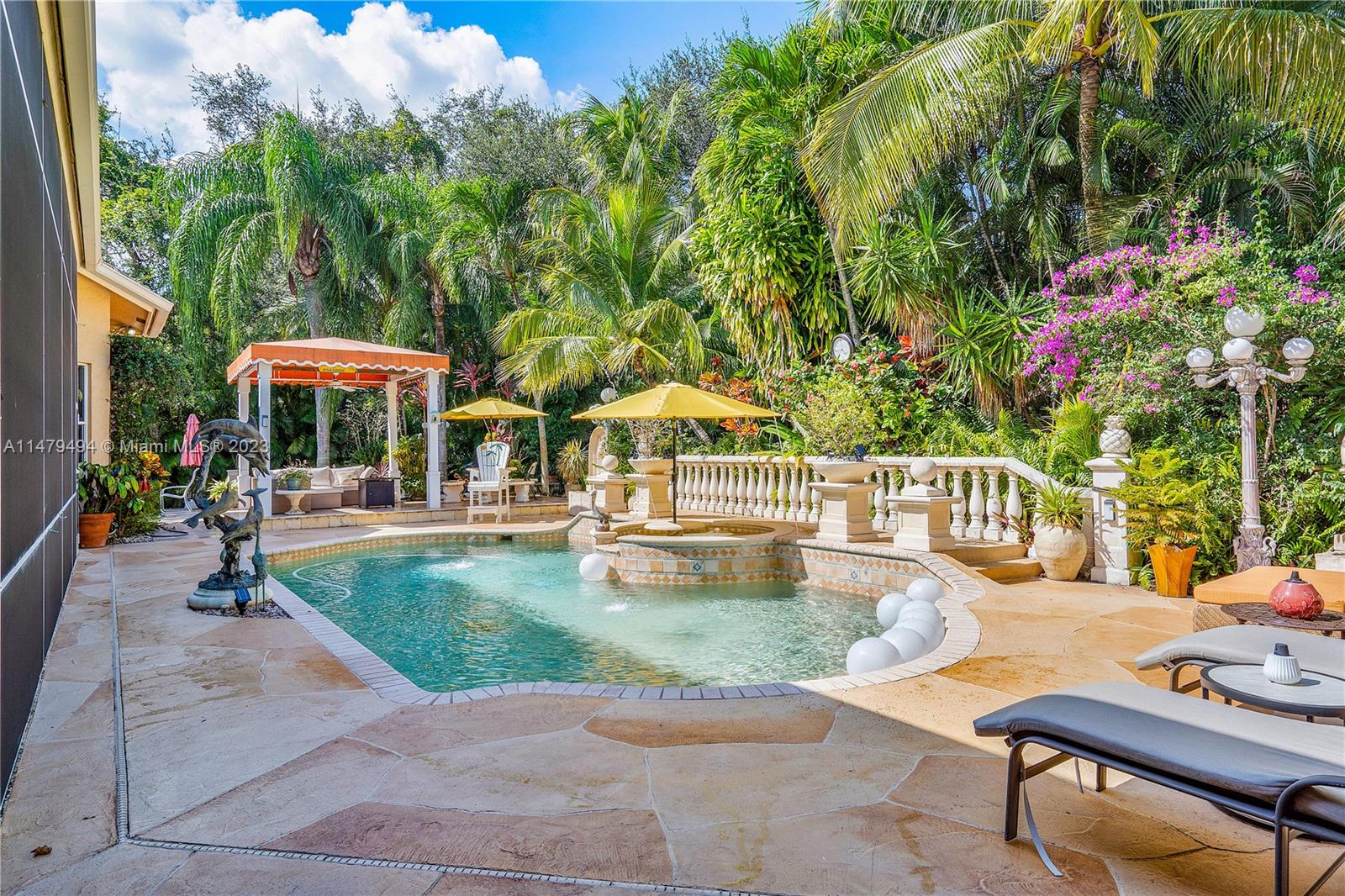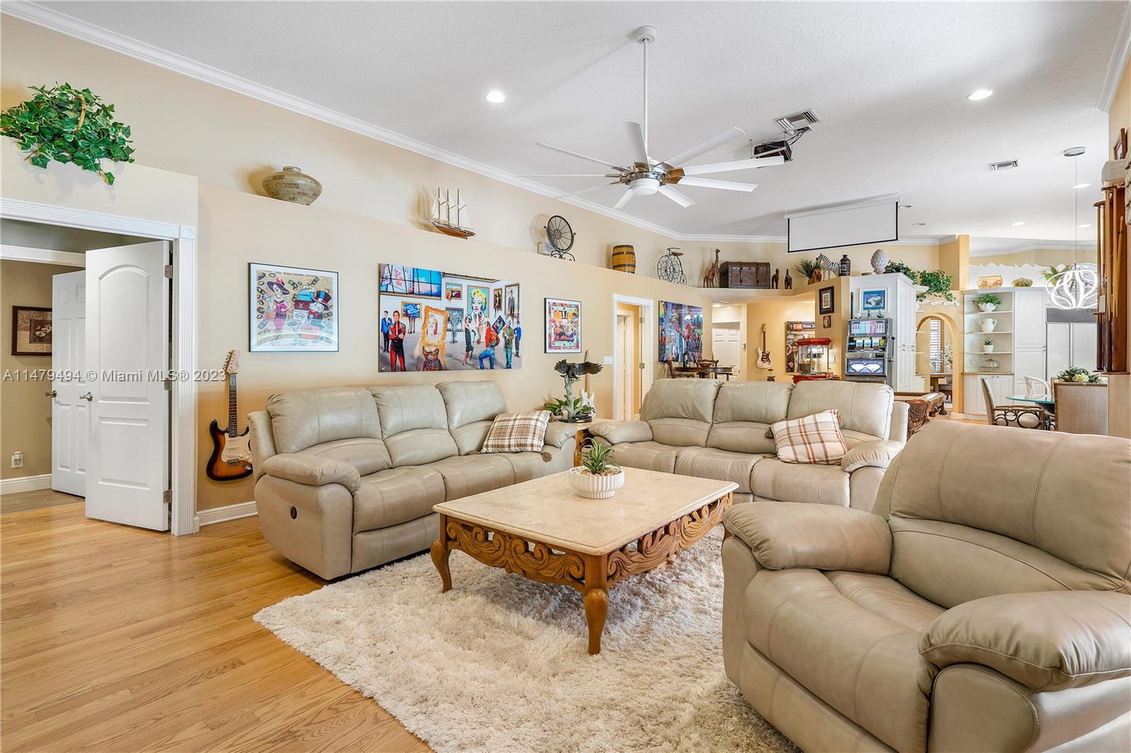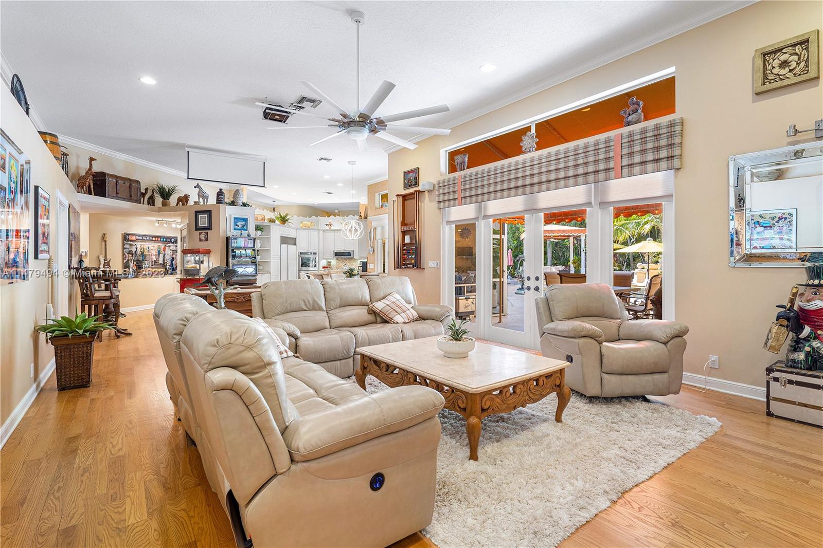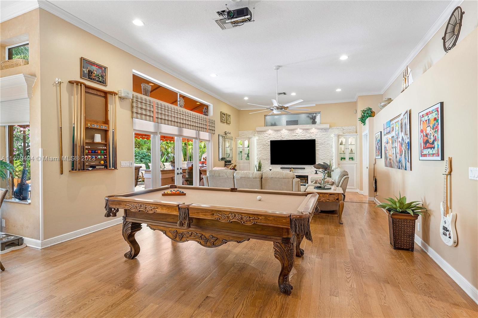 Amazing 5 Bed 3.5 Bath W/ 3 Car Garage In Prestigious Gated Parkland Landings Estates! This Home Includes A Full Guest House W/Private Entrance. Large Open Living/Dining Room 18 Ft Volume Ceilings, Hardwood Floors & Crown Molding. Large Open Kitchen W/ 48'' In Wood Cabinets, Granite Counters & Backsplash, Pantry W/ Pullouts, Sub Zero Fridge, Breakfast Bar, Kitchen Aid Appliances, Double Wall Oven, Cooktop, Microwave, And Lots Of Storage. Wine Closet. Large Open Family Room W/ Custom Wall. Primary Suite W/ Wood Plank Tile, Crown Molding, Tray Ceilings, Sitting Area & Overlooks Pool & Patio. Dual Walk-In Closets W/ Built-Ins. Primary Bath W/ Dual Vanity & Bidet. Jetted Tub & Double Head Shower. Wood Burning Fireplace. 3 Newer AC's. Some Impact Windows & Doors. Putting Green & Backyard Oasis