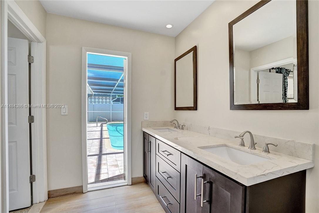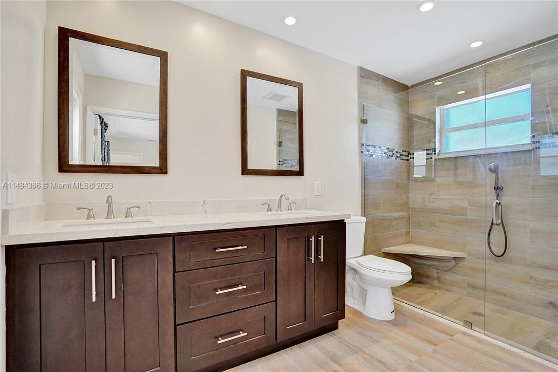 Beautifully renovated four bedroom two bath home in the highly desired Hollywood Hills. This home features a huge backyard filled with fruit trees including Florida avocados, starfruit, plantains, and mangos along with a large screened in pool perfect for all outdoor entertainment. Pool pump, diamond bright, pavers, and screened patio all updated in 2016. The recently remodeled kitchen offers full view of the backyard and pool area letting in plenty of natural light. There is an additional covered storage area in the backyard as well as large carport, enough to fit a boat and a car. Heated pool. Roof was replaced in 2015. AC and water heater were replaced in 2016. Exterior of home freshly painted early 2021. AIRBNB certified.