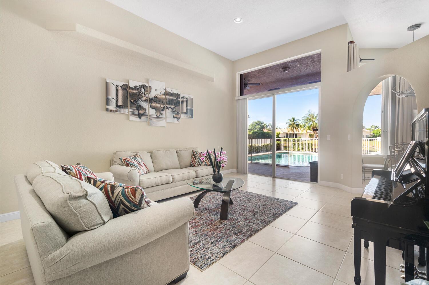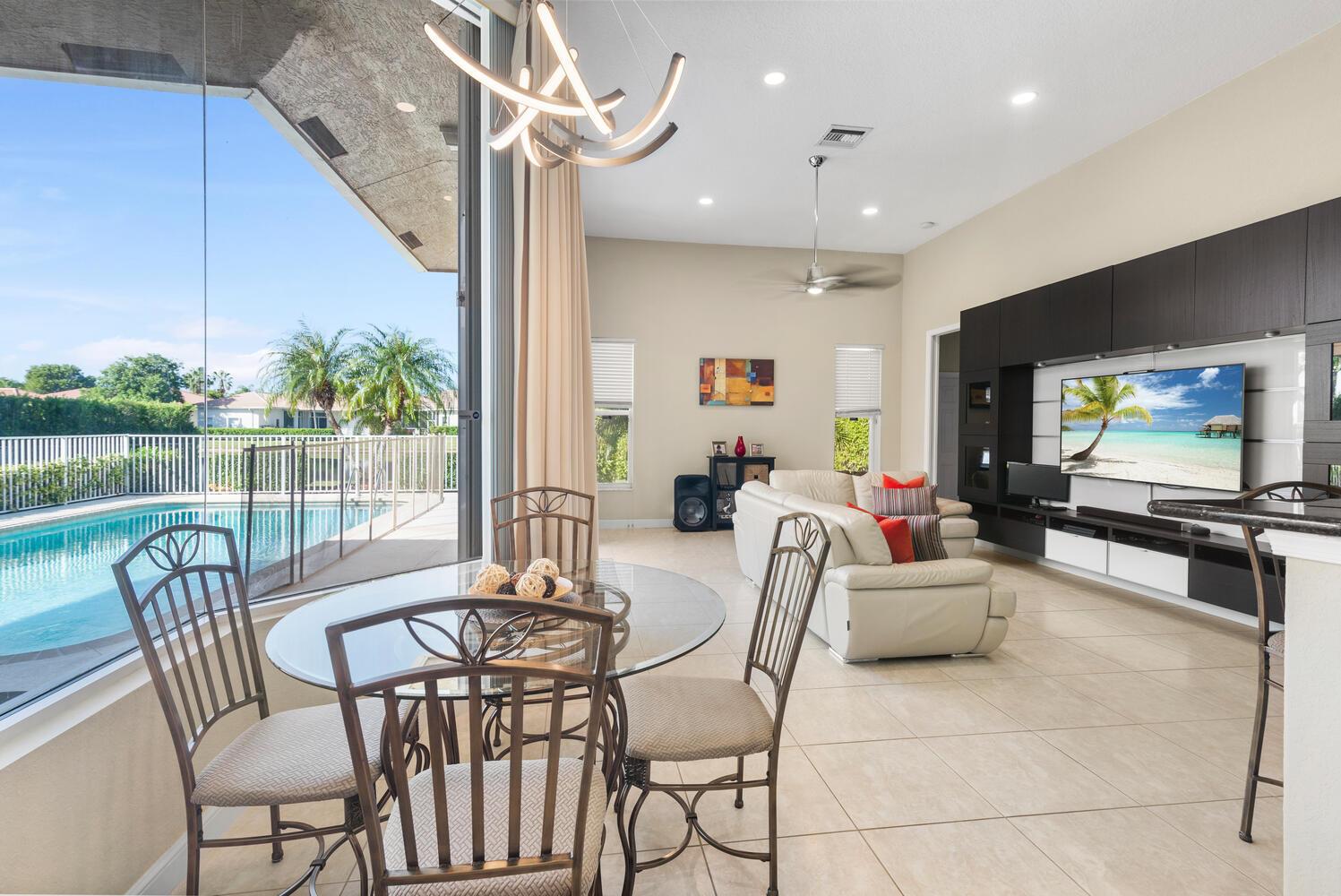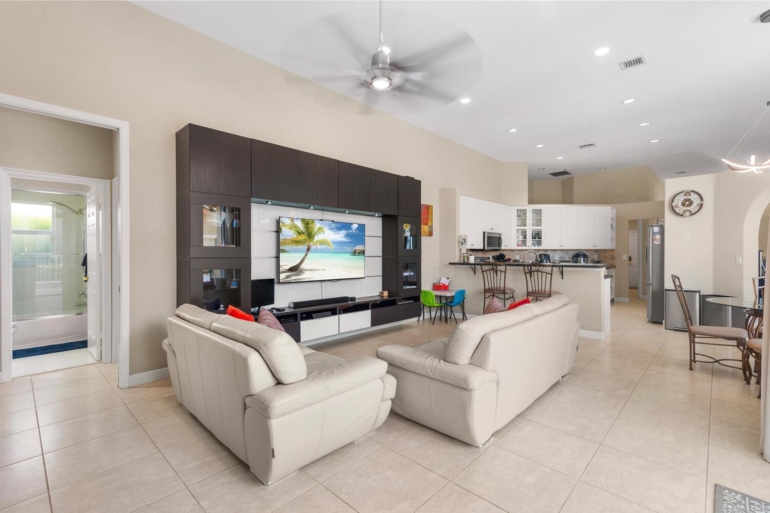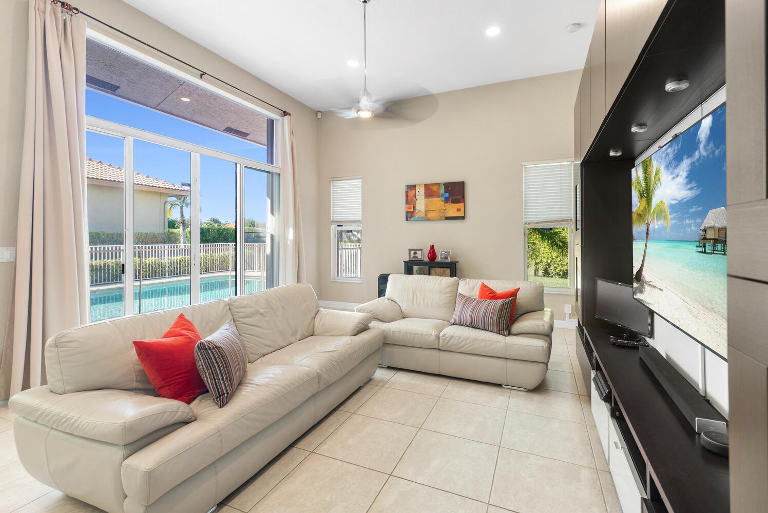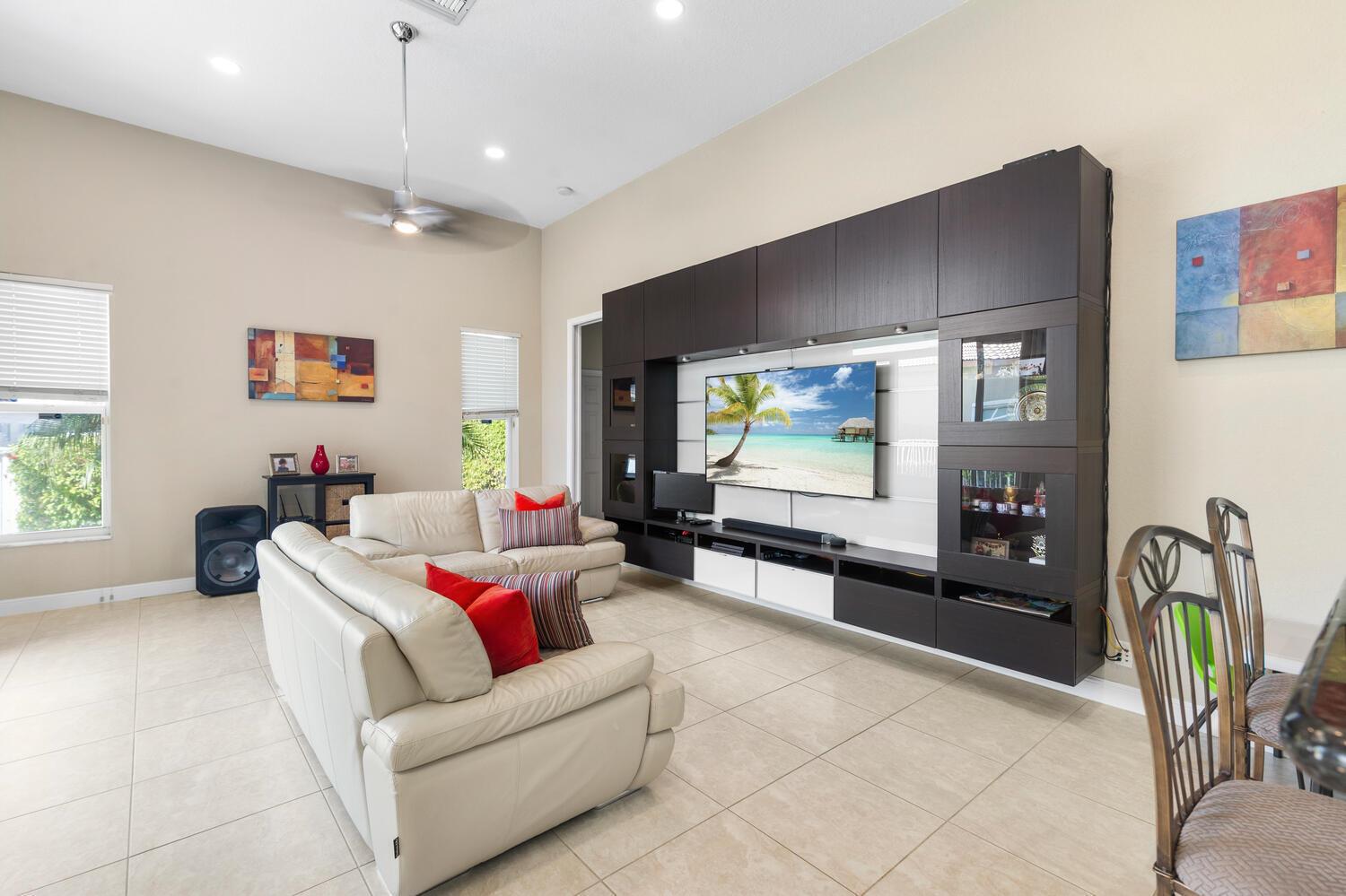 Welcome to Pelican Isle at Wyndham Lakes! This stunning 4BR/3BA home offers a serene lake view and spans 2,672 sq ft on a spacious 0.26-acre lot. Boasting a 3-car garage with a Chamberlain opener, LG washer/dryer set, and GE water heater, it's equipped for convenience. Experience safety with accordion shutters and enjoy a private, fenced-in pool. The interior features updated baths, ceramic tile floors, and a custom entertainment system. High arched windows, tall ceilings, and a formal dining space add elegance, while the master bath offers a step-in shower, dual sinks, and a separate tub. Walk-in closets complete the master suite. Your Coral Springs haven awaits!