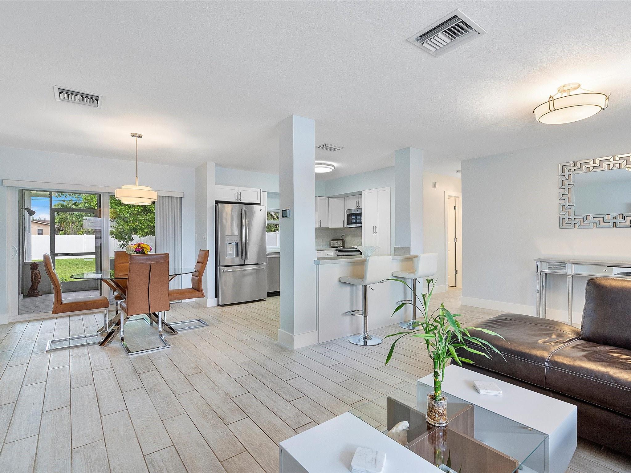 Completely Renovated 3 Bedroom 2 Bath in HIGHLY Sought-after Hollywood Hills. The home features an open concept, a split bedroom floor plan, porcelain tile throughout, and a huge screened-in lanai. Every inch of this one was renovated with an eye toward timeless design including electrical, lighting, HVAC ceilings, built-ins in each closet, and impact windows & doors. The kitchen is modern with white cabinets, quartz counters, glass tile backsplash, and stainless steel appliances. The Primary suite is spacious with an ensuite bath, walk-in closet, and sliders to the lanai. There's plenty of room for a pool, an oversized garage and a circular driveway. The picturesque community is close to parks, shopping, the beach, schools, the airport, and lots of golfing.