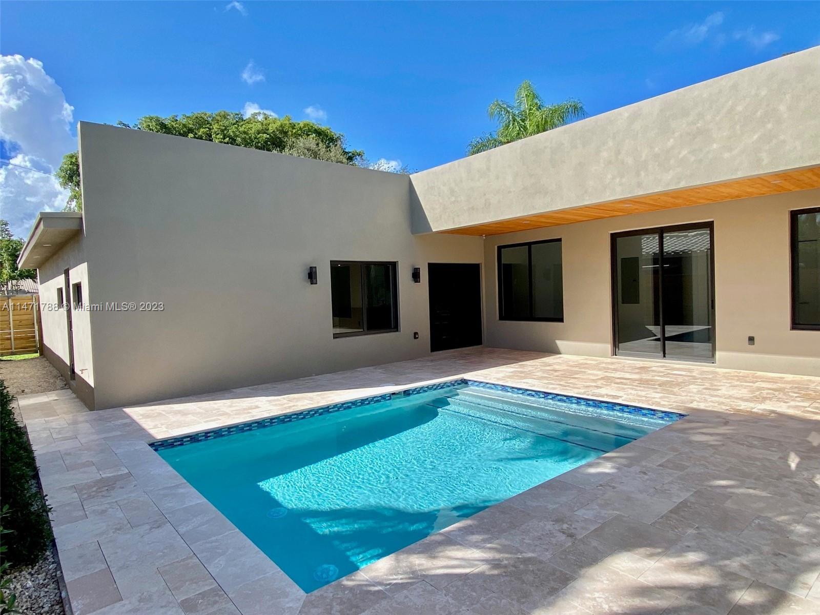 Welcome to a modern oasis of luxury! This newly constructed residence offers a spacious 2800sqft living area with 4 bedrooms and 4 bathrooms. The massive open-concept kitchen, featuring a central island, is a culinary masterpiece, seamlessly blending style and function. The primary bedroom is a luxurious retreat, featuring an ensuite bath with both a tub and shower for the ultimate relaxation experience and a huge walk-in closet. Every room offers a captivating view of the private pool. Enjoy the touch of luxury with travertine floors surrounding the pool area, adding a sophisticated touch to your outdoor haven. Don't miss the opportunity to call this modern masterpiece yours. Schedule a showing today and step into a new chapter of luxurious living!