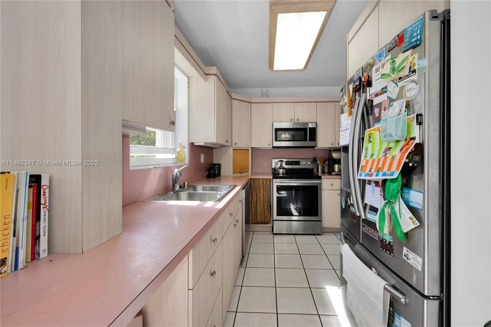 Charming Mid-century 2 beds & 1 bath home in the heart of North Miami! Features incl. a spacious floor plan, well-kept kitchen w/ newer appliances that faces the formal dining area, large rooms, charming Art Deco bathroom, impact windows and hardwood & tile floors throughout. Located on a 8,220 sf lot with plenty of room for a pool & tons of green space, this is the perfect place to enjoy a nice family gathering & call it HOME! Additional features include lots of natural light, great closet space and a full size garage. Conveniently located near Biscayne Blvd, all the local shops, restaurants, supermarkets and within a 10 min drive to the beach. EASY TO SHOW.