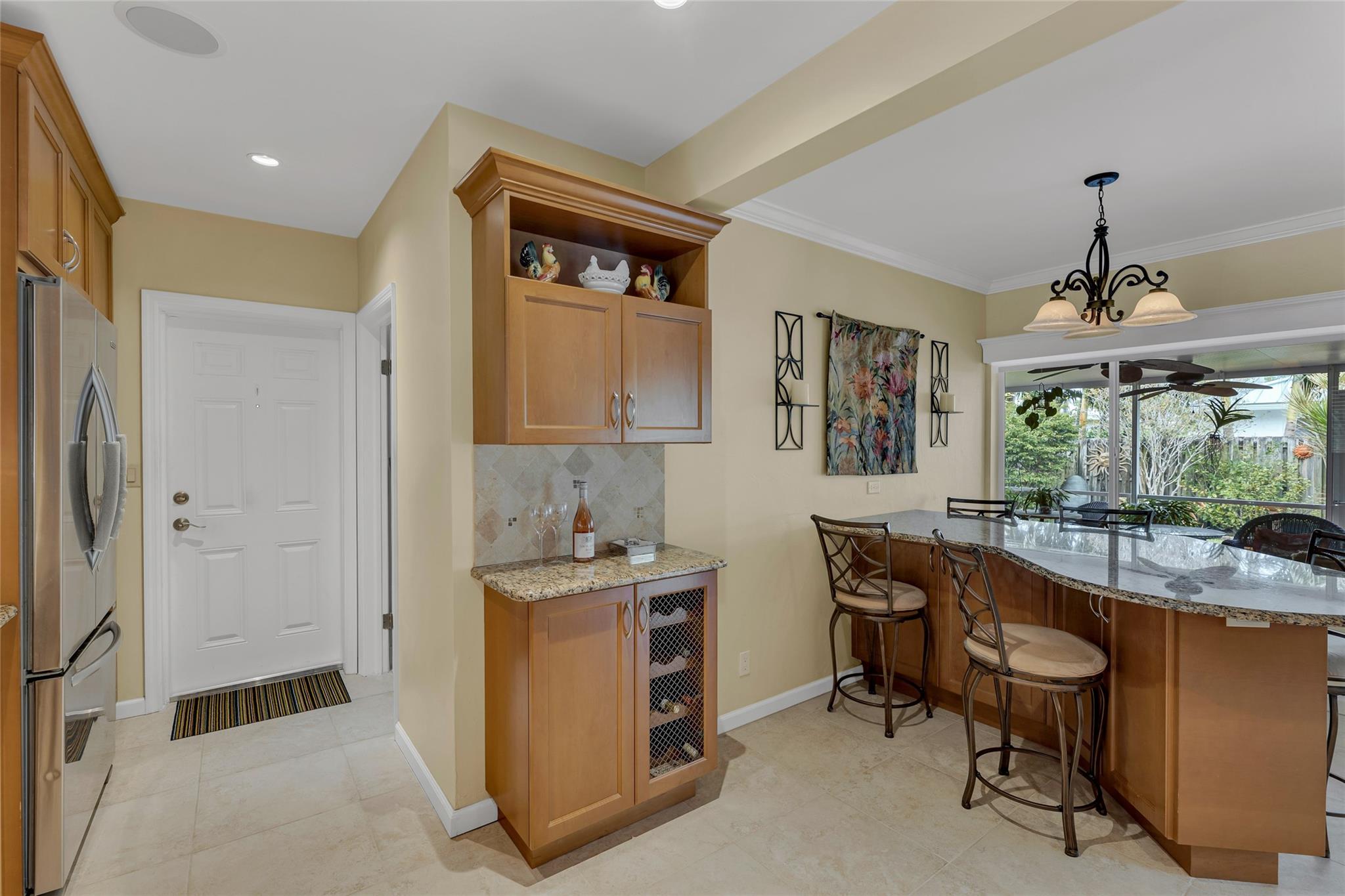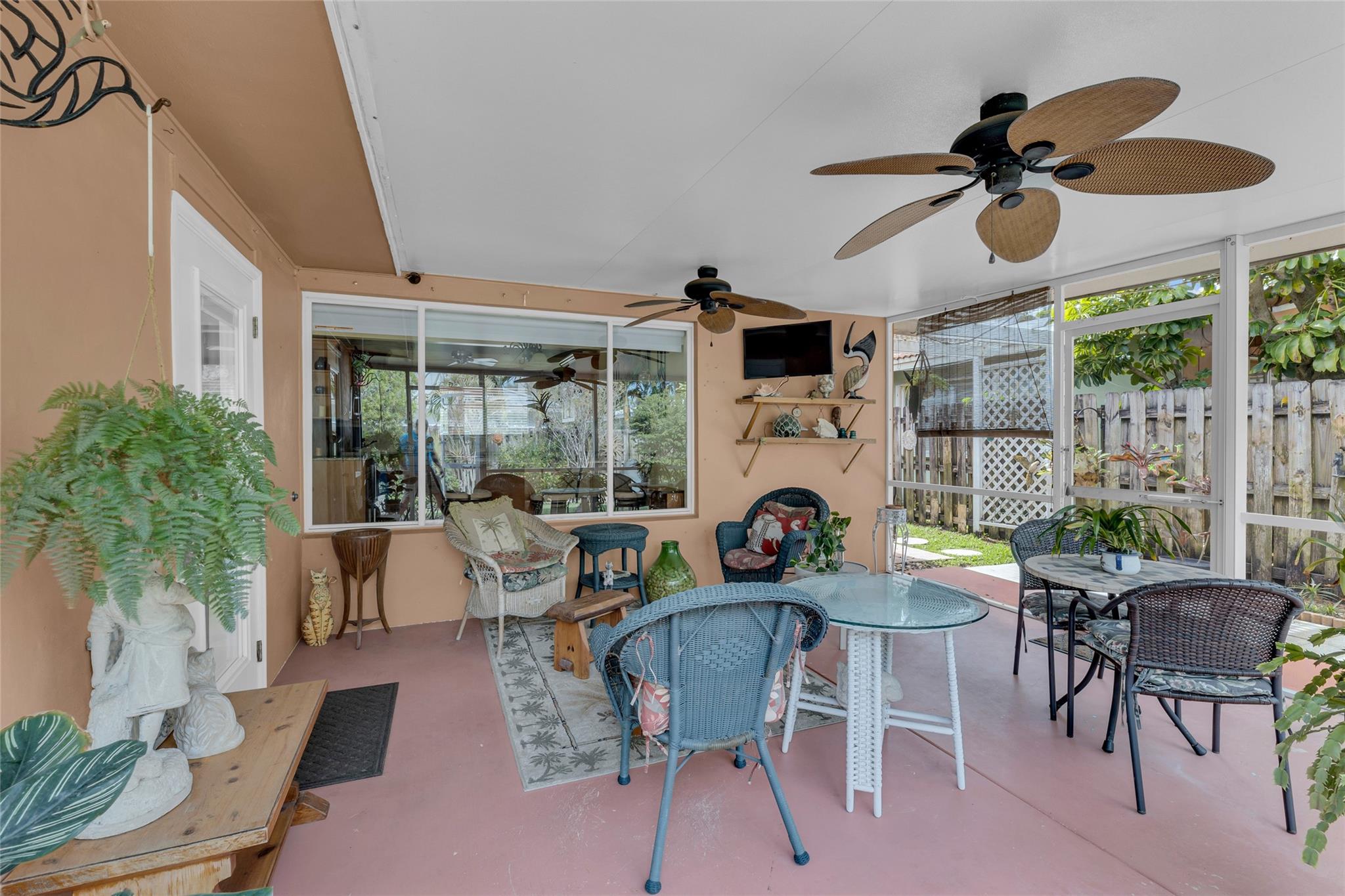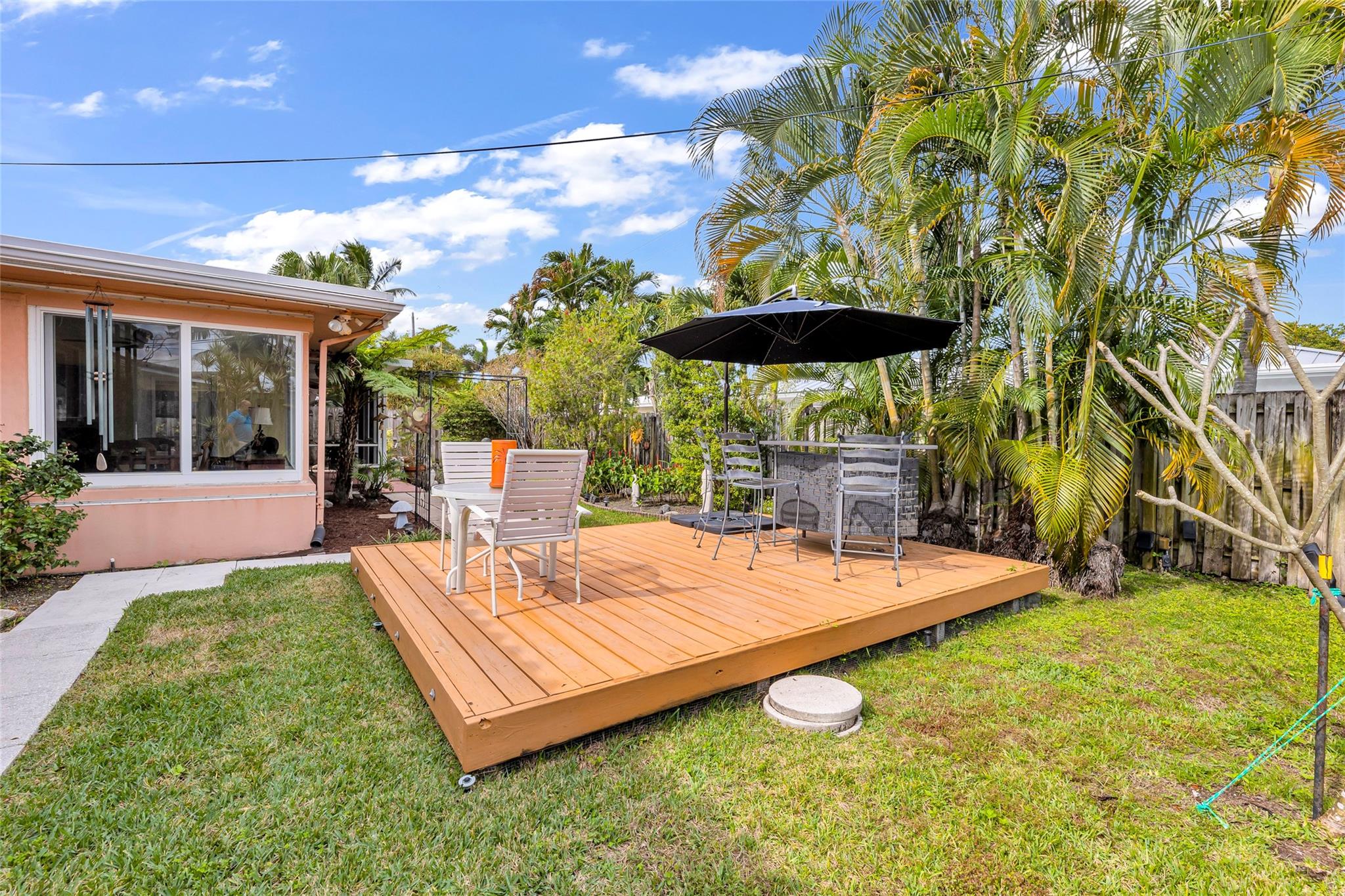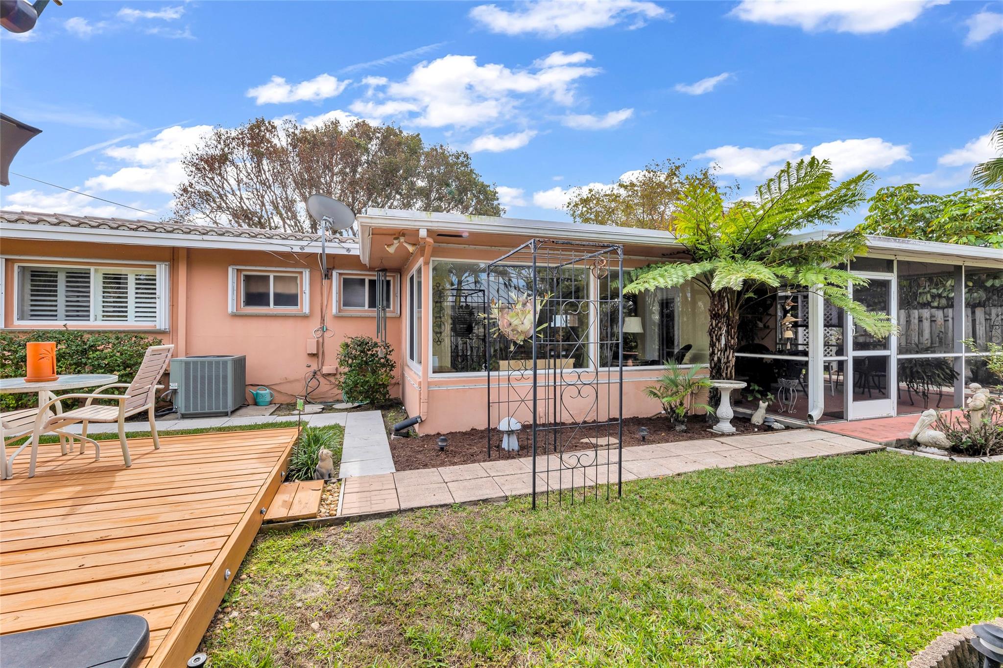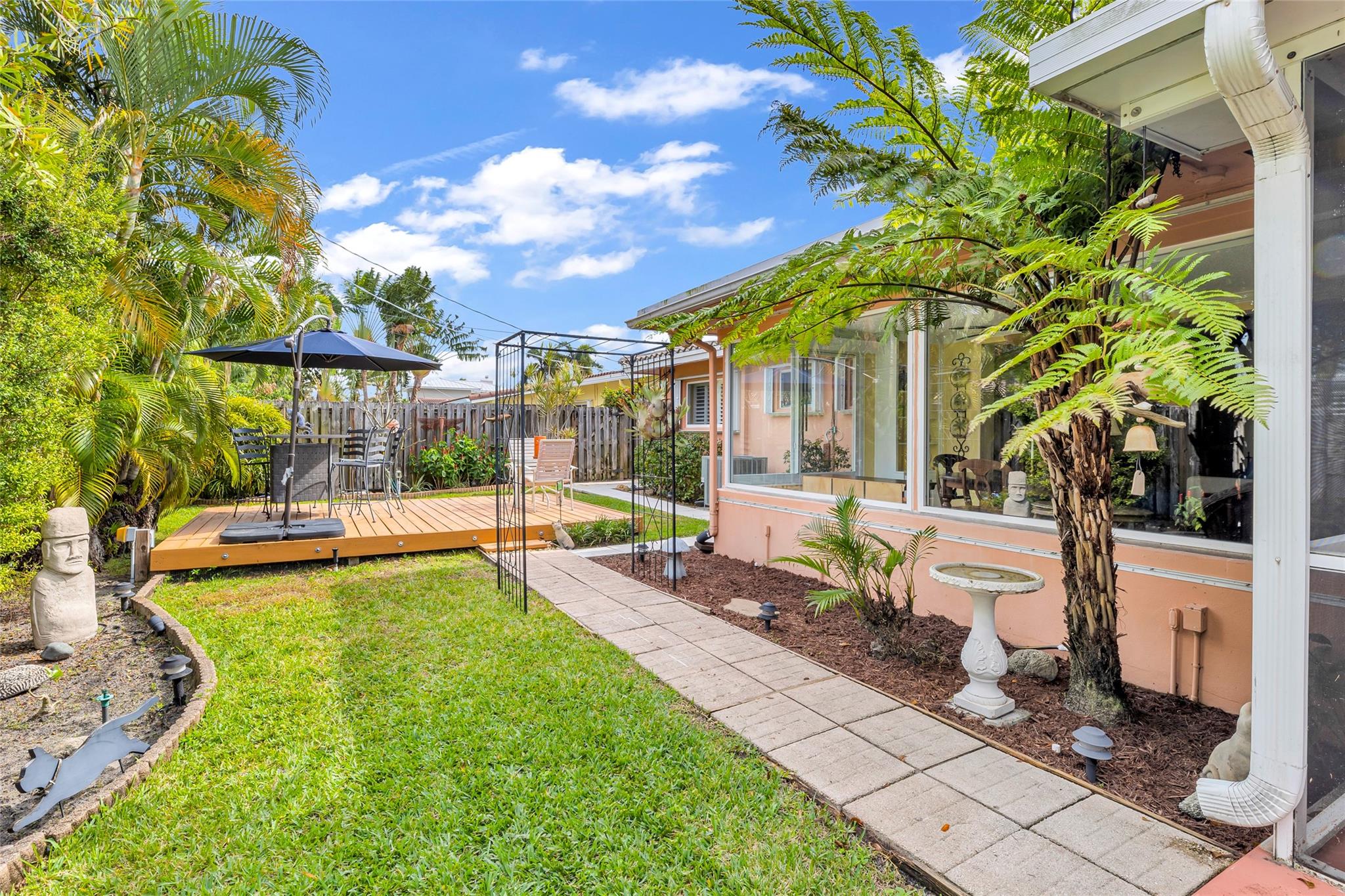 Coastal Sunlit Home in a Delightful Neighborhood! Be greeted by a large shade tree perfect for a tree house as you drive up the pavered driveway. Upon entering the home, large impact picture windows bring your eyes attn to the tranquil & tropical backyard. The livingroom opens to a breakfast island & into a 2010 updated kitchen, with recessed & undermount lighting, custom granite counters, & stainless appliances. Yes, there are walk-in closets & plantation shutters! Outside is a screened in patio, an open wood deck that could be removed for a pool, & 4 sheds that stay. No mandatory HOA so you may rent right away! Close by is 3 miles of wide white sand beaches, the new entertainment hotspot of Pompano Beach's fishing pier area, Greg Norman Golf Course, pickle ball, amphitheater & shopping.