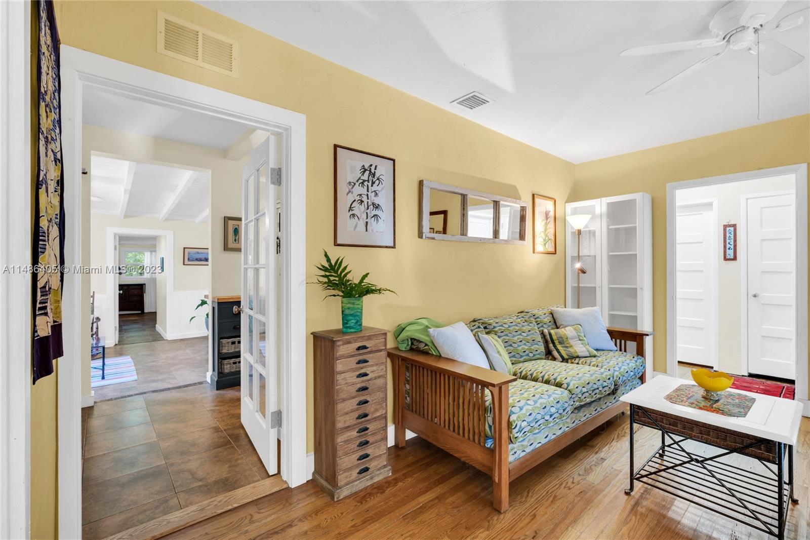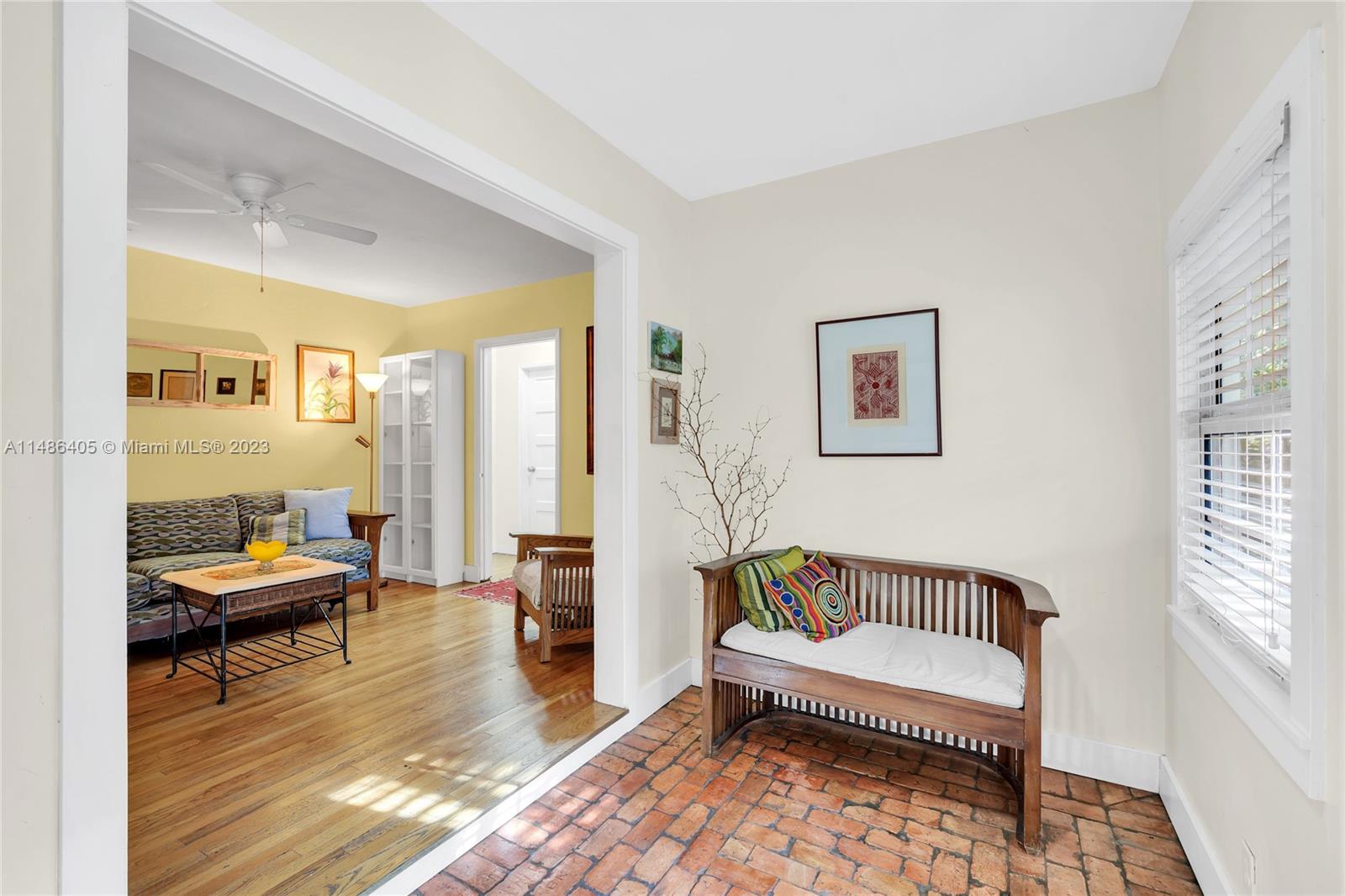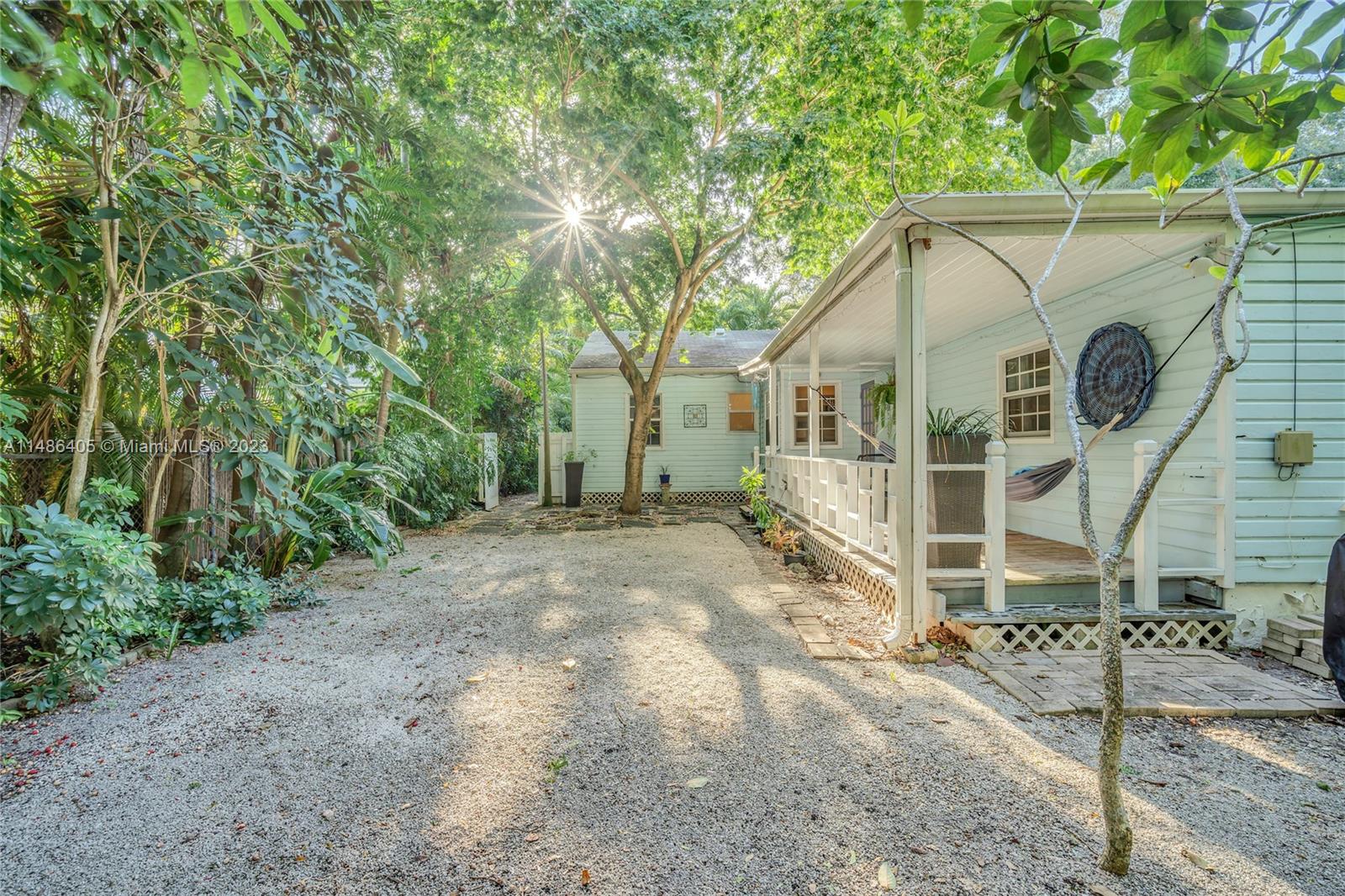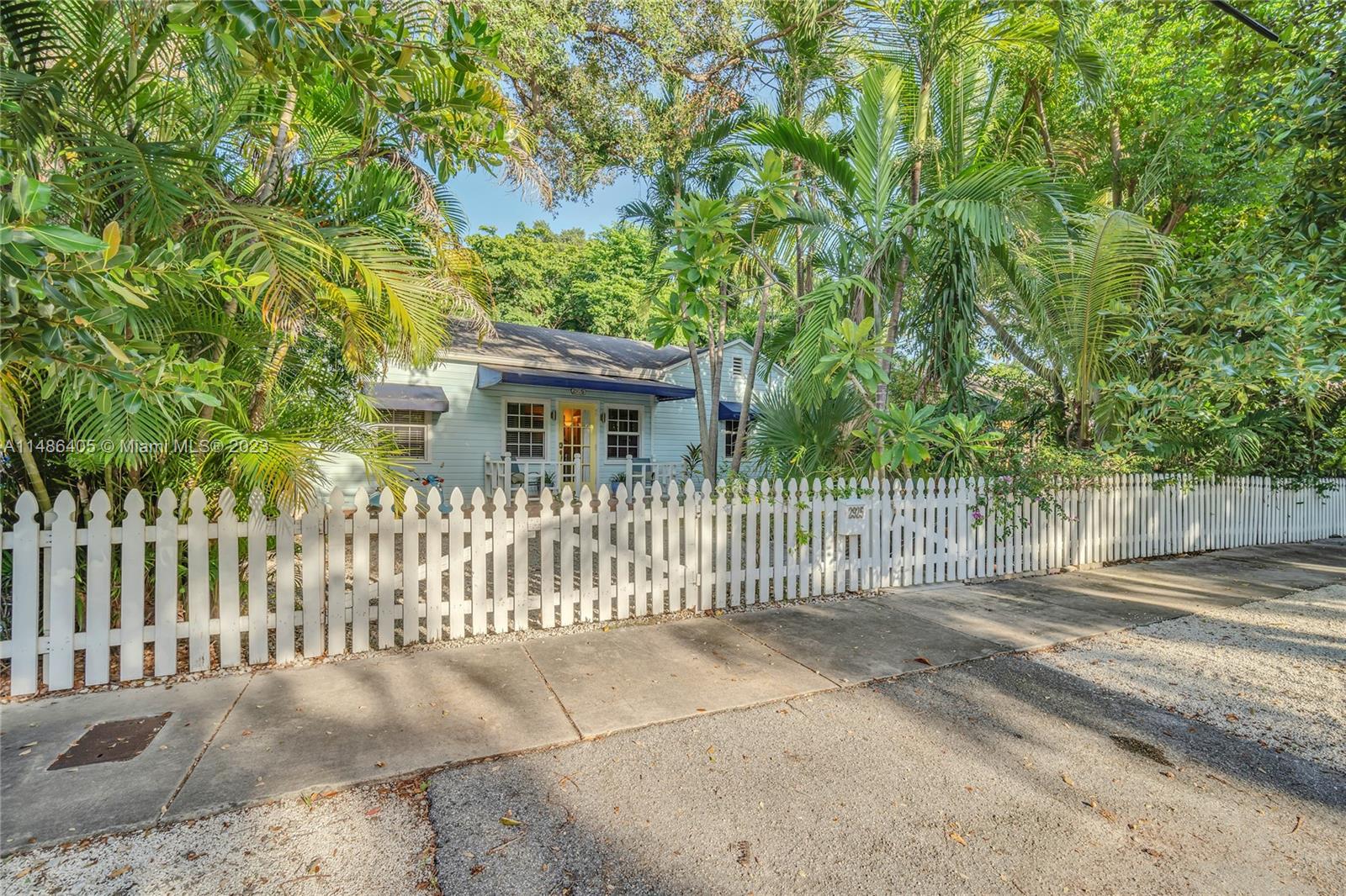 Cape Cod in Coconut Grove! This charming Center Grove single family home is located on a quiet, tree lined street many other single family home neighbors from the same era. It offers four spacious bedrooms, two full baths, formal living area in addition to family room and dining room where the open kitchen is located. Primary bedroom is located towards the rear of the property and offers privacy from the other three bedrooms and full bath. Home has two welcoming covered patios, one in the front of the house and on the side. All openings are impact except for two doors and one small bathroom window. There is a full attic with access ladder for amazing storage plus a detached shed. Not in a flood zone. Property is zoned duplex and suitable for development of two large town homes.
