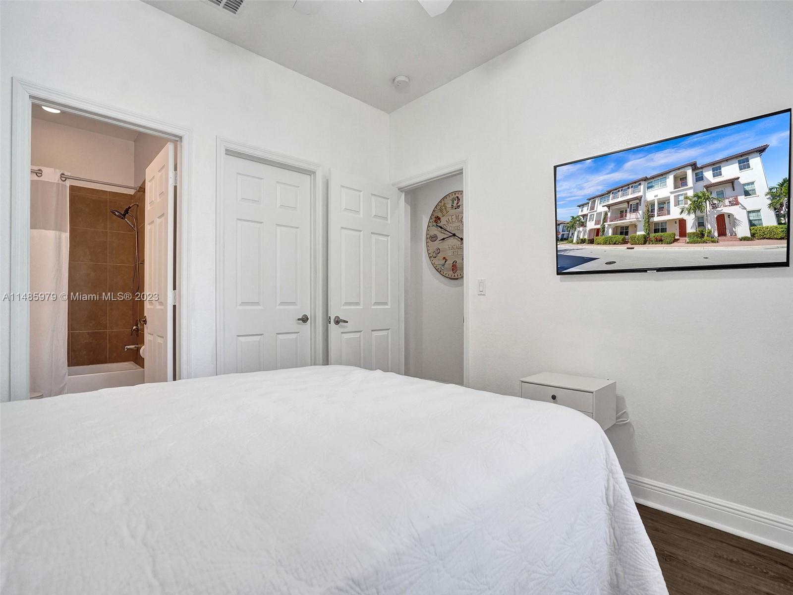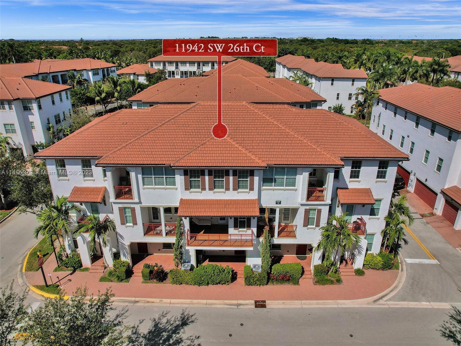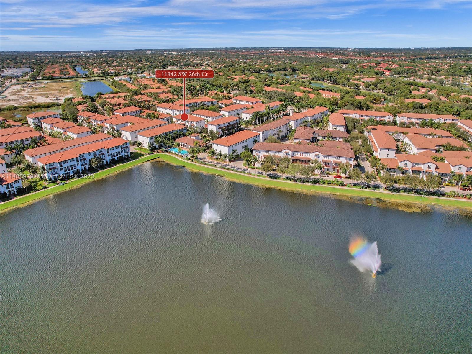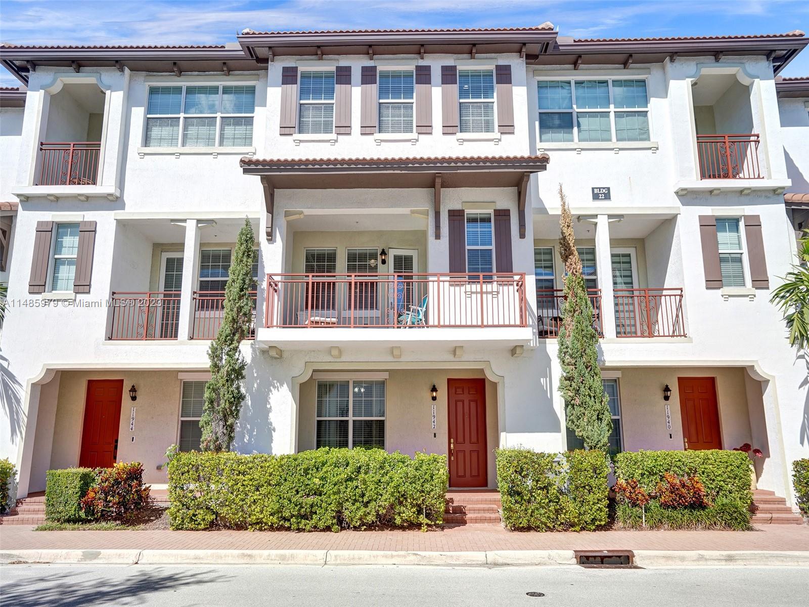 Discover the largest 3-story townhome model in Montclair's gated community in Miramar. This residence boasts 3 bedrooms, 3.5 bathrooms, and a 2-car garage with hurricane impact windows and a spacious balcony. The kitchen features 42" European-style wood cabinetry, a large island, quartz countertops, and stainless-steel Whirlpool appliances. Stylish upgrades include an elegant glass chandelier, tile, and laminate flooring. The master bedroom offers Ikea custom closets. Centrally located with amazing amenities including a clubhouse, gym, pool, and more. A ground-floor bedroom with an ensuite bathroom adds convenience. Residents can unwind in the scenic pool area overlooking a serene lake. Enjoy tranquility in this quiet, upscale community.