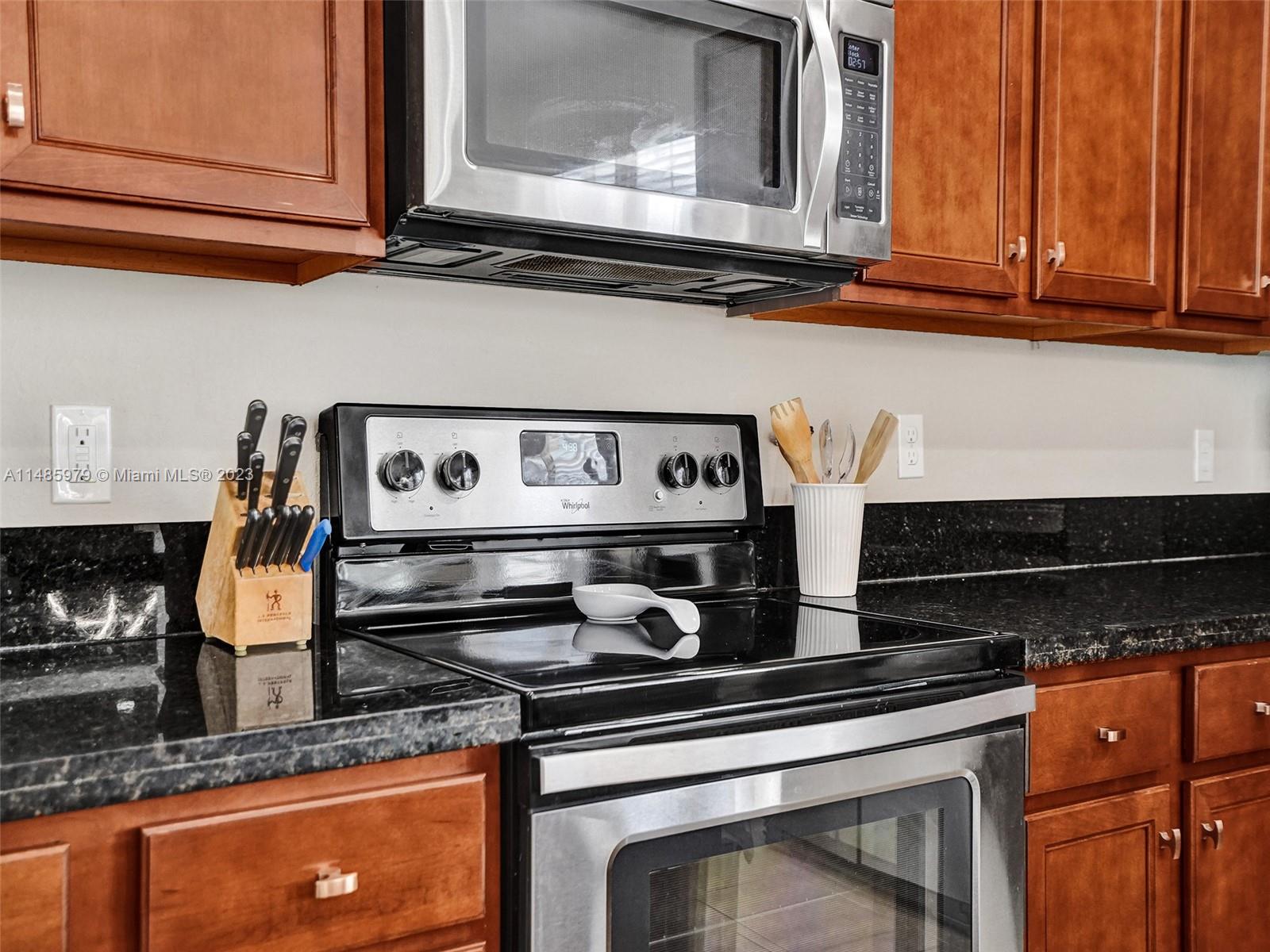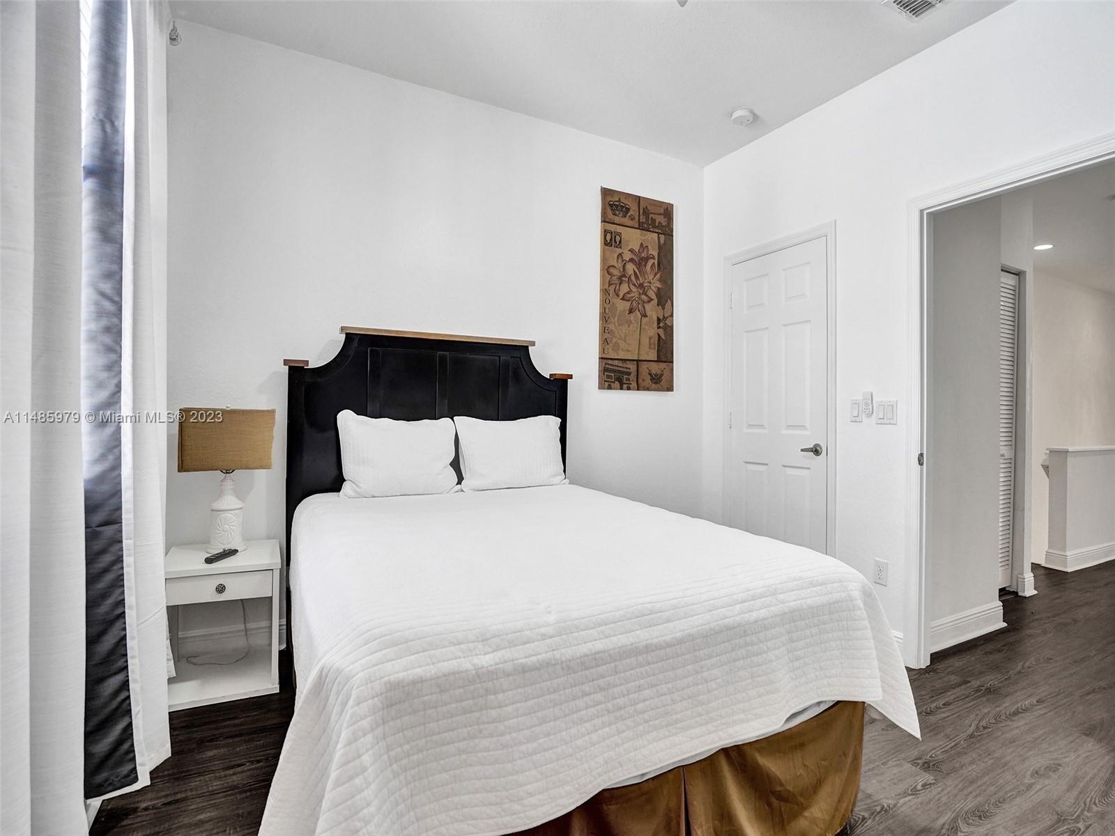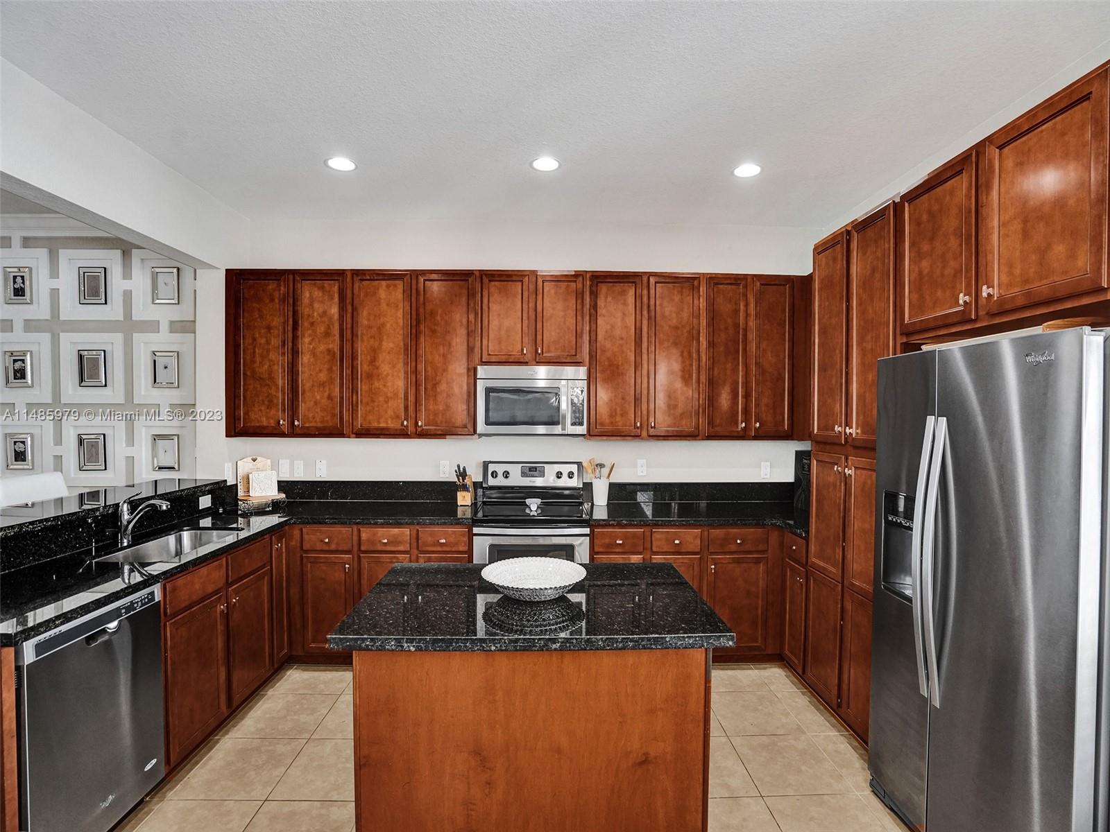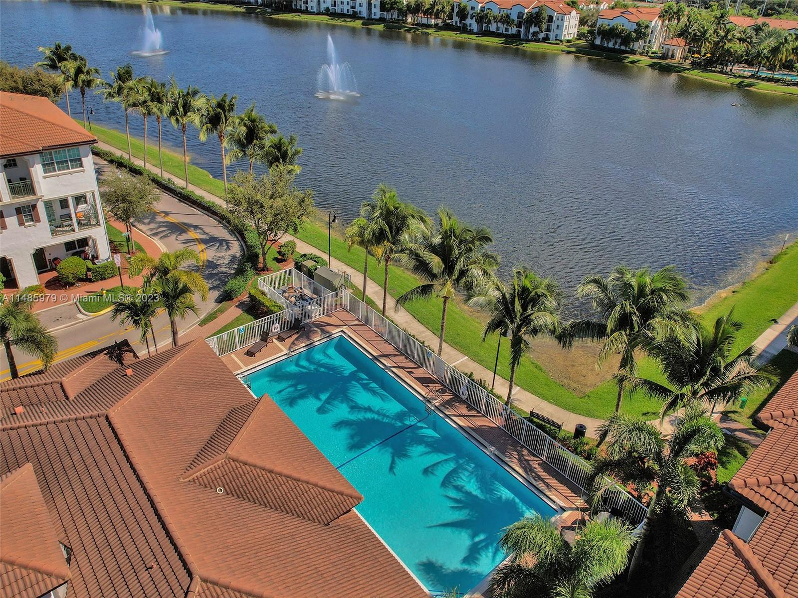Discover the largest 3-story townhome model in Montclair's gated community in Miramar. This residence boasts 3 bedrooms, 3.5 bathrooms, and a 2-car garage with hurricane impact windows and a spacious balcony. The kitchen features 42" European-style wood cabinetry, a large island, quartz countertops, and stainless-steel Whirlpool appliances. Stylish upgrades include an elegant glass chandelier, tile, and laminate flooring. The master bedroom offers Ikea custom closets. Centrally located with amazing amenities including a clubhouse, gym, pool, and more. A ground-floor bedroom with an ensuite bathroom adds convenience. Residents can unwind in the scenic pool area overlooking a serene lake. Enjoy tranquility in this quiet, upscale community.