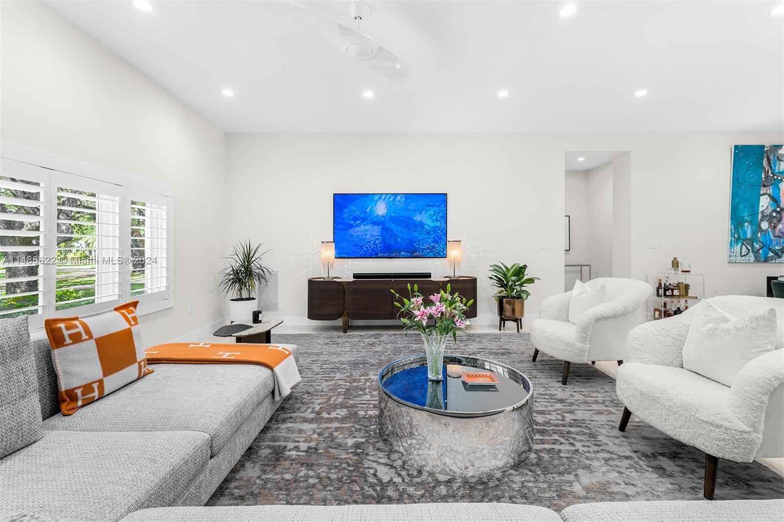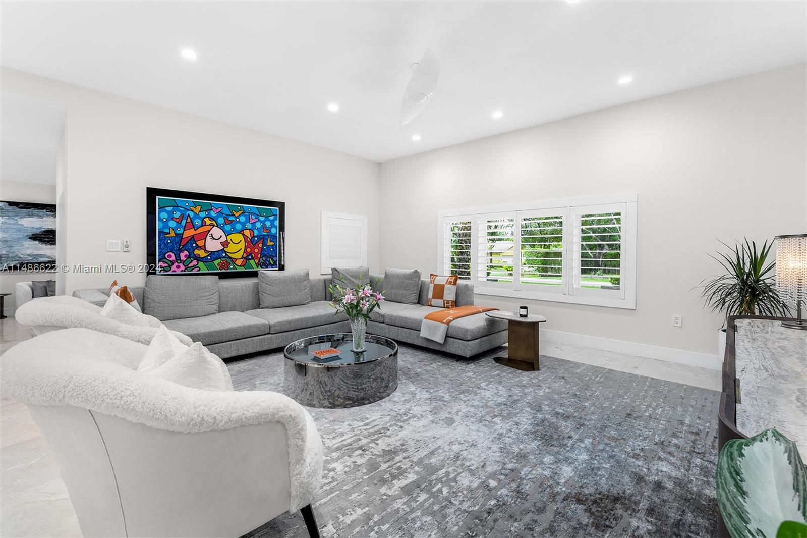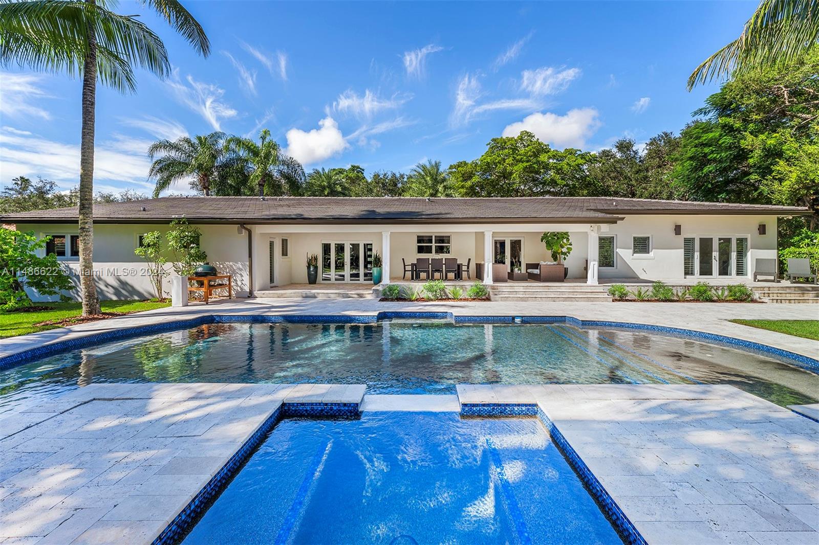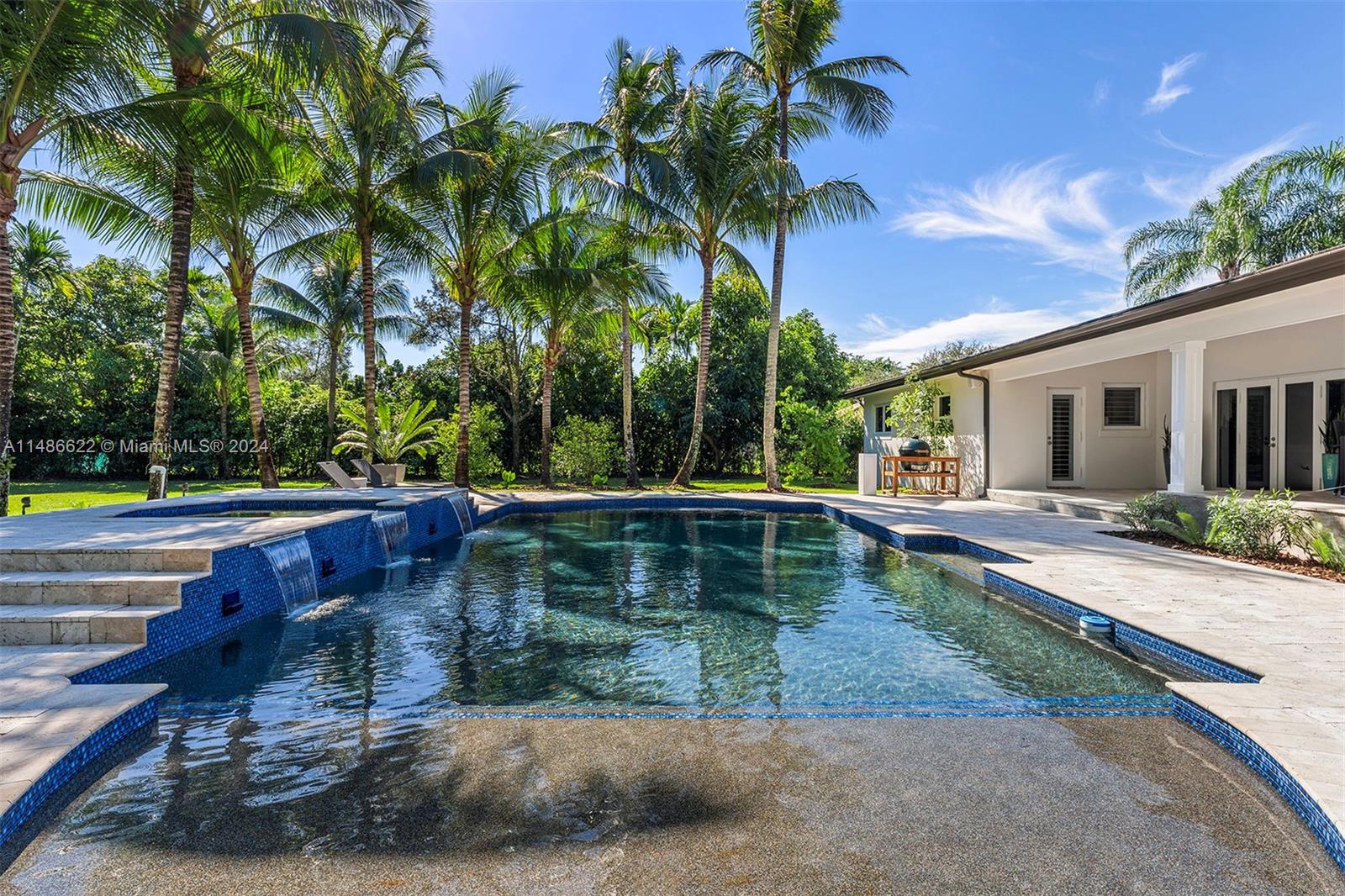 Exquisitely renovated to perfection in 2015, this residence has lofty ceilings throughout the home.Nearly one acre in the Pinecrest area, this one-story smart home showcases a thoughtfully designed split bedroom layout, ensuring maximum privacy within the primary bedroom.The heart of this home is a family room seamlessly integrated with a gourmet kitchen, complete with top-of-the-line appliances. Gracious reception areas create an inviting atmosphere, ideal for hosting gatherings and soirées.Positioned harmoniously on an expansive lot, this property has a lush, tropical landscaping with its exclusive access to the backyard and pool, this retreat exudes serenity.Intimate seating and a wealth of amenities for enjoyment.Esteemed Pinecrest school district and ease to major shopping & highways.