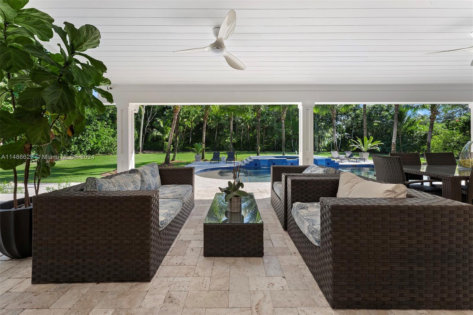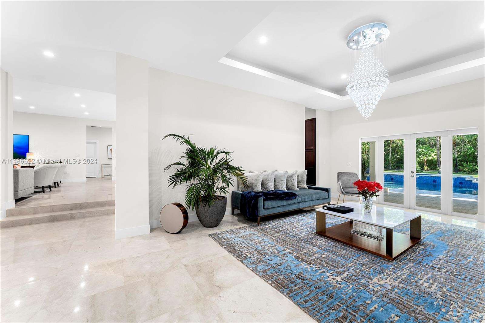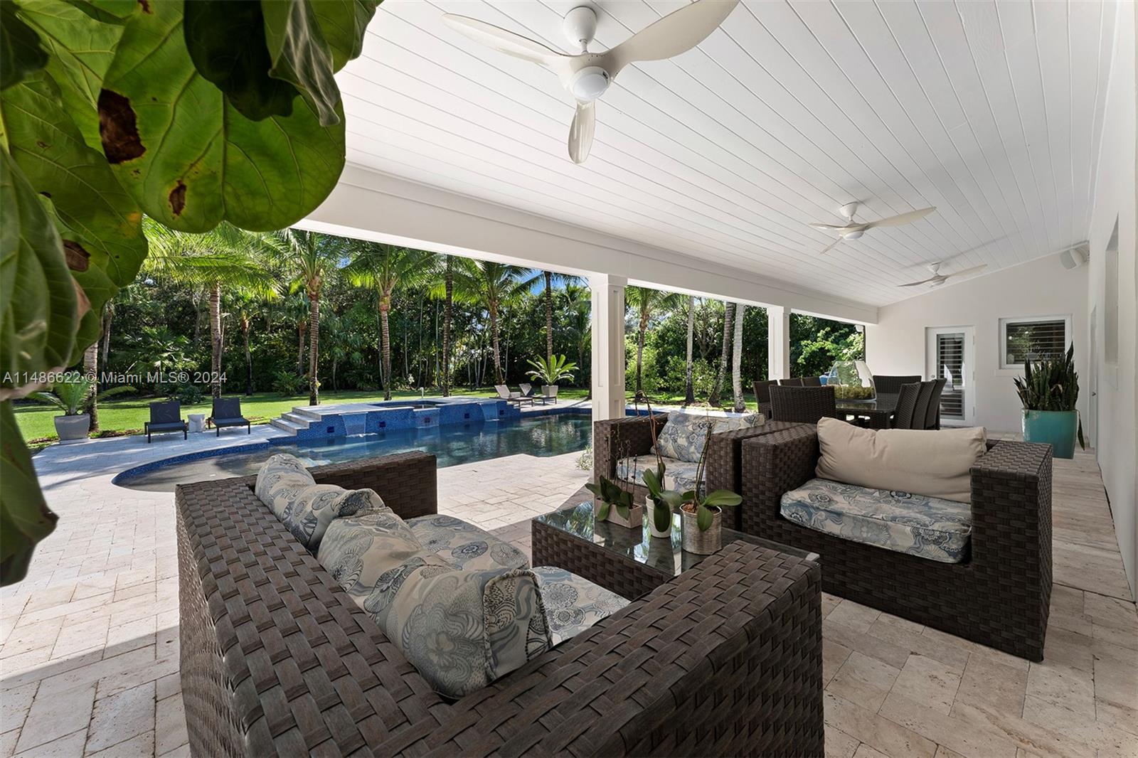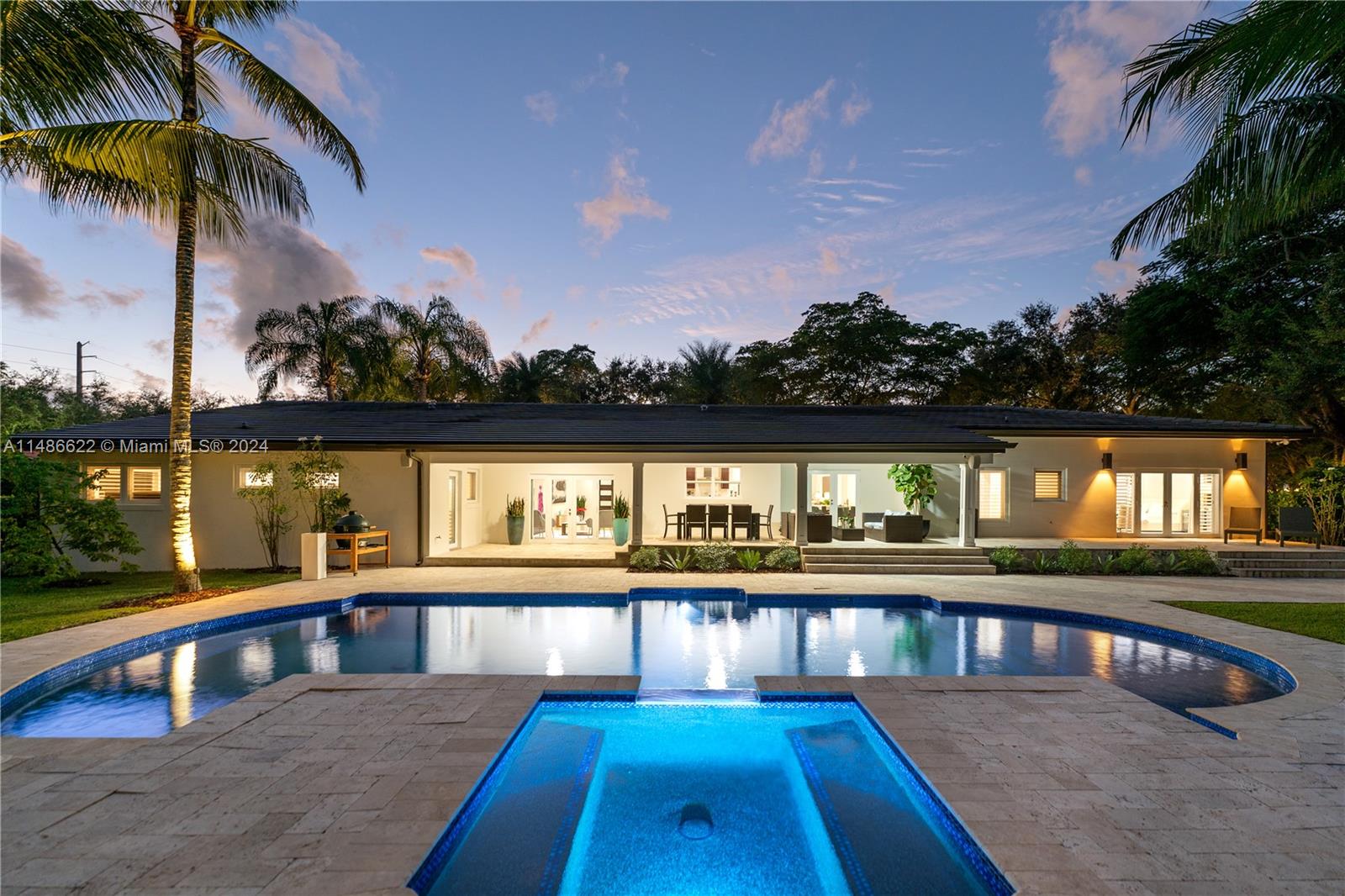 Exquisitely renovated to perfection in 2015, this residence has lofty ceilings throughout the home.Nearly one acre in the Pinecrest area, this one-story smart home showcases a thoughtfully designed split bedroom layout, ensuring maximum privacy within the primary bedroom.The heart of this home is a family room seamlessly integrated with a gourmet kitchen, complete with top-of-the-line appliances. Gracious reception areas create an inviting atmosphere, ideal for hosting gatherings and soirées.Positioned harmoniously on an expansive lot, this property has a lush, tropical landscaping with its exclusive access to the backyard and pool, this retreat exudes serenity.Intimate seating and a wealth of amenities for enjoyment.Esteemed Pinecrest school district and ease to major shopping & highways.