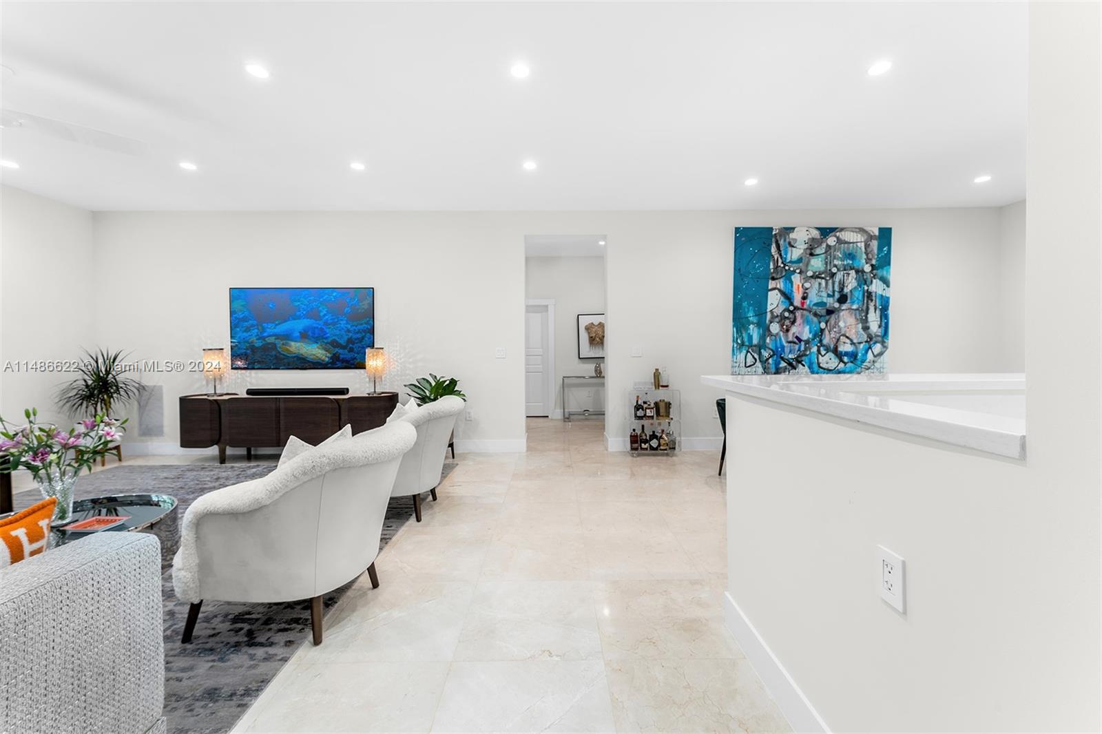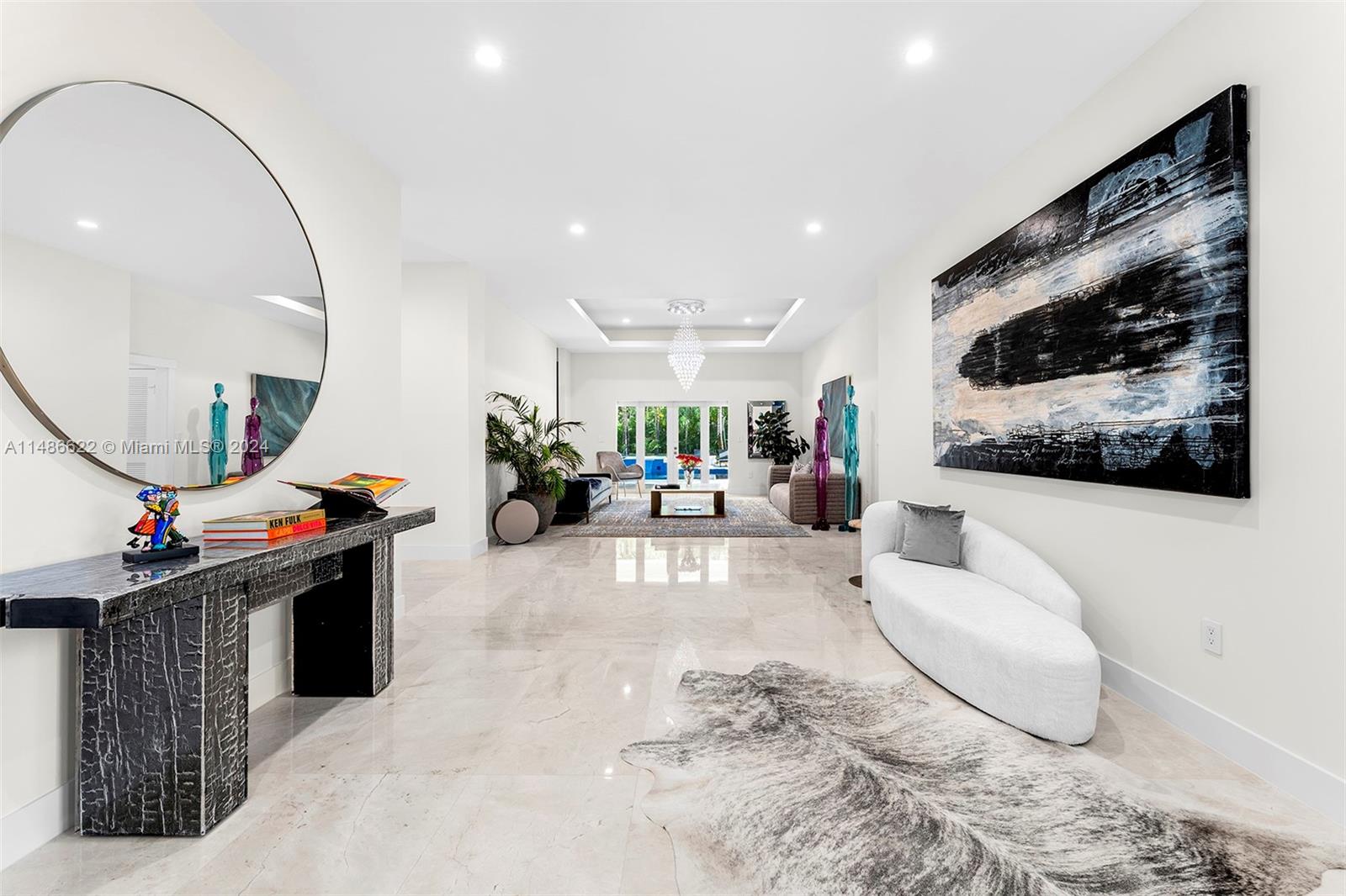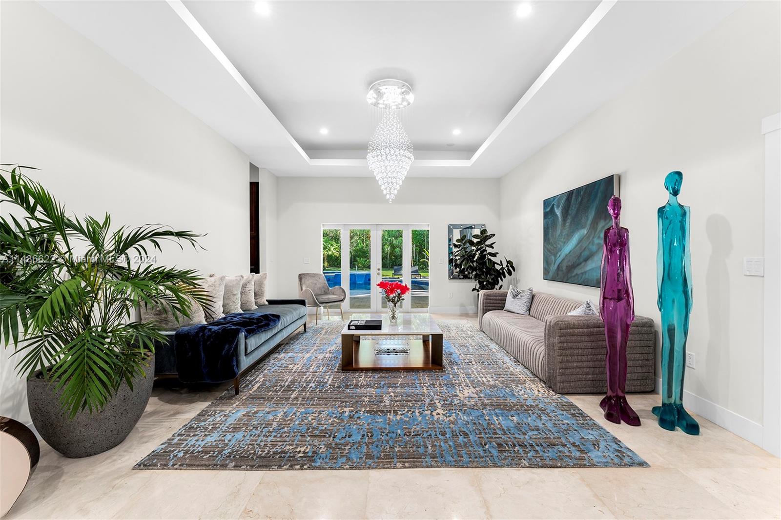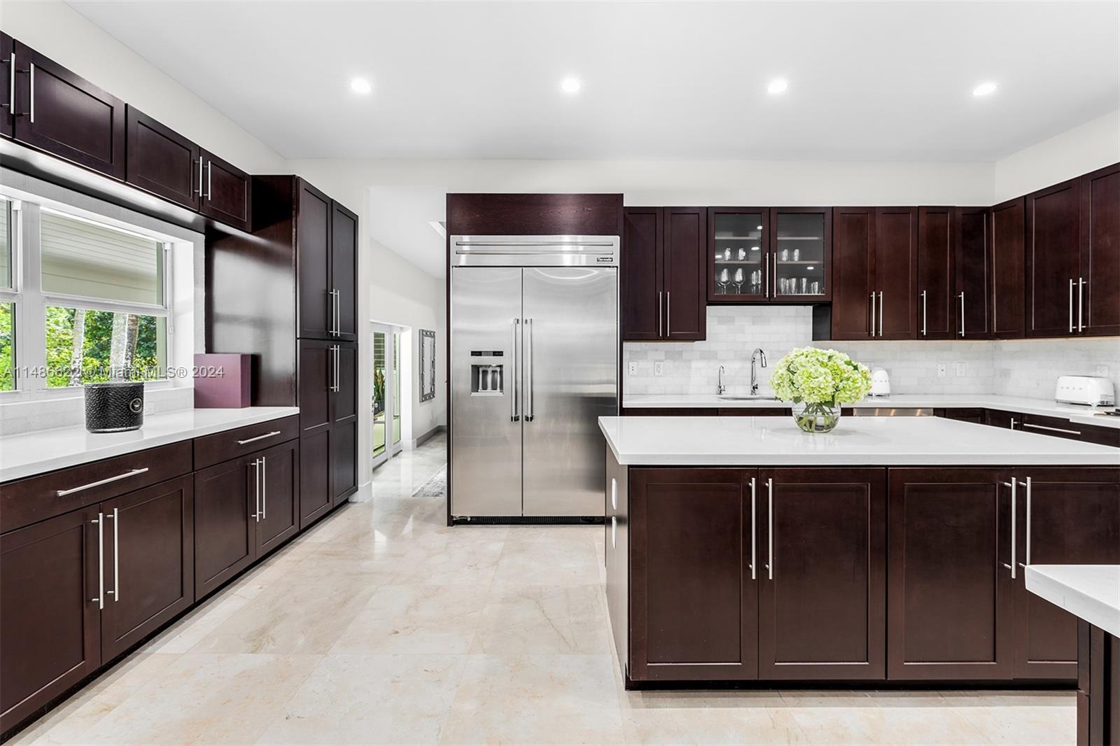 Exquisitely renovated to perfection in 2015, this residence has lofty ceilings throughout the home.Nearly one acre in the Pinecrest area, this one-story smart home showcases a thoughtfully designed split bedroom layout, ensuring maximum privacy within the primary bedroom.The heart of this home is a family room seamlessly integrated with a gourmet kitchen, complete with top-of-the-line appliances. Gracious reception areas create an inviting atmosphere, ideal for hosting gatherings and soirées.Positioned harmoniously on an expansive lot, this property has a lush, tropical landscaping with its exclusive access to the backyard and pool, this retreat exudes serenity.Intimate seating and a wealth of amenities for enjoyment.Esteemed Pinecrest school district and ease to major shopping & highways.
