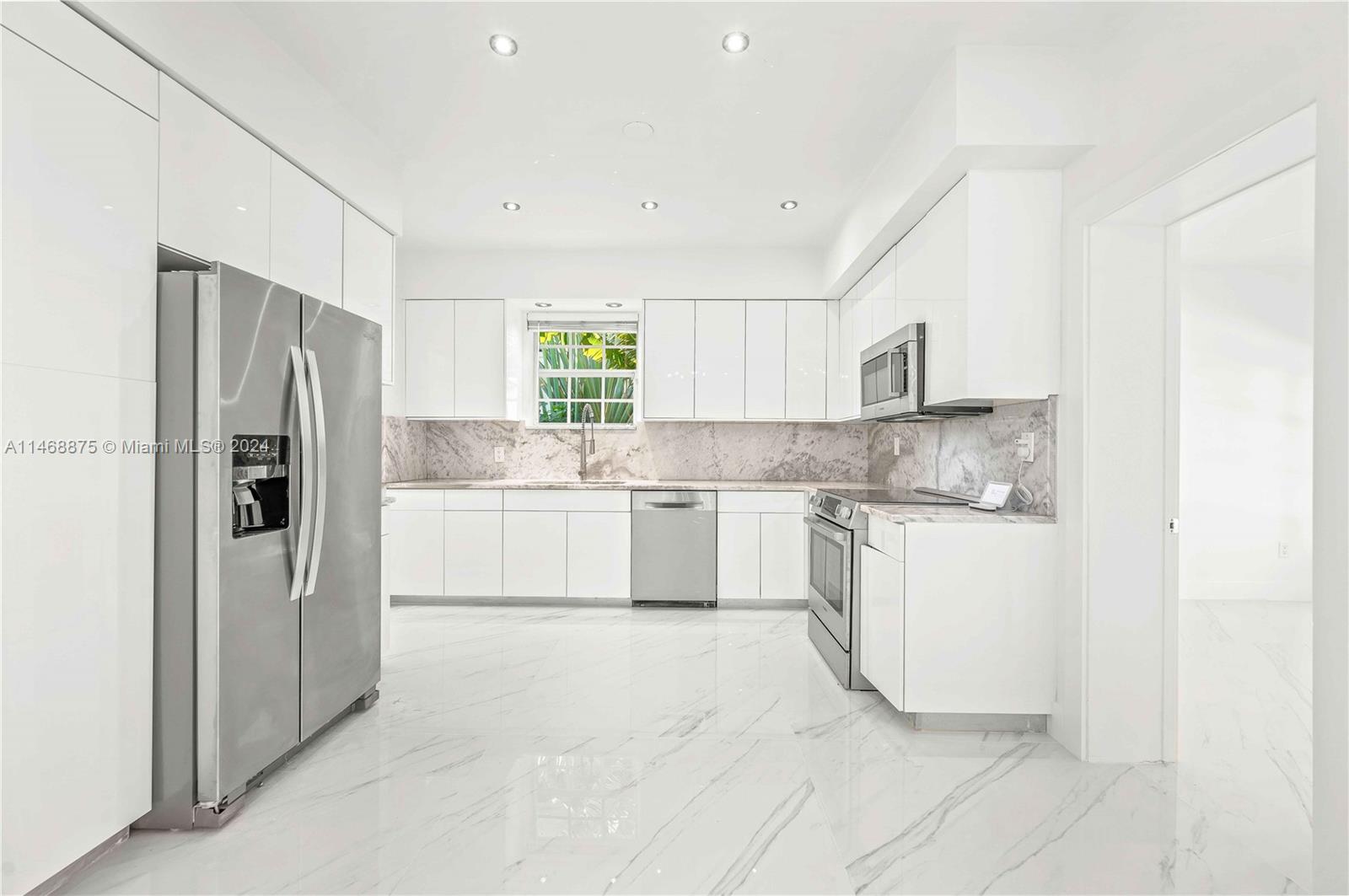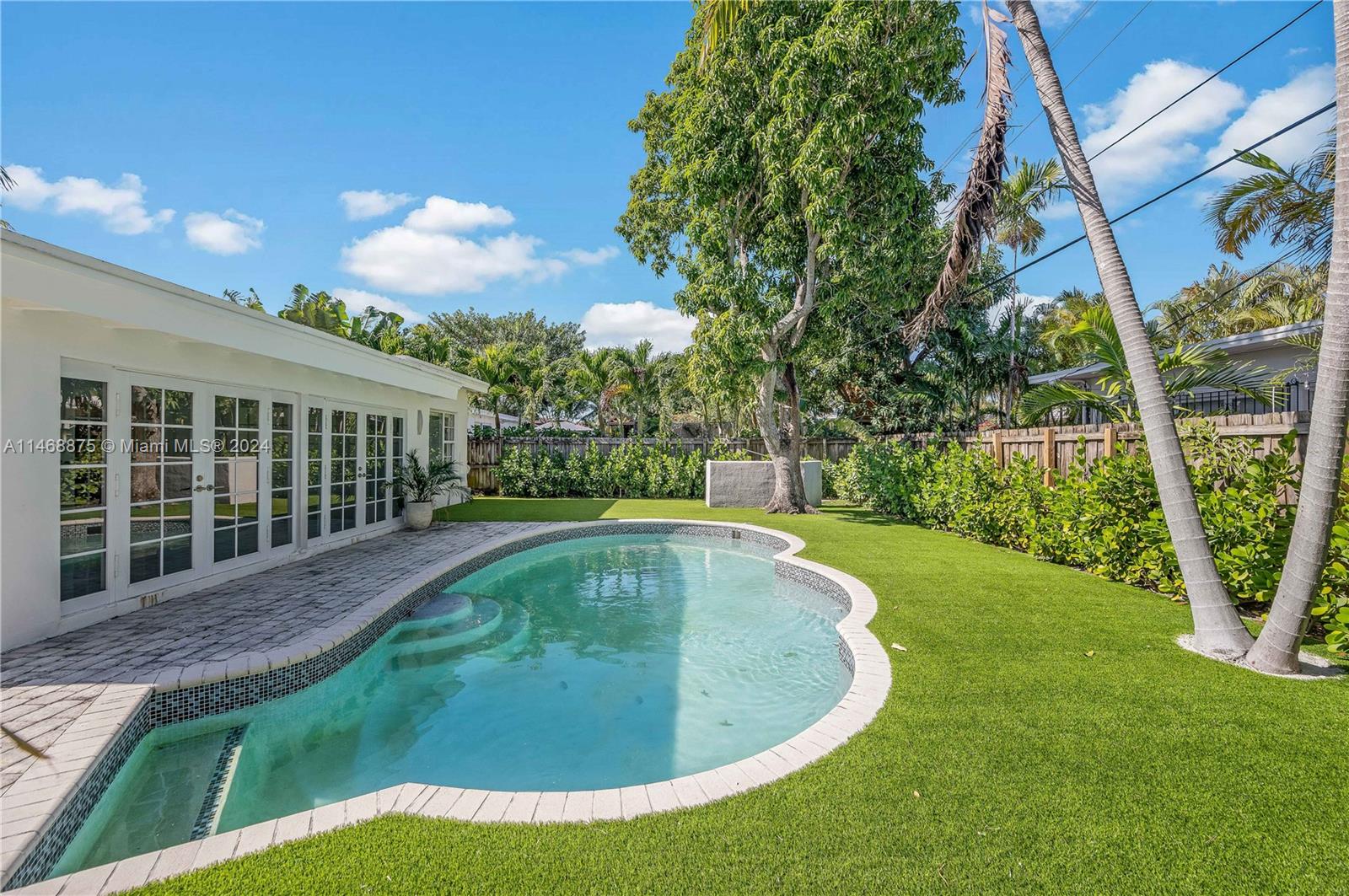 Welcome to 345 Fairway Drive – where vintage charm and modern living blend flawlessly. A Zen-like ambiance guides you to a resort-style pool and lush landscaping, while new 48” porcelain floors brighten the interior space. An elegant decorative fireplace sets the scene for entertaining. With four bedrooms;2 ensuite, the split floor plan guarantees privacy. The renovated primary bathroom offers a spa-like experience. This home offers golf course views and a park down the street. The community offers tennis, golf and a clubhouse to have social gatherings. This gated community is ideally located minutes from the ocean, town center, The Design District, Midtown and South Beach. . 345 Fairway Drive offers the discerning home owner an ideal place to call home.