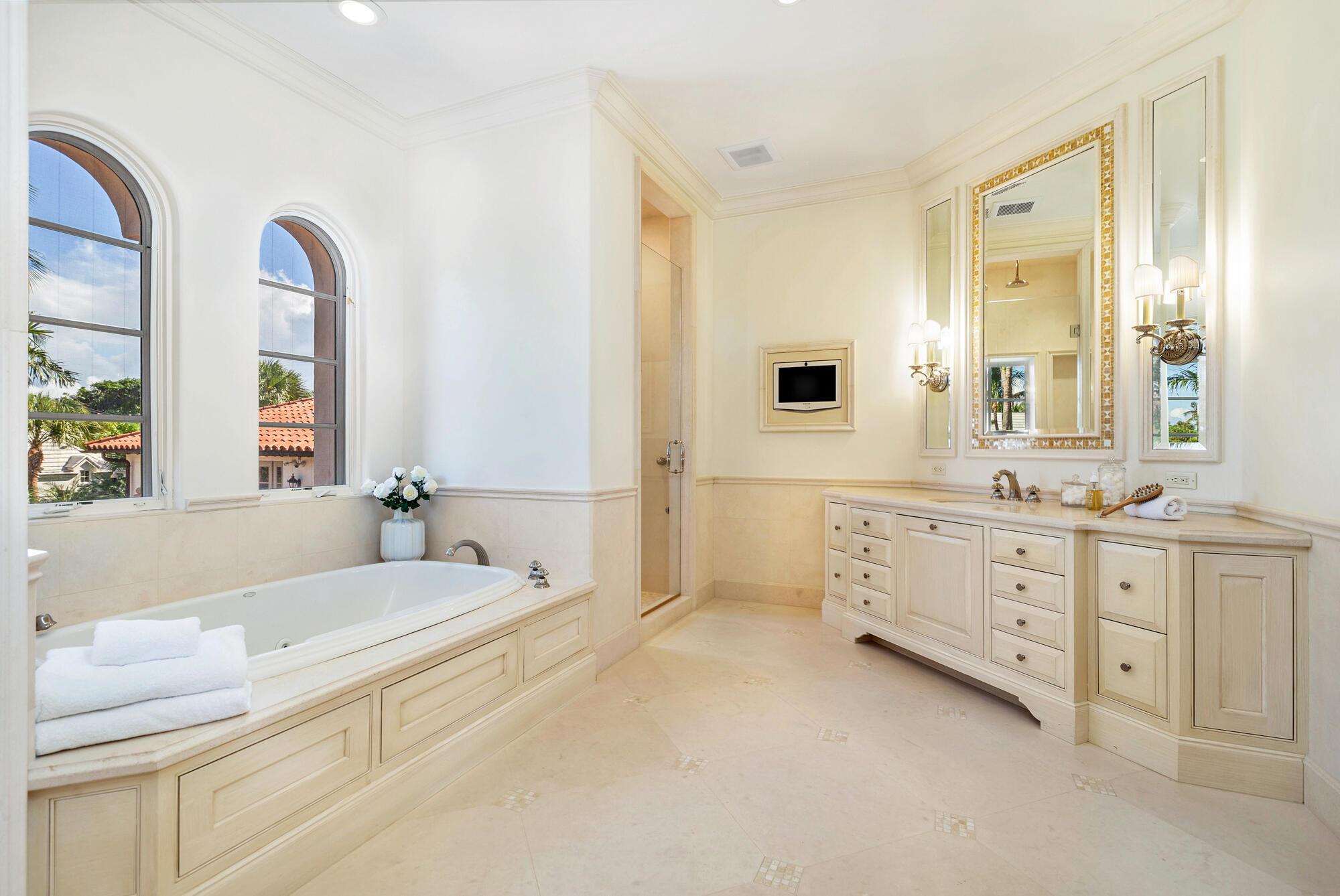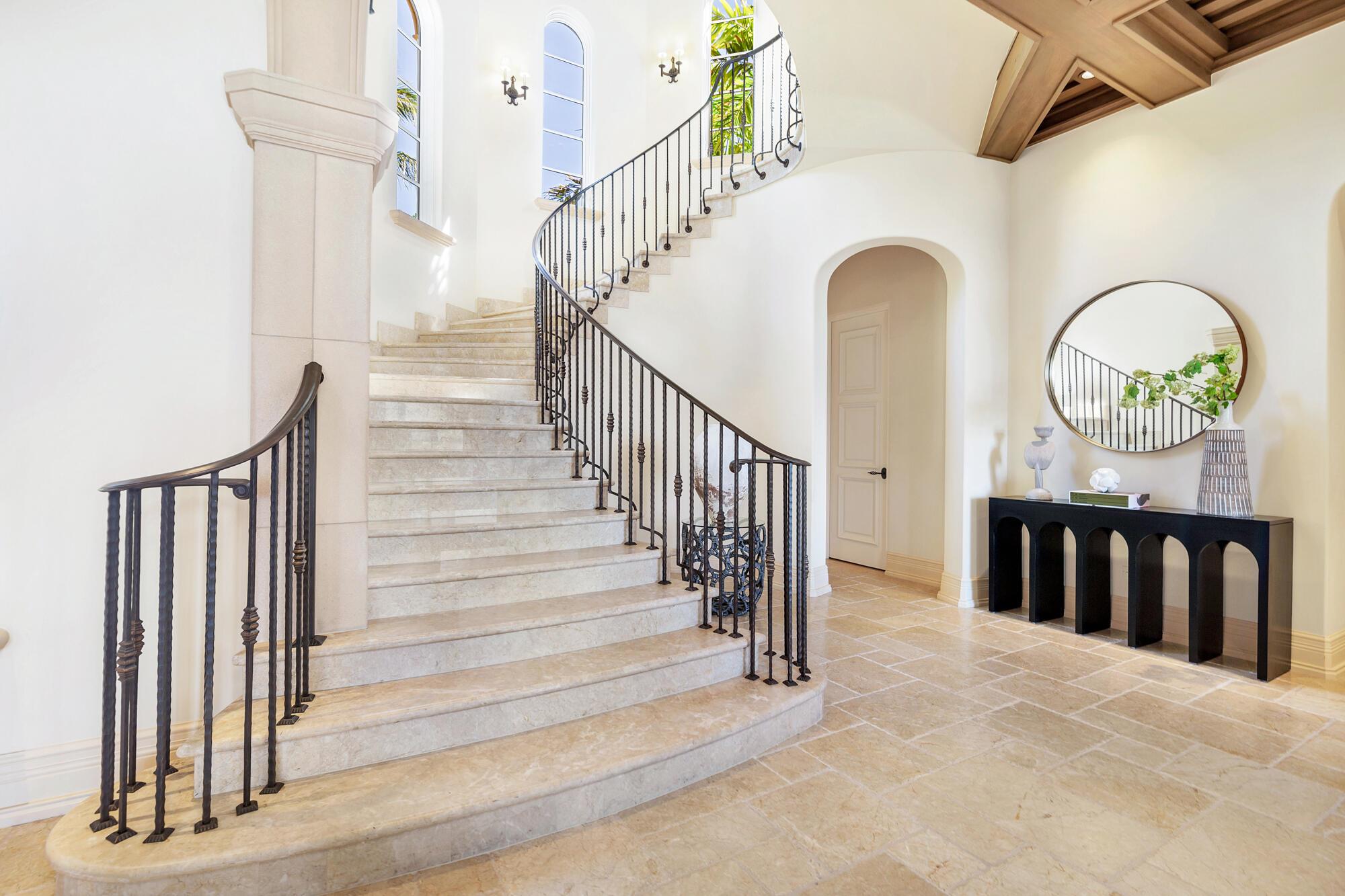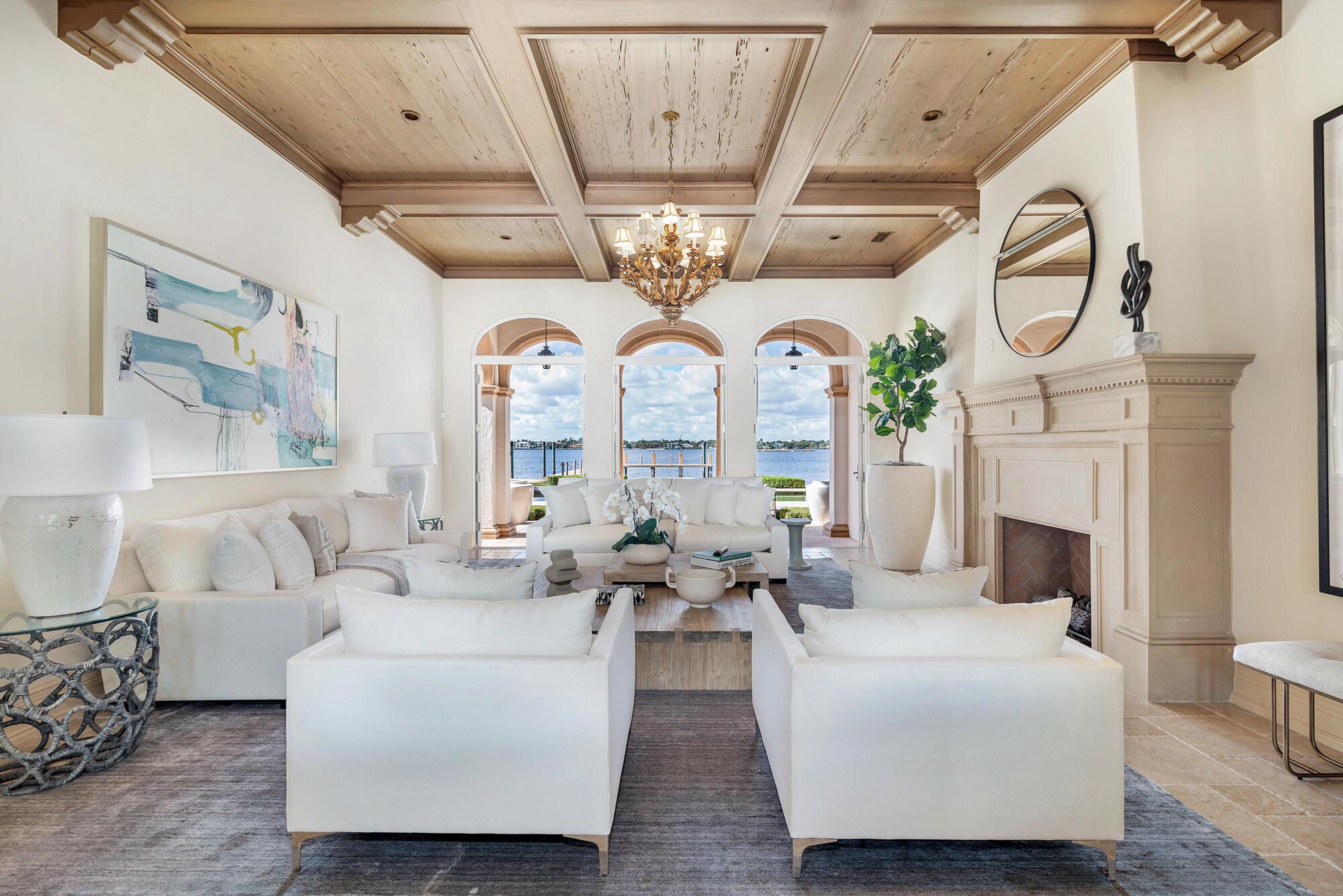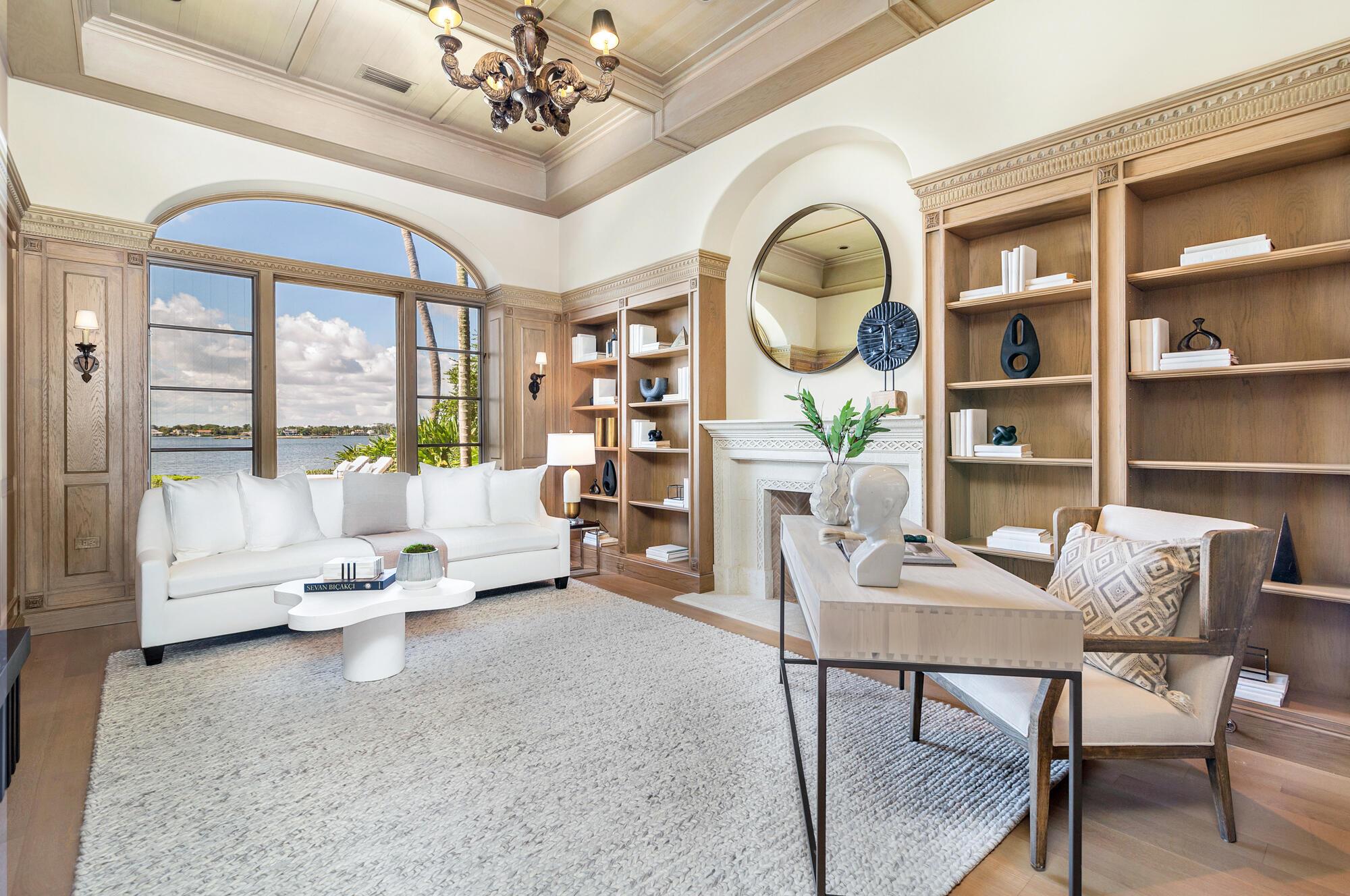 Water, Water Everywhere from the moment you walk in to this magnificent direct lakefront Mediterranean estate on over 2/3 of an acre located in the exclusive Estate Section of Palm Beach. Gated and lushly landscaped, the property is surrounded by mature foliage providing maximum privacy before opening up to 117' of commanding Intracoastal views. The gracious floor plan offers 5 bedrooms/7.5 baths and volume ceilings throughout. Highlights include luxurious second floor primary suite with private balcony and sitting room, chef's kitchen with butler's pantry, wood paneled library, oversized family room, wine cellar, media room, elevator, 100' x 40' concrete dock, full house generator and 3 car garage. Fabulous outdoor spaces with grand covered loggia ideal for dining and entertaining.