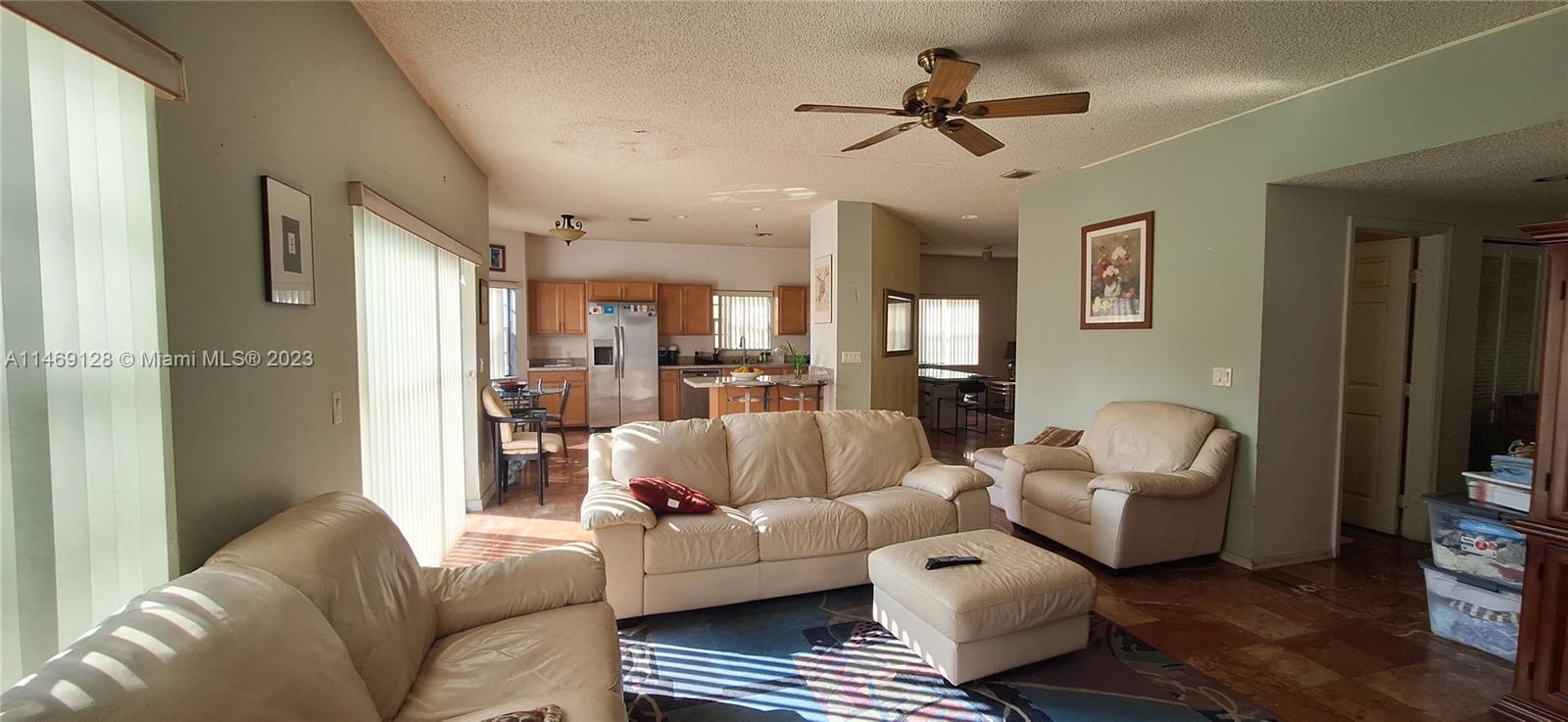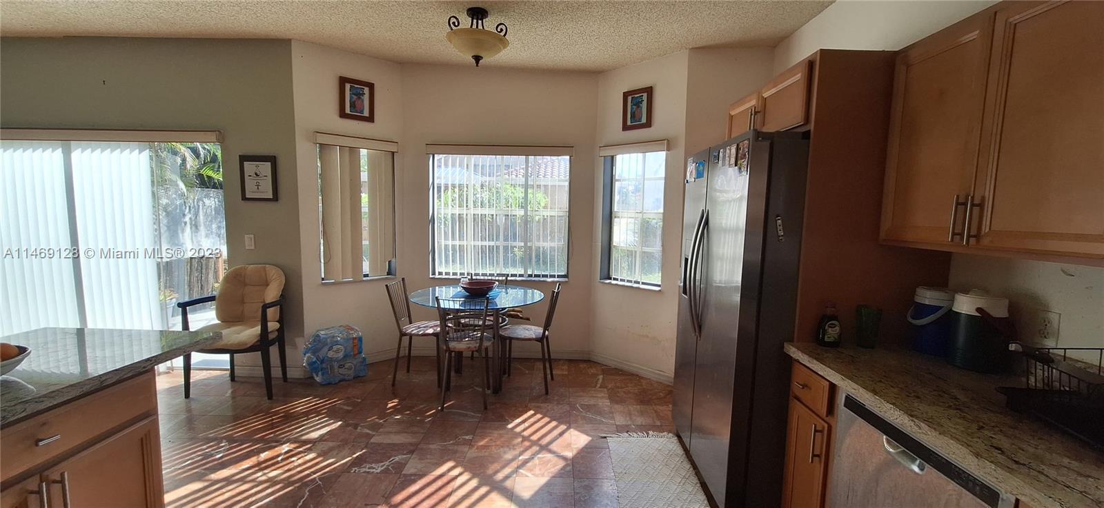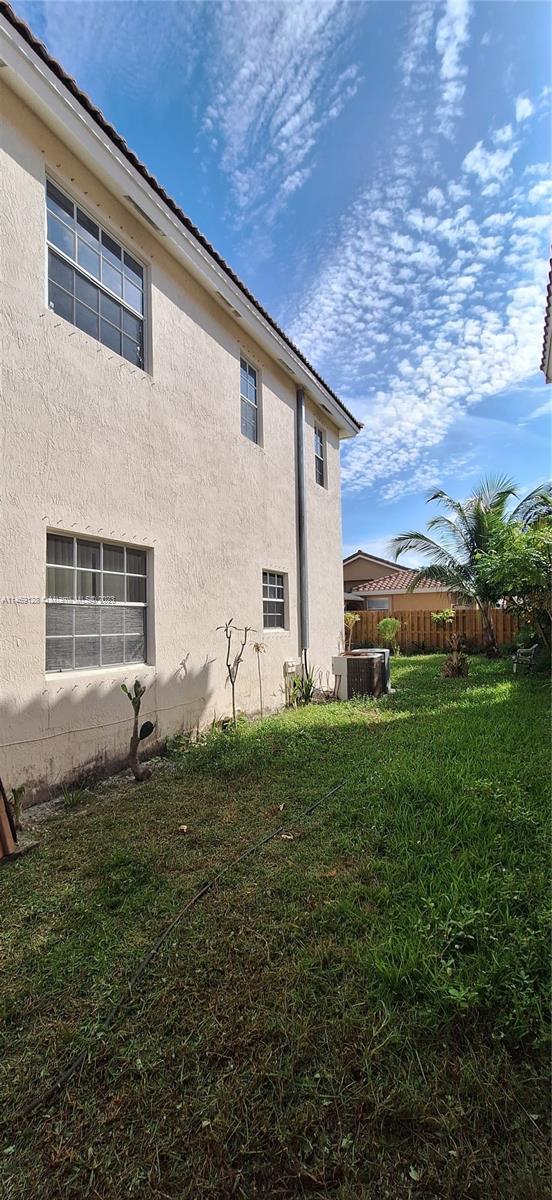 Windows and sliding glass doors let in all the natural light to this two story 5 bedroom home in the gated community, Lakes At Pembroke. Enjoy a private fenced back yard, be greeted at a door front entry leading to your formal living room and dining room, breakfast nook under the window and large kitchen counter for quick dining. Conveniently located near to the community pool, at the end of the street.