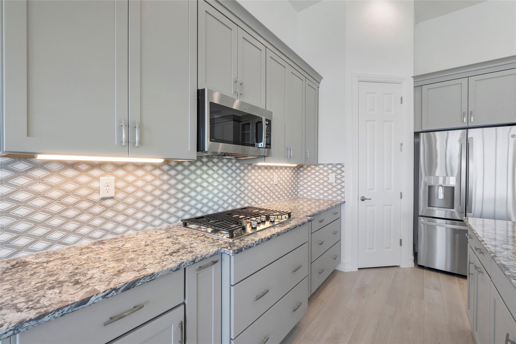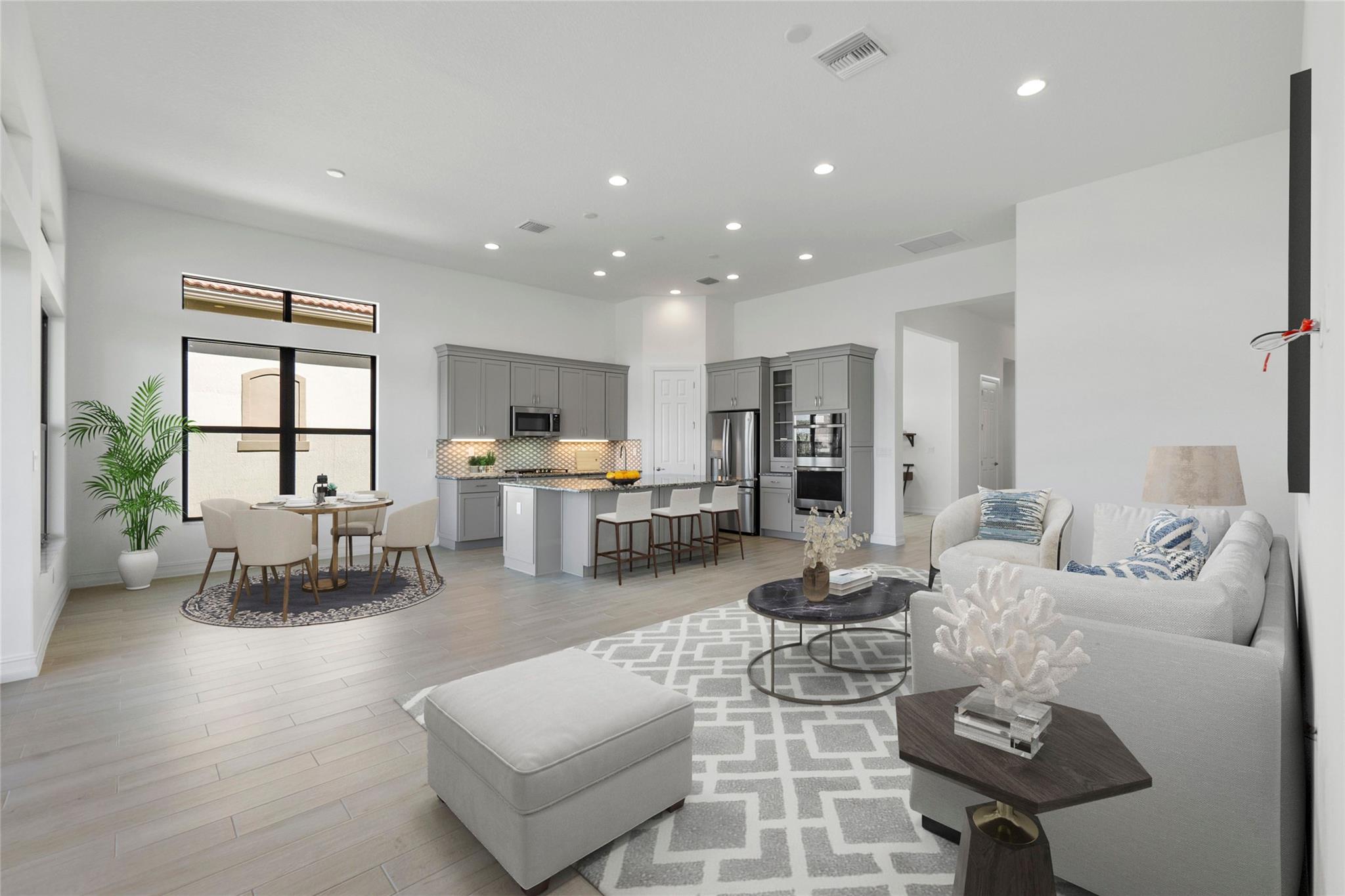 BRAND NEW Resale 55+! Why Wait One Year To Build When you can Move into a Brand-New Home Now! Stunning Single-Story with Gorgeous Waterfront Lot in the Prestigious Four Seasons of Parkland! Don’t miss this this 2Bed, 2.5Bath, 2Car Garage home w/ a large Den/Office that is an optional 3rd bedroom. This Home Features Tons of Upgrades including the Gourmet Kitchen Package with High End Appliances, Walk in Pantry, Custom Cabinetry w/Underlighting, Double wall oven, Gas Range, & much more! Beautiful wood look tile throughout, En suite guest bathroom, Open Floor Plan w/ High Ceiling & Lots of Natural Light! Guard Gated Community w/ Resort Style Amenities. Low HOA includes lawn care, alarm service, cable & internet.