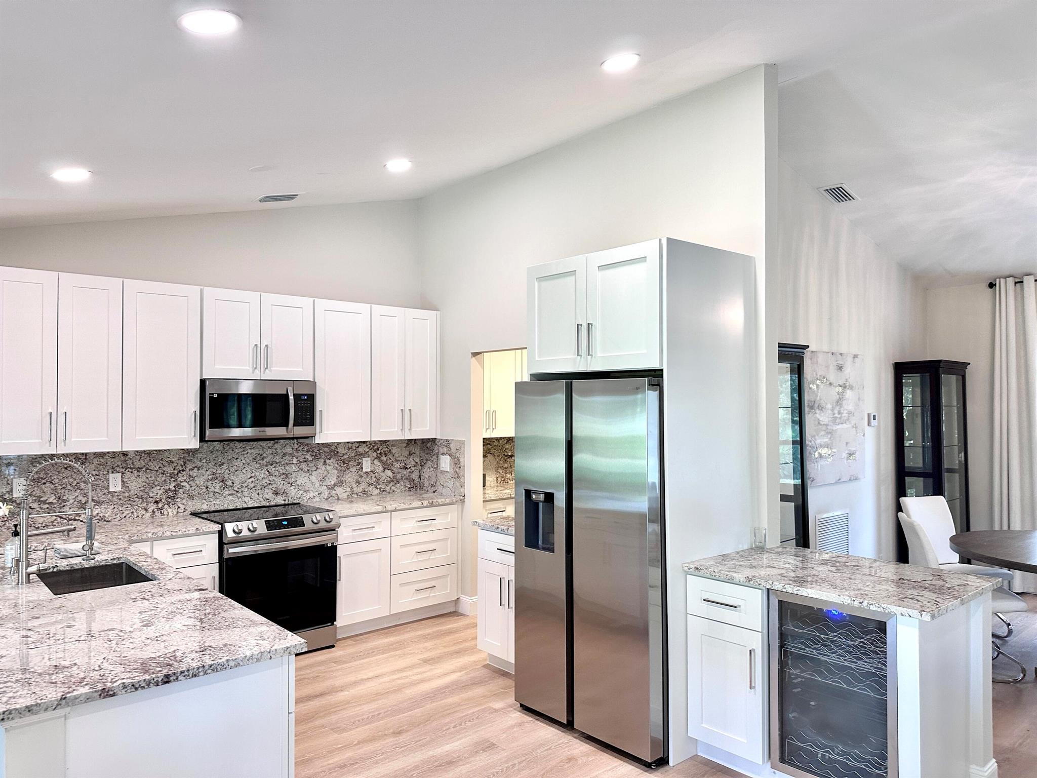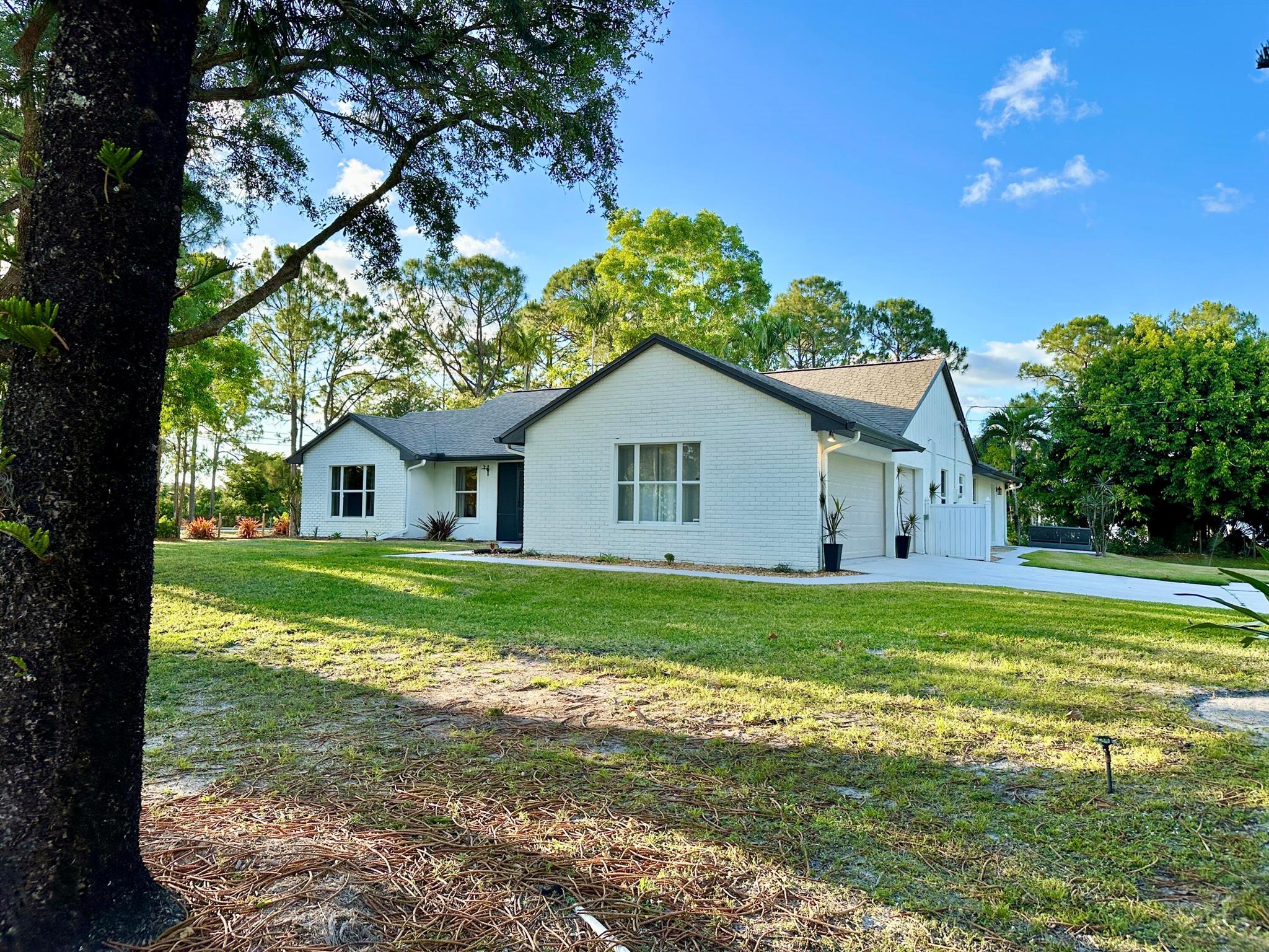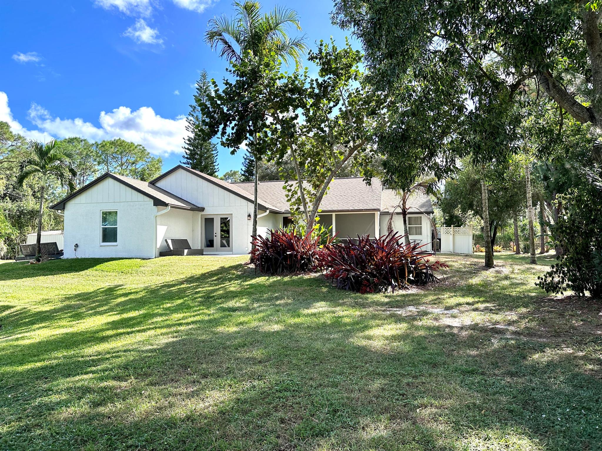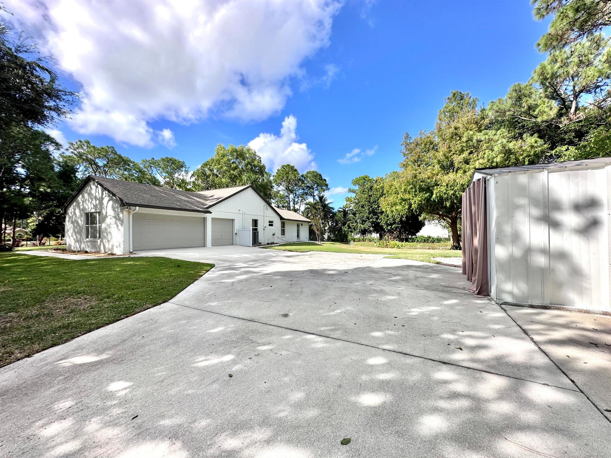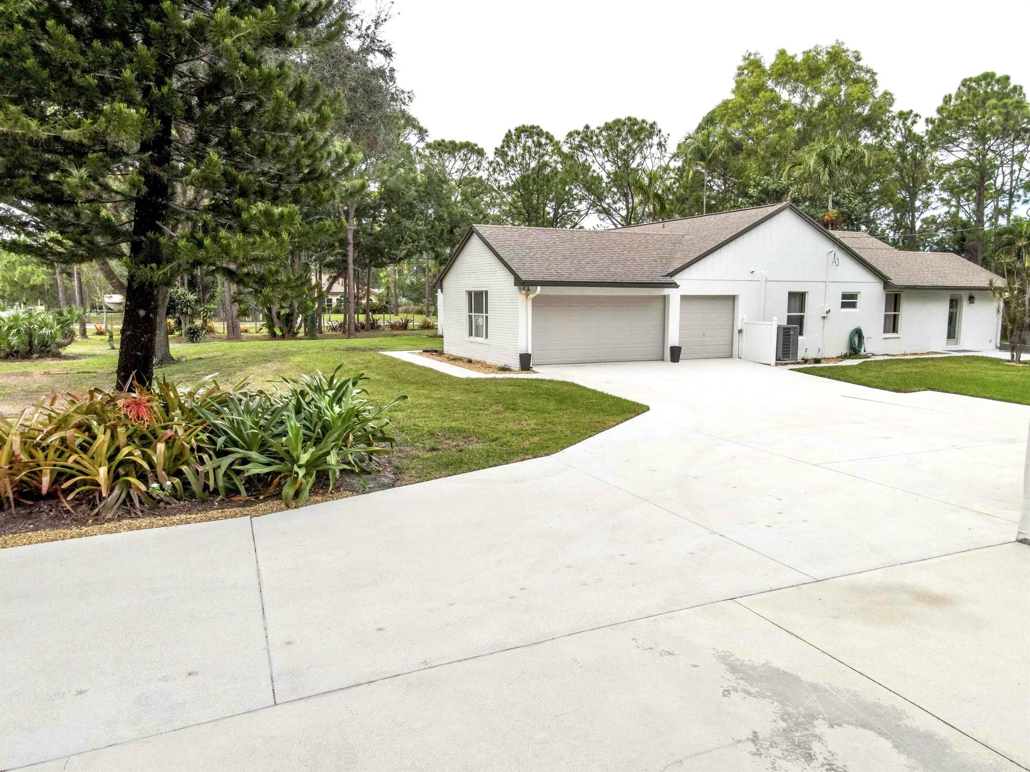 IMMACULATE South Facing SF Home on 1.37 acre, fenced corner lot. Fantastic location! No HOA! This stunning 4 BR or 3 BR + den provides an abundance of parking w/ 3-car garage, extended concrete driveway & metal building. Gorgeous interior. NEWLY updated throughout. Nothing to do but move in. Custom closets, impact French doors, partial impact windows, new cabinets, countertops, appliances, flooring, paint, WIFI garage door openers & more. When you visit this tranquil beauty, spend time outside to see all the possibilities of this amazing lot. Plenty of room to grow and expand. Gated dual entry access perfect for business, shop, guest house, RV, etc. This home and lot provide options. Don't miss an opportunity to see this amazing home, where you can create your dream life.