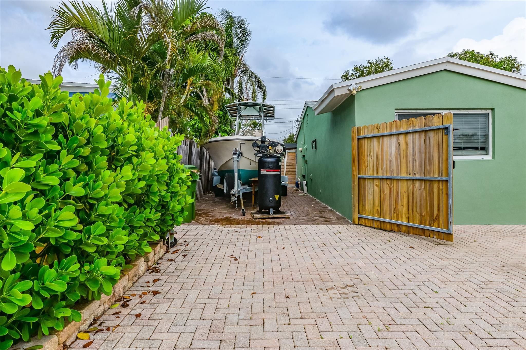 • Exterior Feature:Courtyard, Fence, Lighting, OutdoorShower, Shed, Awnings
