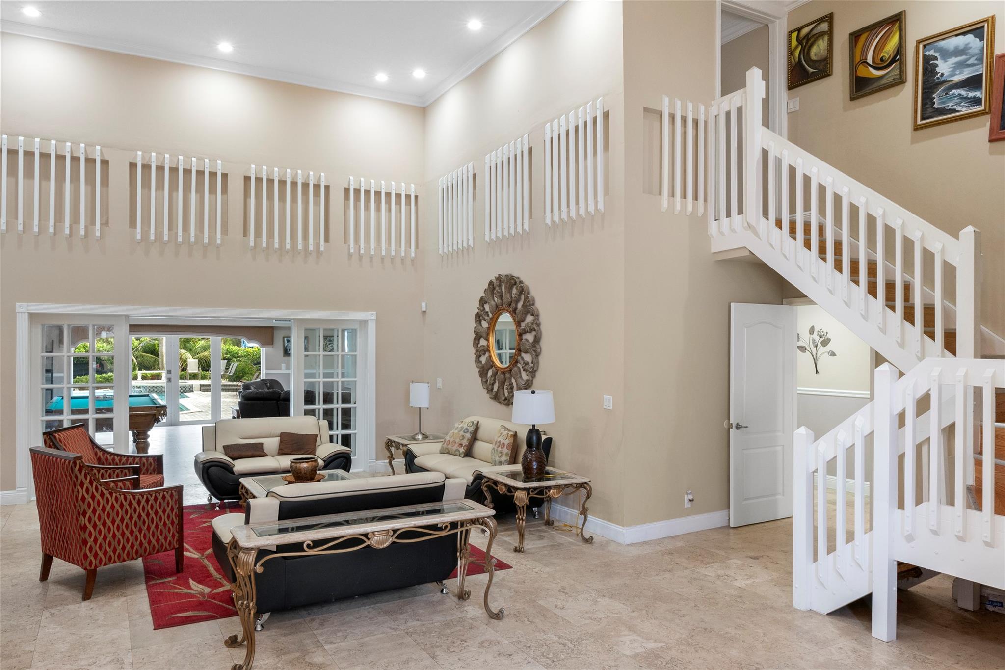 Stately Residence on 2.34-acres with Unique Architecture & Curb Appeal in Sought-after Southwest Ranches! Mature Oak Trees adorn pavered grandiose driveway leading to a full Guest House & 3-vehicle deep garage. Foyer entry welcomes you home to 20' high vaulted ceiling over formal living room, dining room & spacious gourmet kitchen with granite counters & S/S appliances package. Florida family room designed perfectly for billiard entertaining & sports TV viewing with outdoor sights of the oversized pool, greenest of grounds, detached barn & private tennis court. This 5Bed/3Ba Main Residence with separate 1Bed/1Ba full Guest House is priced right allowing for a new owner to update if so desired. This home in SWR well under $2M is a treasure! Finder's keepers... won't last long! A must see!