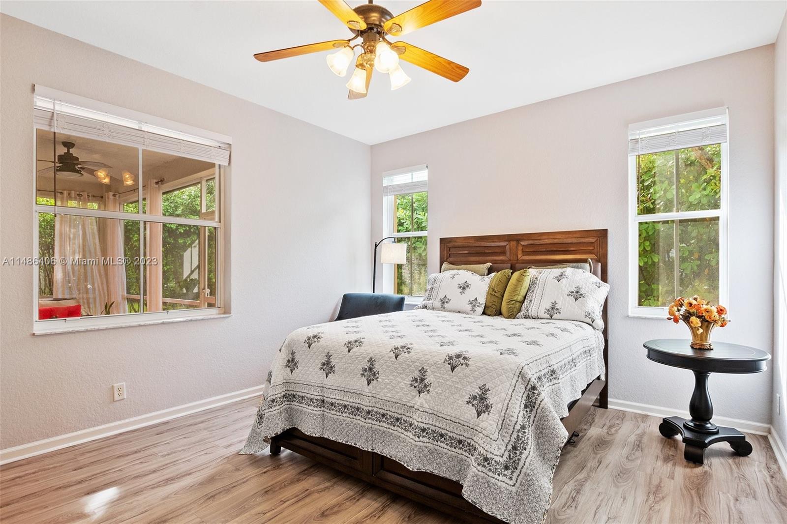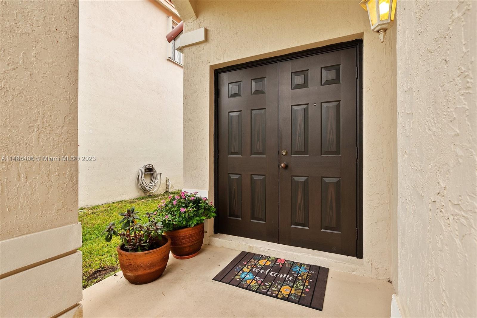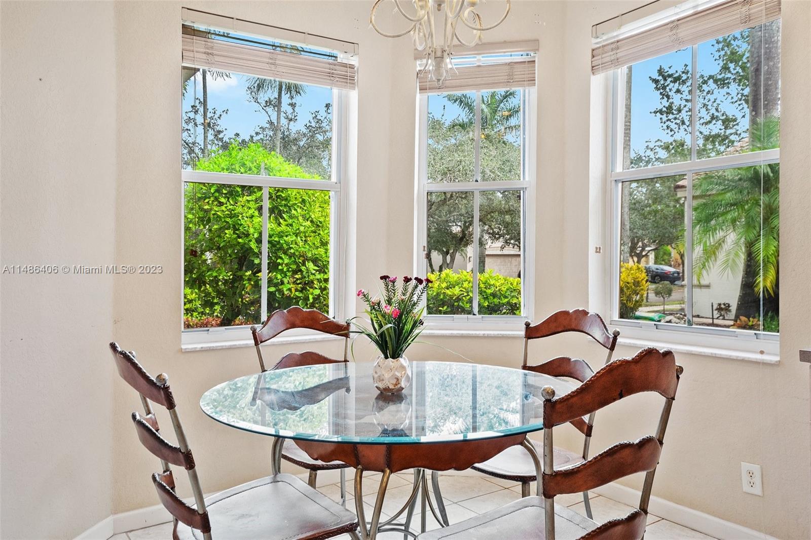 Beautifully maintained home in Savanna in the largest GATED community in Weston! Home has an open floorplan feel w/laminate flooring thru-out living areas & bedrooms & tile in wet areas - NO CARPET! Spacious kitchen has stainless steel appliances, snack counter, & breakfast nook w/bay windows that make the space light & bright. Master suite features a bathroom w/dual sinks, tub w/separate shower, & walk-in closet. In the backyard is a screened-in patio w/mature vegetation that offers plenty of privacy. Other features of this home include NEWER A/C (2018), NEW ROOF (2022), & hurricane shutters. This community has many amenities: two manned gates, resort-style pool, lap pool, children's splash area, clubhouse, tennis & basketball courts, soccer field, hockey rink, playground, parks, & MORE!