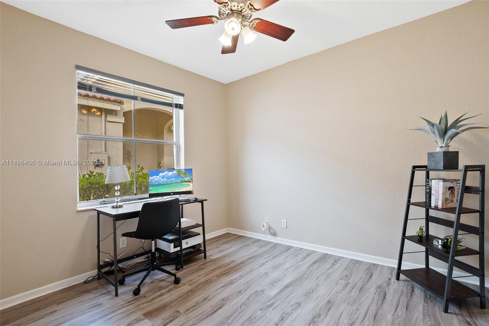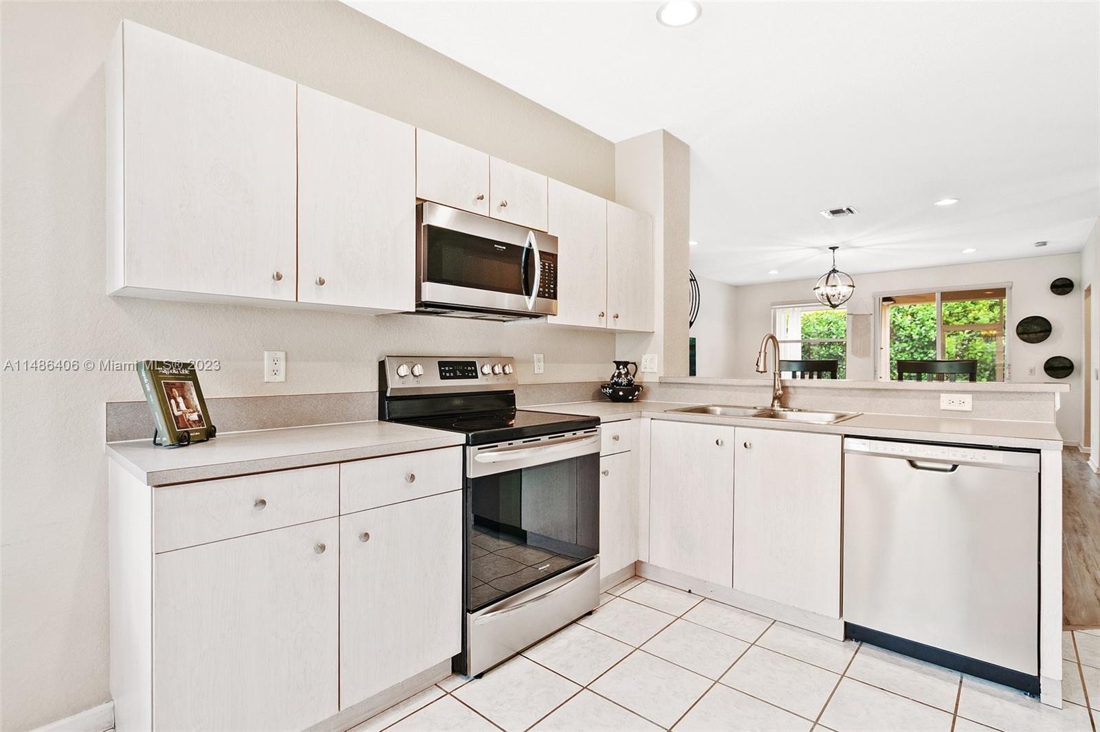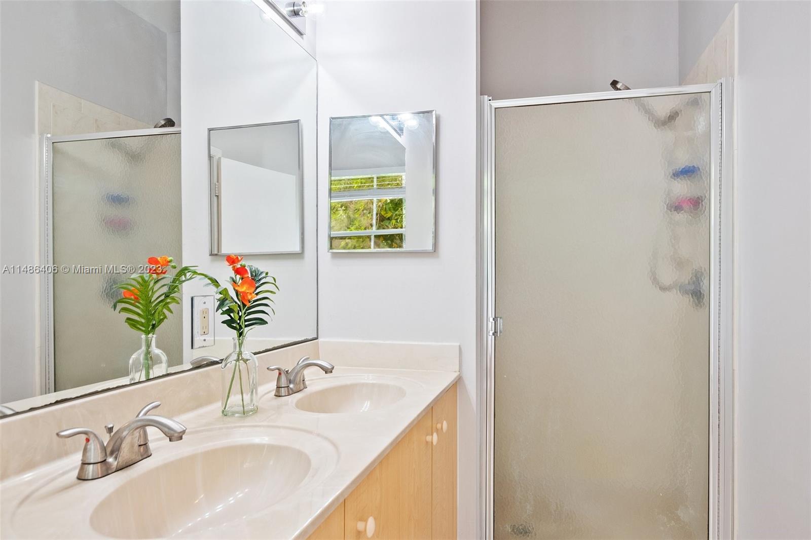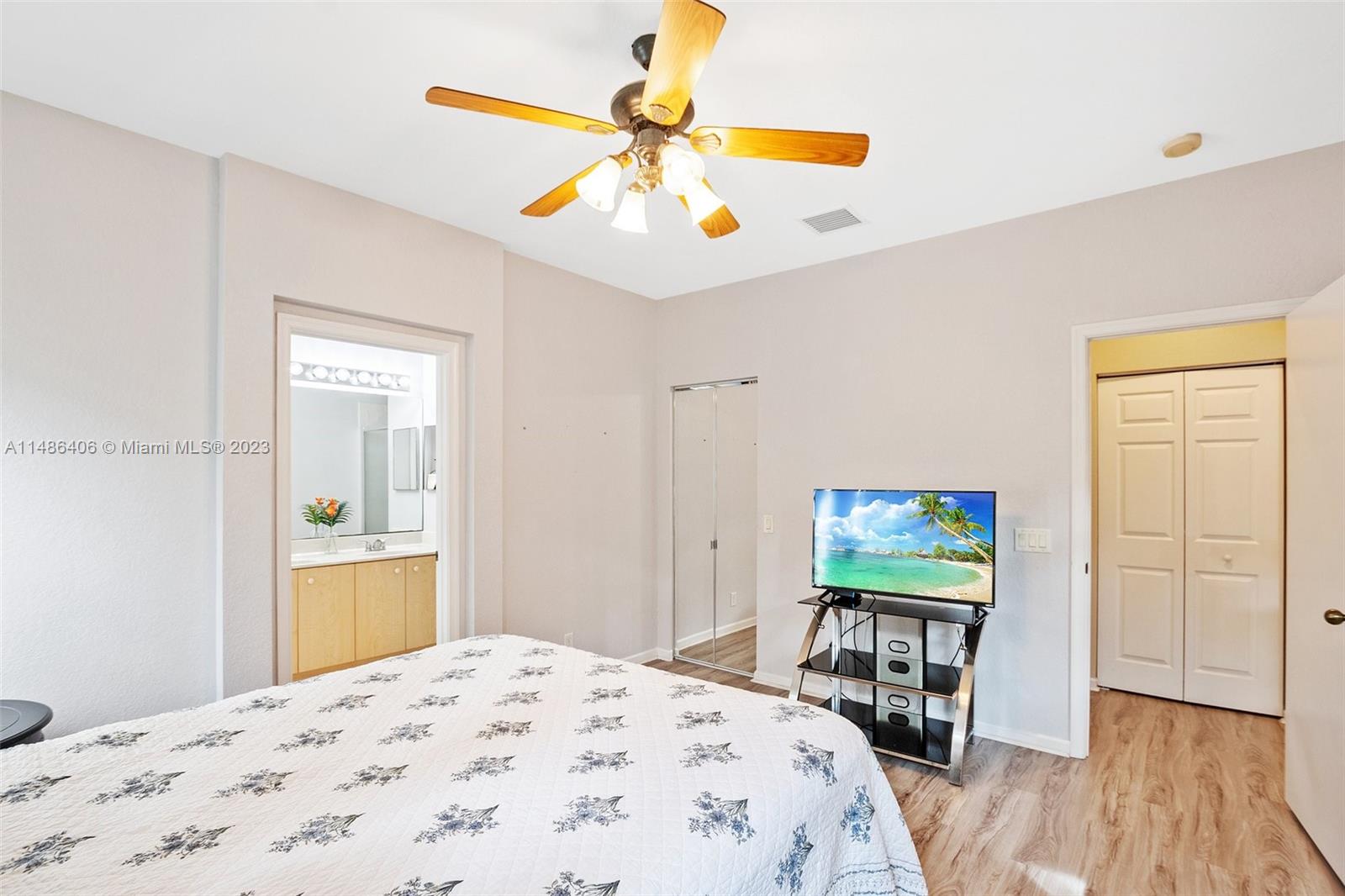 Beautifully maintained home in Savanna in the largest GATED community in Weston! Home has an open floorplan feel w/laminate flooring thru-out living areas & bedrooms & tile in wet areas - NO CARPET! Spacious kitchen has stainless steel appliances, snack counter, & breakfast nook w/bay windows that make the space light & bright. Master suite features a bathroom w/dual sinks, tub w/separate shower, & walk-in closet. In the backyard is a screened-in patio w/mature vegetation that offers plenty of privacy. Other features of this home include NEWER A/C (2018), NEW ROOF (2022), & hurricane shutters. This community has many amenities: two manned gates, resort-style pool, lap pool, children's splash area, clubhouse, tennis & basketball courts, soccer field, hockey rink, playground, parks, & MORE!