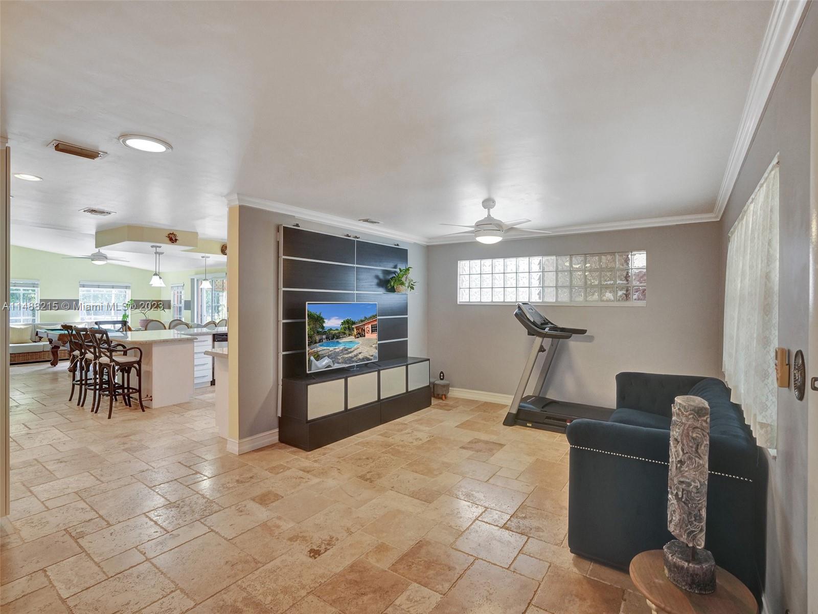 Amazing updated home on a quiet street with open living/kitchen area, over 2000sqft home, 12,241sqft lot. Custom built kitchen with pull out drawers, granite counter tops, and gas hookup. Full house filtration, beautiful high quality French travertine tiles throughout, grand family room with high ceiling. Easy convert to a 4th room. Outside enclosed 2 car Carport with 2 storage closets currently being used as a spacious outdoor entertainment area. Massive outdoor paved patio faces a newer freeform saltwater pool and covered area. Alley gate slides open to park boat or car. Front gate opens to RV parking with 30/50 amp hookup. Nice grass area to enjoy your Smores! Permitted shed stays. New PVC plumbing, GAS HOME GENERATOR, Gas water heater, Tile roof. Walk to temple, church, park.