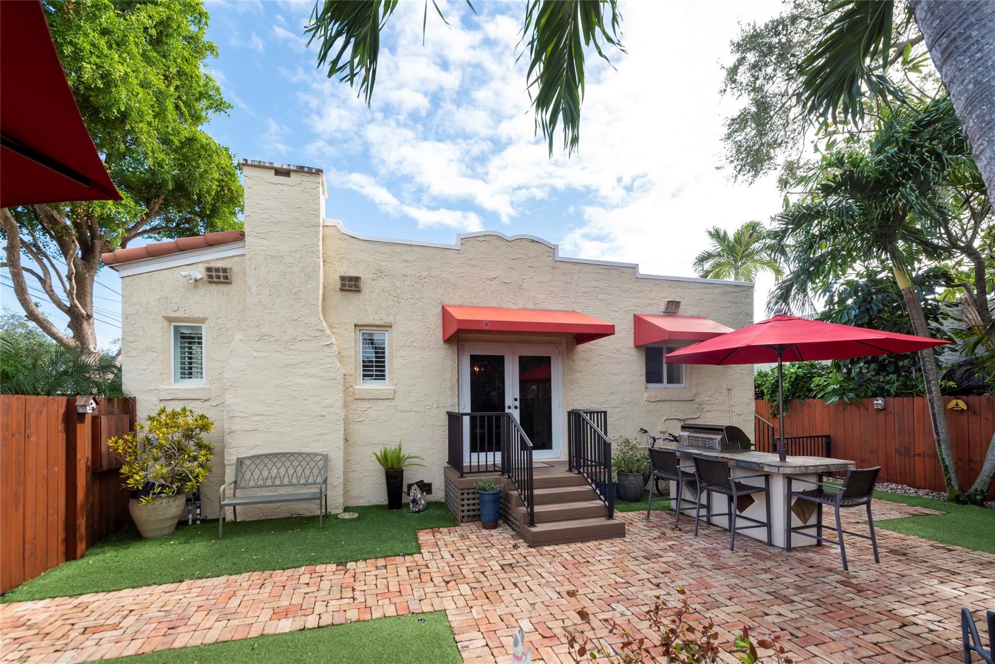 Welcome home to Rio Vista, Ft Lauderdale's most sought-after downtown neighborhood. Whether a first-time homebuyer or downsizing, this home, believed to be an original Francis Abreu, this updated 1920's bungalow is for you. Dade county & oak wood floors add to the charm. The side yard is set up for entertaining w/ built in gas grill & bar fridge. The home features impact windows, natural gas, and a primary bedroom w/ walk in closet. Both bathrooms are updated, one with jetted tub. The large dining room opens to the lovely side yard through French doors. The living room is complemented by a decorative fireplace. This is the best priced home in Rio Vista, located on the non-cut through street of SE 10th Street, and just a stroll to Virginia Young Park. Live the Rio Vista lifestyle.