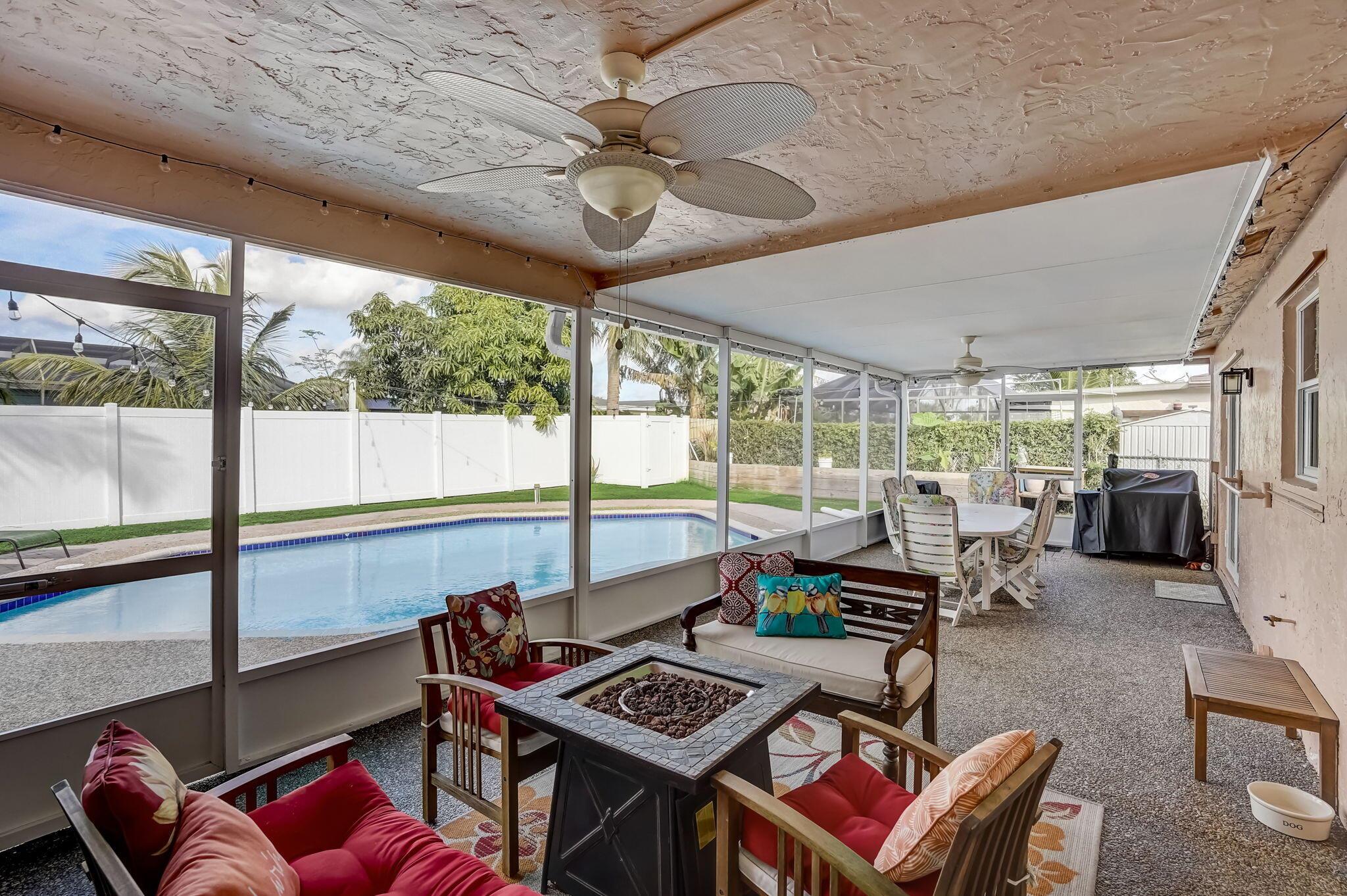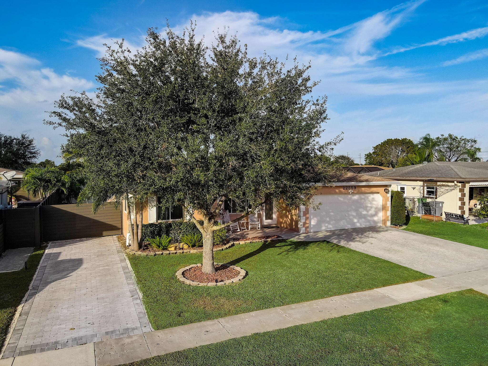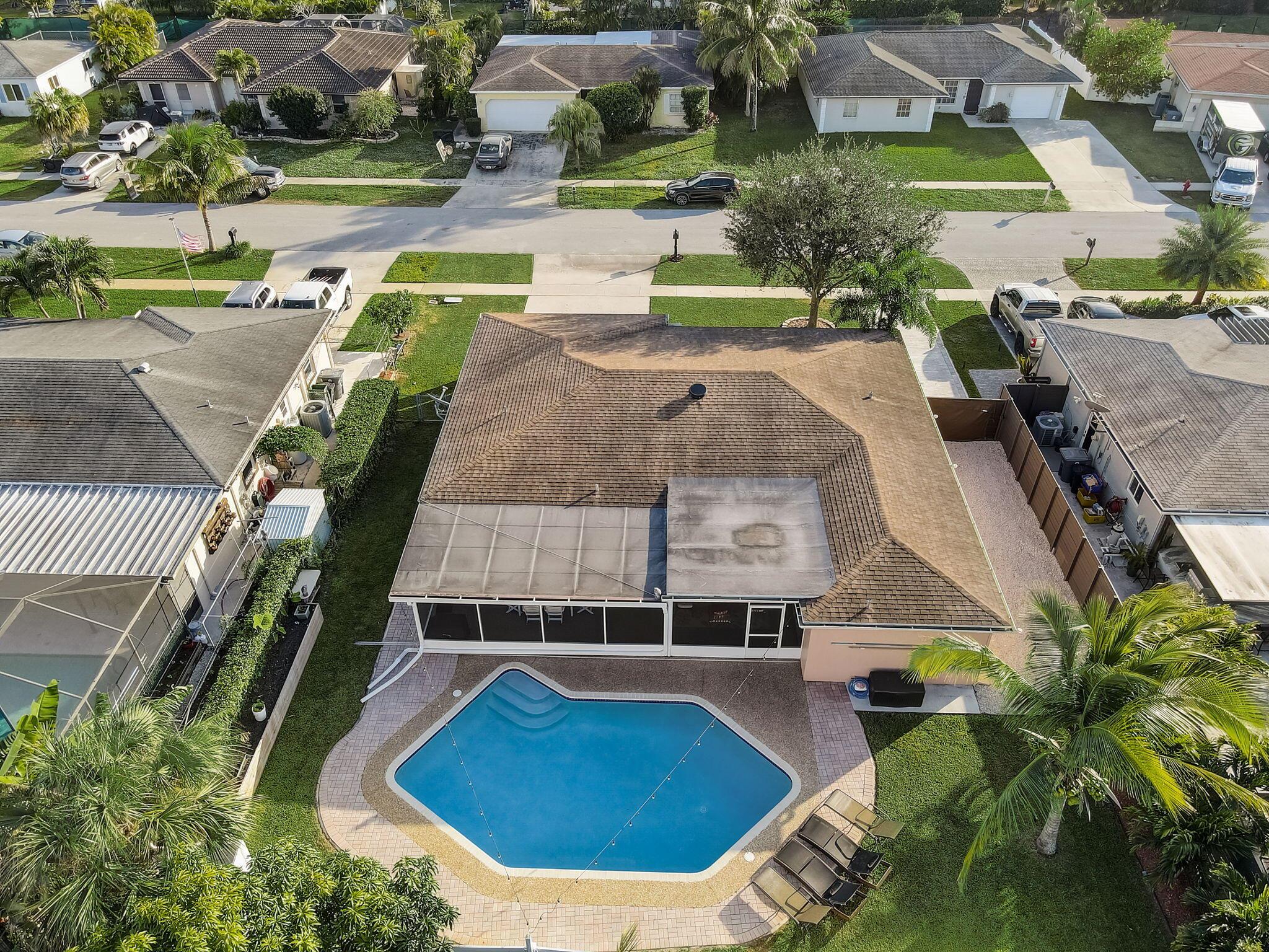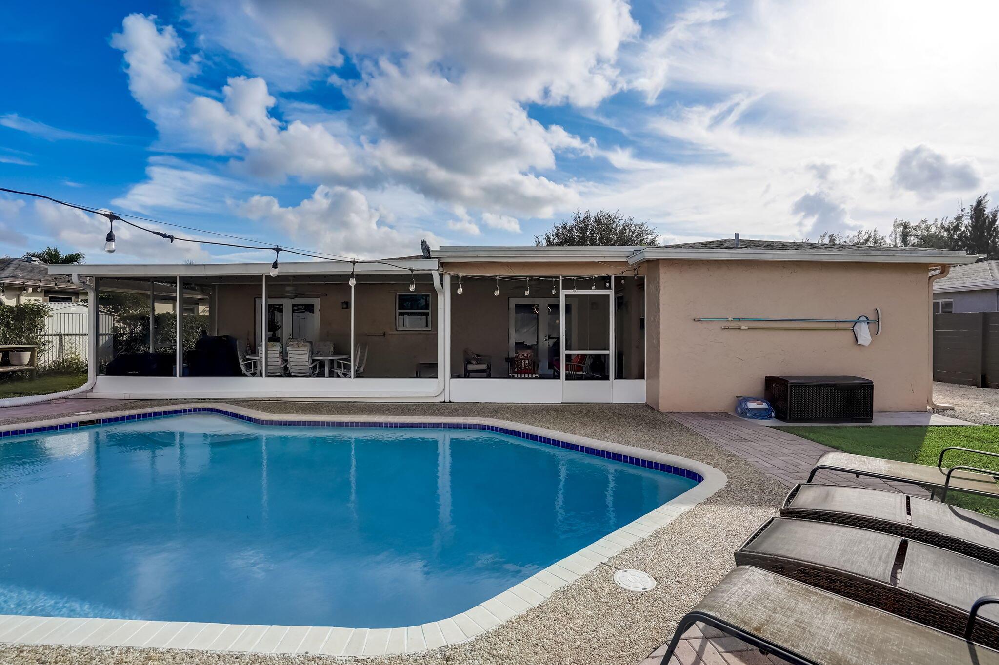 INCREDIBLE 3/2 single family home with fully fenced lot with a salt water pool, and a 2-car garage. UPGRADED kitchen, bathrooms and garage floor. This exceptional property has tile flooring in the living room, dining room, and kitchen & wood flooring in the bedrooms and epoxy floor in garage. This home also features BRINKS alarm system, RING security cameras, hurricane panel shutters, and a large screened patio. Water heater 2022 | A/C 2017 | Roof 2017. It's prime location offers convenient access to excellent schools, shopping centers, restaurants, and parks. Low HOA! HOA fees going up $25 on Jan 2024.Don't miss out on this incredible opportunity ***PRESENT ALL OFFERS***