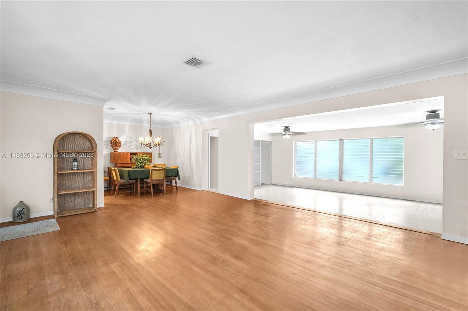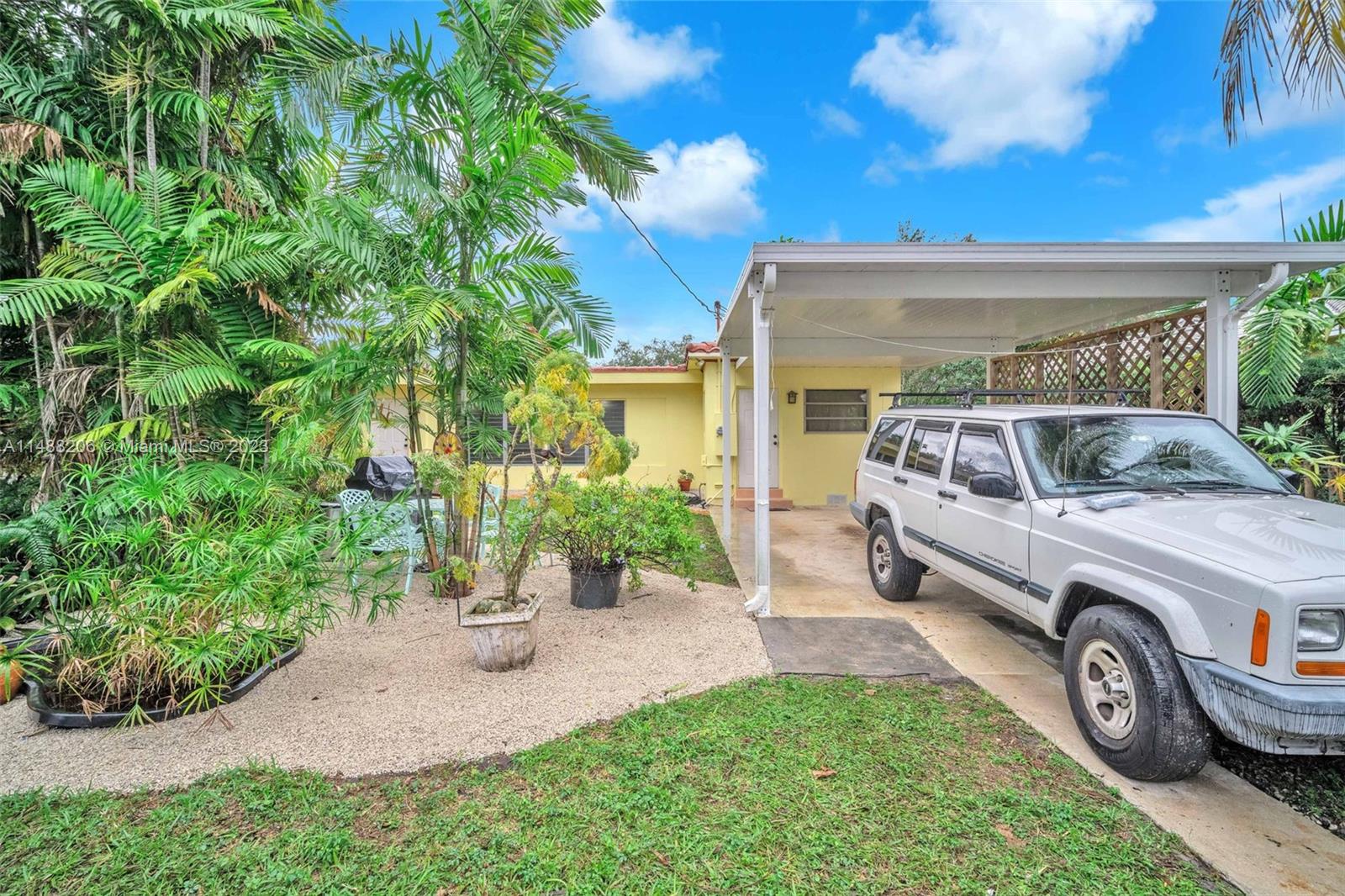 This Hollywood gem boasts over 2,000 sq ft of space with gleaming wood floors throughout. The spacious living room and dining room combo feature charming round molding and the Florida room fills the space with natural light. There's an additional bonus room that can serve as a 4th bedroom, den, or office. The kitchen is a delight, featuring quartz countertops, a double sink, wood cabinets, and a stylish tile backsplash. An updated primary bathroom with porcelain tiles and glass accents in the walk-in shower. A carport for one car and ample parking at the back, a fenced yard, and room for a pool add to the property's allure. The laundry room comes with a newer washer and dryer, and a new water heater. Landscaping adorned with stones on walkways and a 10X20 shed for extra storage.