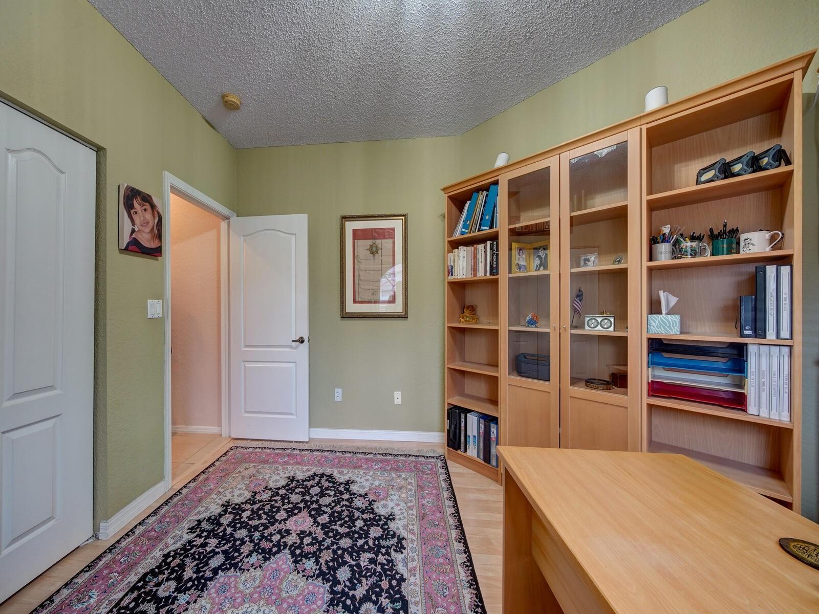 Live at the end of a cul-de-sac, perfect for children and pets. Room to roam in this spacious two-story home. Perfect floor plan with one bedroom and a full bath on the first floor! Volume ceilings and lots of natural light overlooking a peaceful lake. Three bedrooms and huge loft/den/ fifth bedroom. The possibilities are endless. Tile flooring in all living areas and real wood, and laminate throughout the home. The oversized master suite is complete with a walk-in closet, and master bath features a roman tub, dual sinks and full shower! Enjoy the Florida lifestyle on your brick paver patio, perfect for holidays and entertainment. Full accordion shutters on all windows and sliding glass doors. Extremely low association fees. Dining Chandelier and sconces do not convey. Both A/C 2yrs!