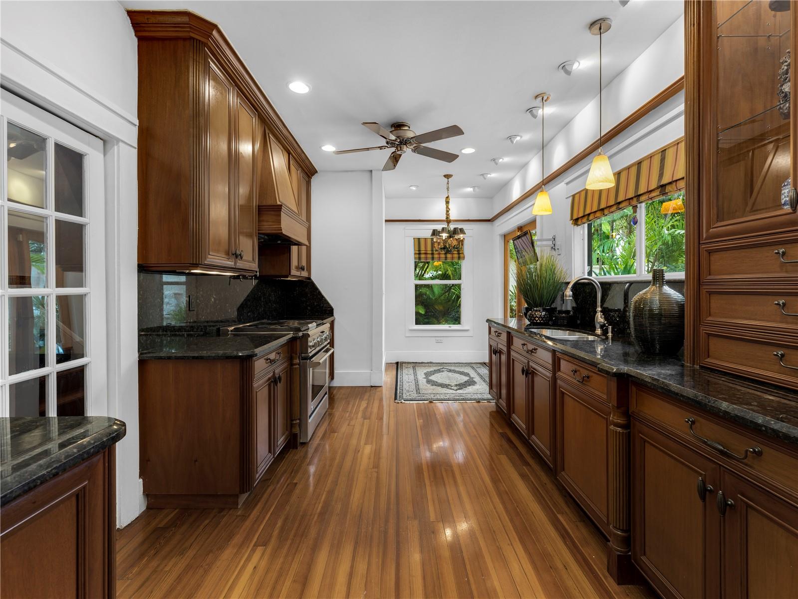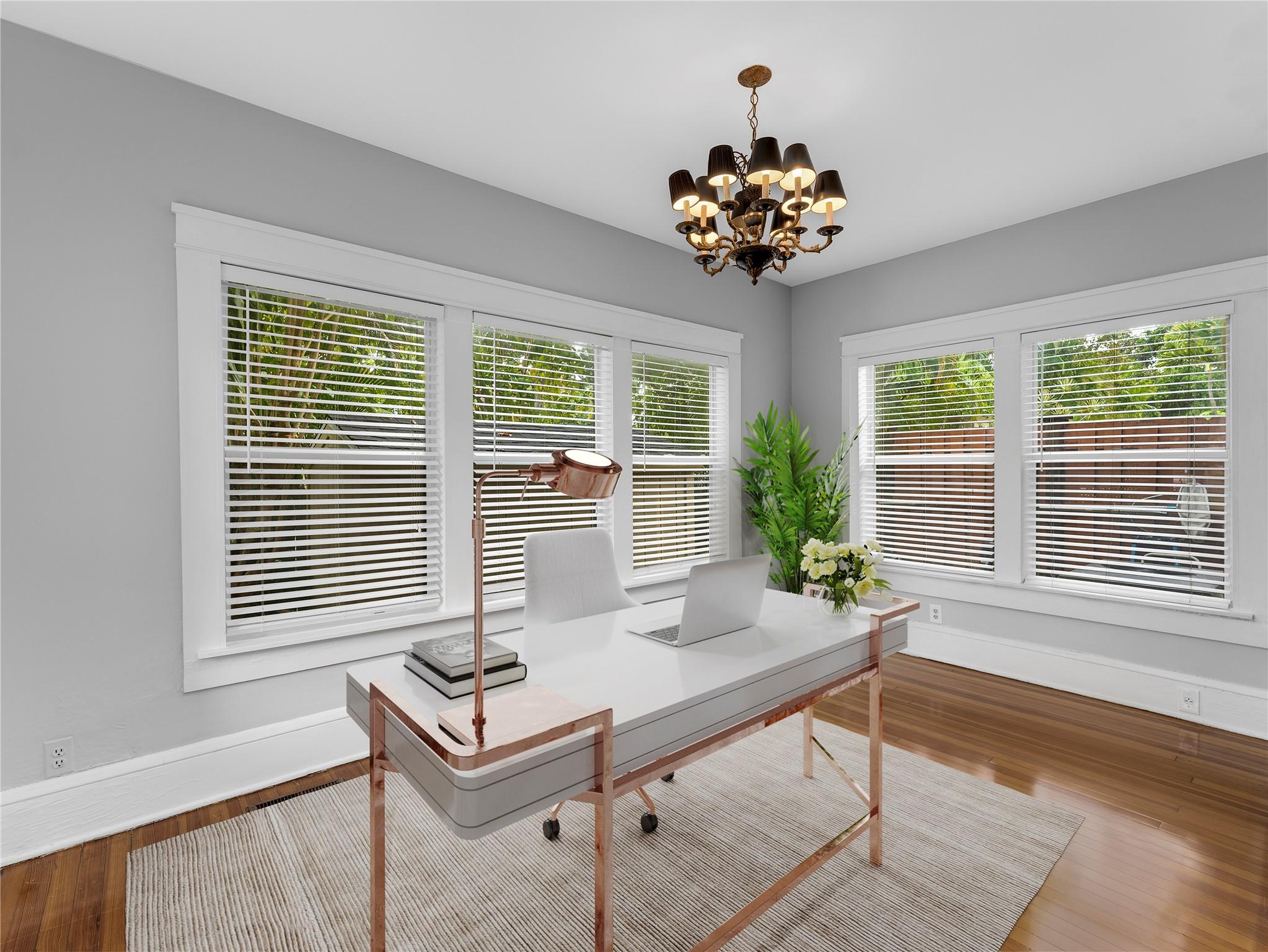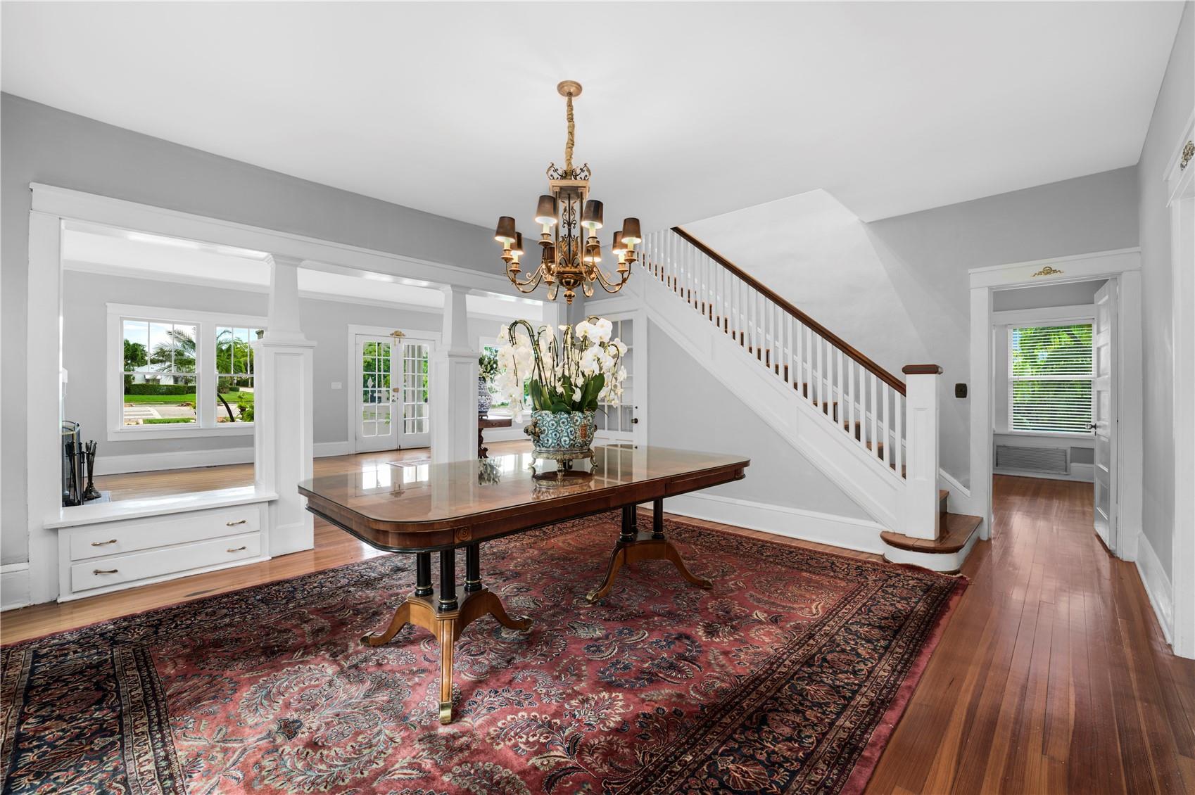 Priced to Sell 'The Grand Dame' of homes in Old Northwood District in West Palm Beach. Refreshed and Renewed Historically designated, unique two-story home features four bedrooms, three bathrooms on a corner double lot. Light filled everywhere with formal living and dining room, crown molding and Miami Dade Pine wood flooring throughout, office and den, gas fireplace, and a gourmet kitchen with French doors leading out to a lush landscaped garden, enchanting pool area with Chicago Brick pavers perfect for entertaining. Minutes from "Wall Street South", the Intracoastal, The Kravis Center, and famed Palm Beach Island. This home is a combination of grace and warmth and offers an opportunity for renovations to suit a family's desires at an attractive price. Detached Cottage. Gated Parking