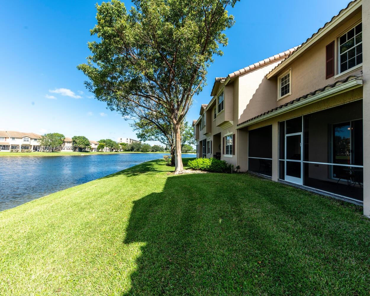 Highly desirable "Villas of Rolling Hills," 3 bedrooms & 3 bathrooms, 2-story townhome with direct lake views. Prime central location adjacent to Grand Oaks Golf Club and NSU-Nova Southeastern University. Spacious and open floorplan 2300+ total sq ft/ 1855+ livable sq ft., split floor plan. Turnkey home w/ vaulted ceilings, crown molding, new bathroom. Updated kitchen features 42-inch white cabinetry, GE appliances. Home has updated LED lighting, multiple ceiling fans, 1st floor tile floor, and screened-in patio with lake views. Private attached 1-car garage with brick paver driveway. Upstairs laundry room with full size washer/dryer and utility sink and closet. Walking distance to shopping, restaurants, NSU, and hospitals. Directly off University Dr. Low HOA and can rent immediately.