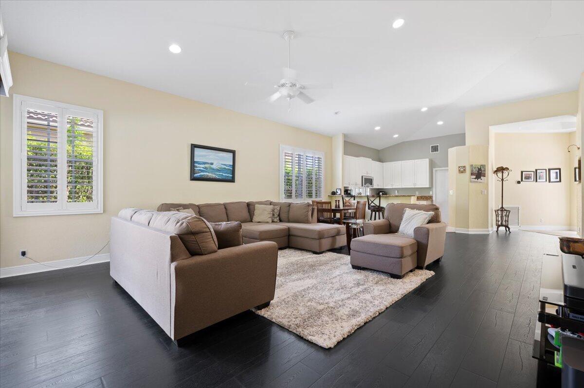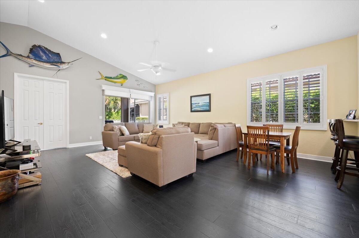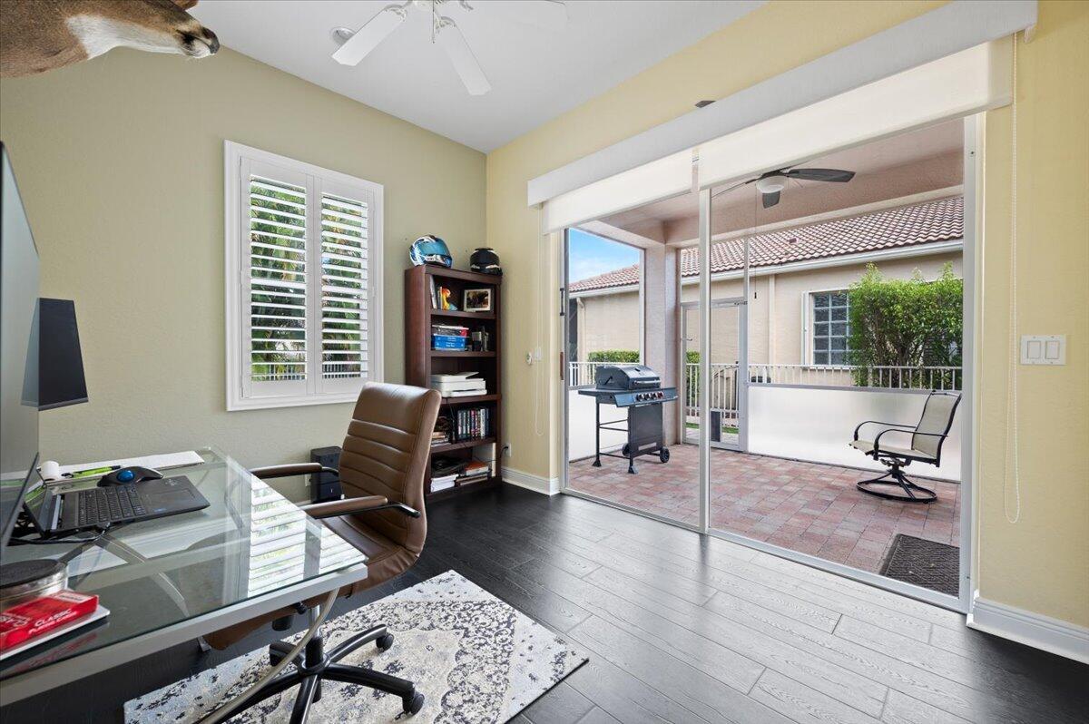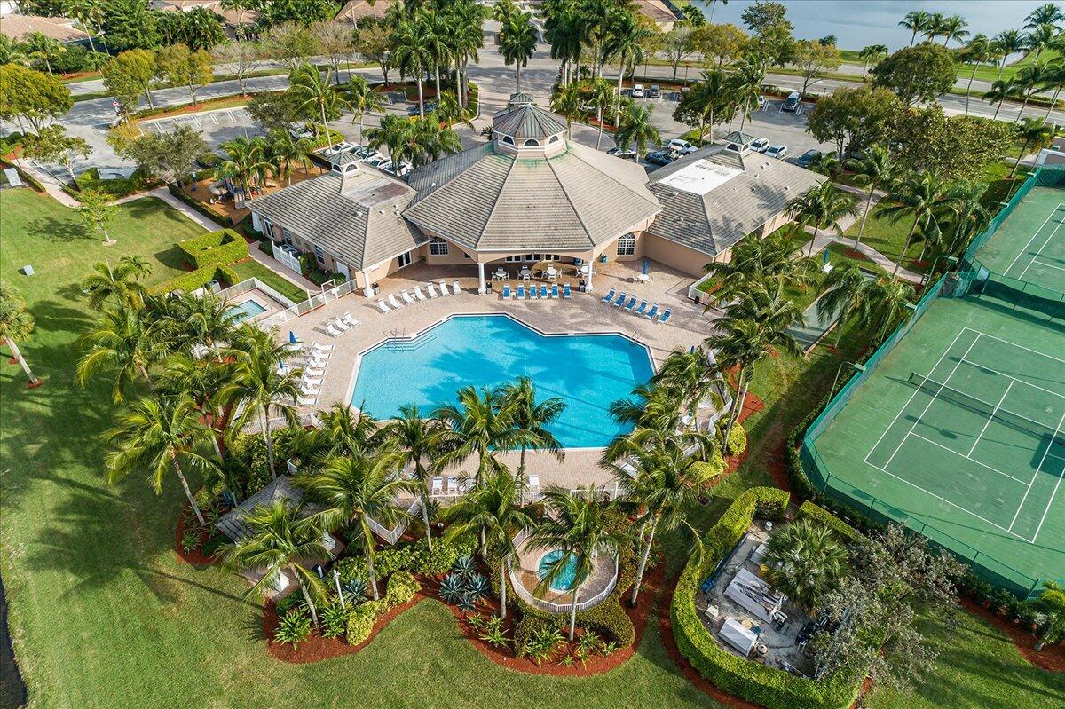 Welcome to your own slice of paradise tucked away in the sought after, gated community of Andros Isle. This delightful one-story townhome has 2 bedrooms, 2 Full Bathrooms, PLUS DEN, which can be a 3rd bedroom, exudes charm and comfort, offering a tranquil retreat with enticing features that redefine the meaning of cozy living. Experience the joy of having a private saltwater pool just steps from your back door, complemented by a spacious yard, perfect for hosting gatherings and creating unforgettable memories. Beautiful wood flooring throughout the main living areas accentuates the soaring ceilings, while the open kitchen, decked out with granite countertops and modern stainless steel appliances (all less than 5 years old), invites culinary adventures. The NEW roof installed June 2023