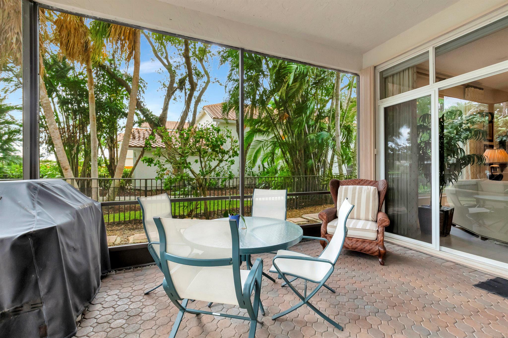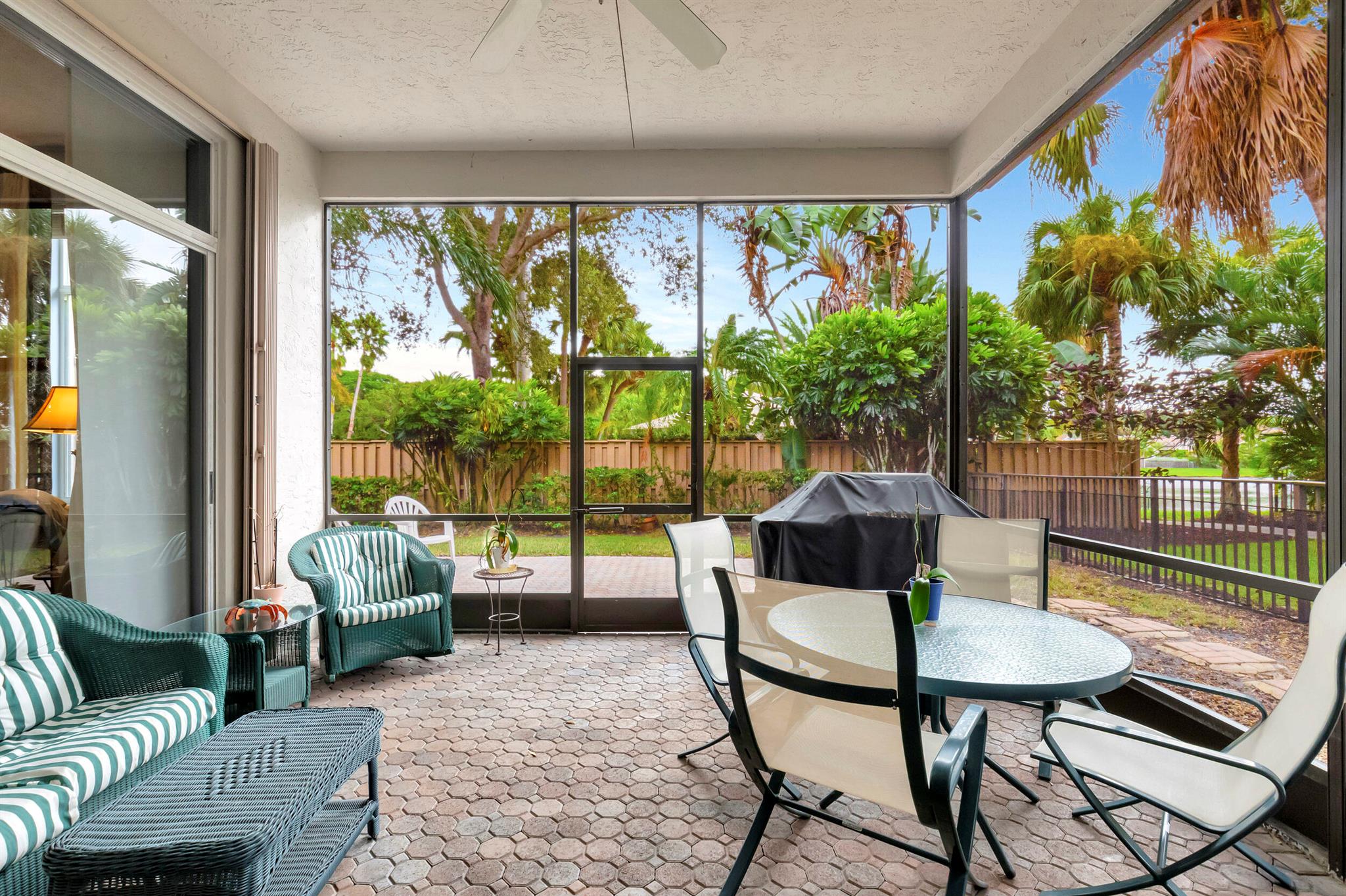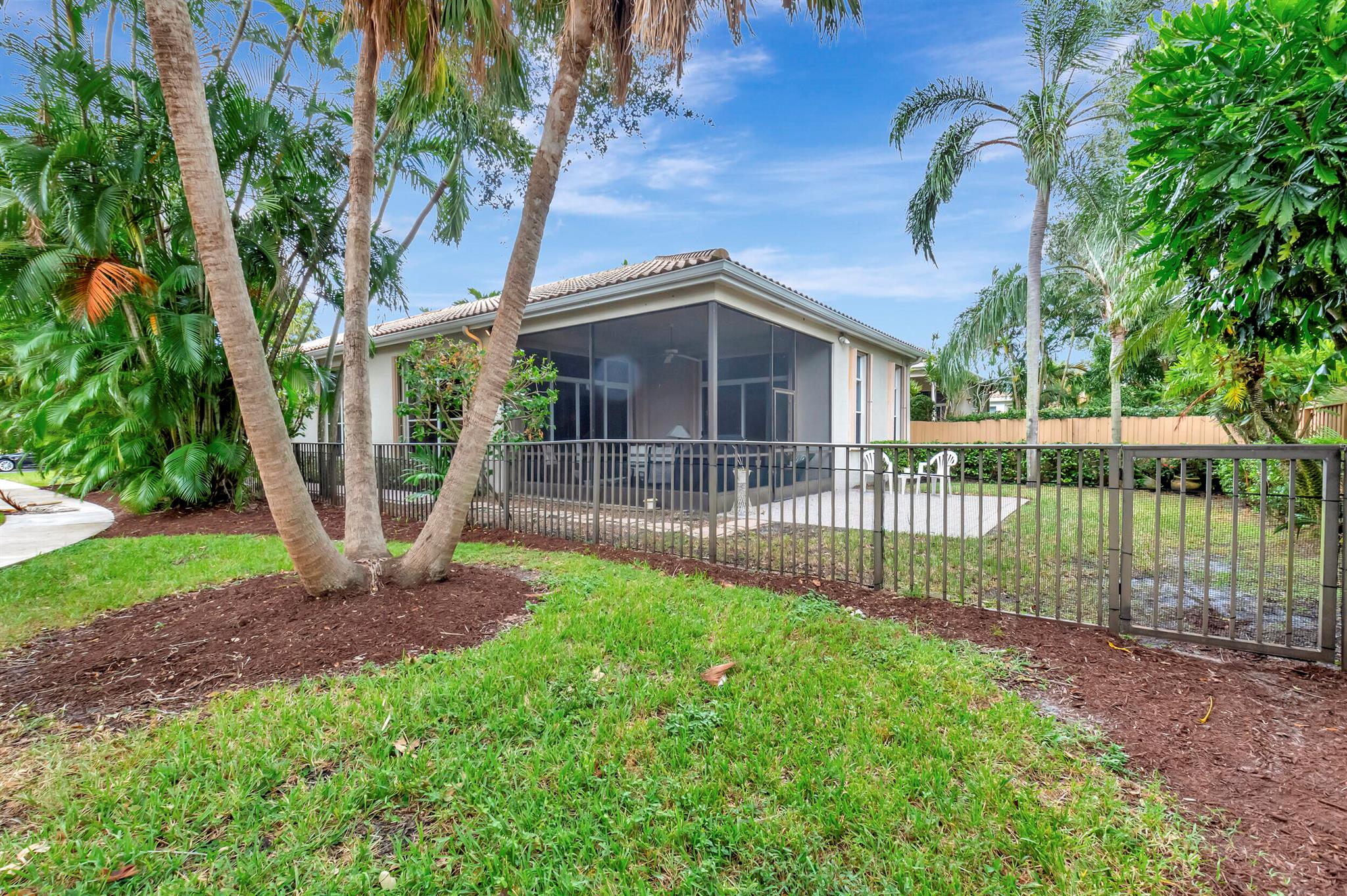 Located in the Banyans of the award winning Broken Sound Country Club, this extremely well-kept house is a must see! This single story home is situated on an amazing lot, with just a 10 second walk to the beautiful Banyans development pool. The house has an ideal open concept and split floor plan. The kitchen features granite countertops, newer stainless steel appliances and a separate wine/beverage cooler. You'll love the large windows throughout, giving the house an abundance of natural light with smooth & soaring ceilings. The outdoor space is perfect for relaxing & entertaining under your covered patio. Home includes accordion hurricane shutters throughout and is truly in impeccable condition. Mandatory country club membership required.