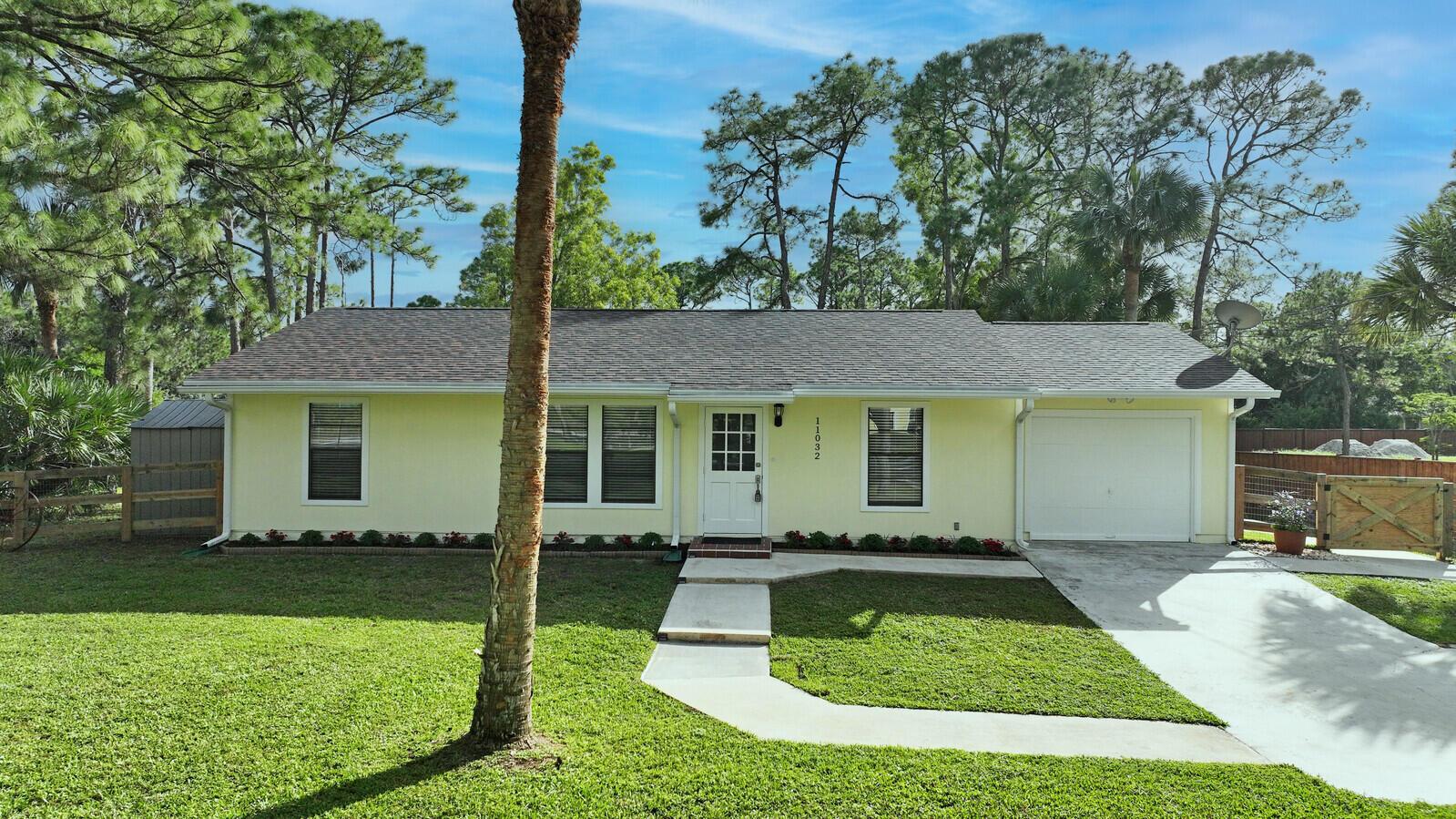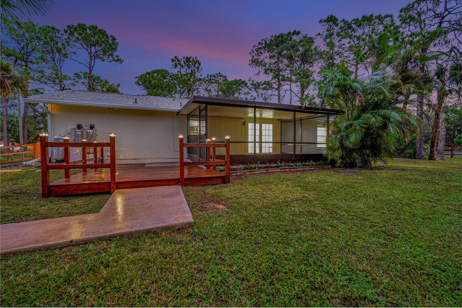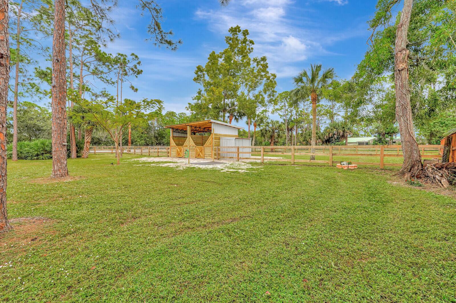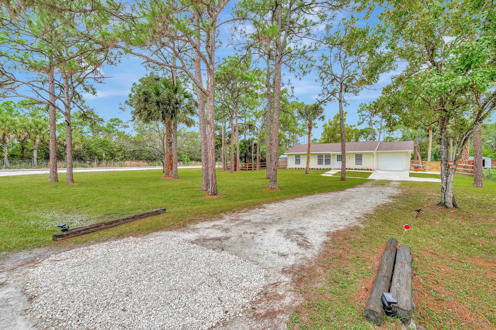 Better than BRAND NEW! This home has been completely renovated from top to bottom! Brand new roof (2023), new AC(2023),new luxury vinyl plank floor, designer inspired paint, new stainless steel appliances and so much more! Take full advantage of this extremely large corner lot and fenced in back yard! Bring your horses and any other animals you can think of! Two BRAND new horse stalls with two paddocks that offer plenty of grazing for your horse(s)! Nothing like sitting on your covered back patio or inside and having the amazing view of your horses and other animals as they roam the backyard! Location, Location, Location!! This home offers all the peace and quiet you want while still being closer than most to downtown West Palm, I 95 and all major amenities. Make this your home today!
