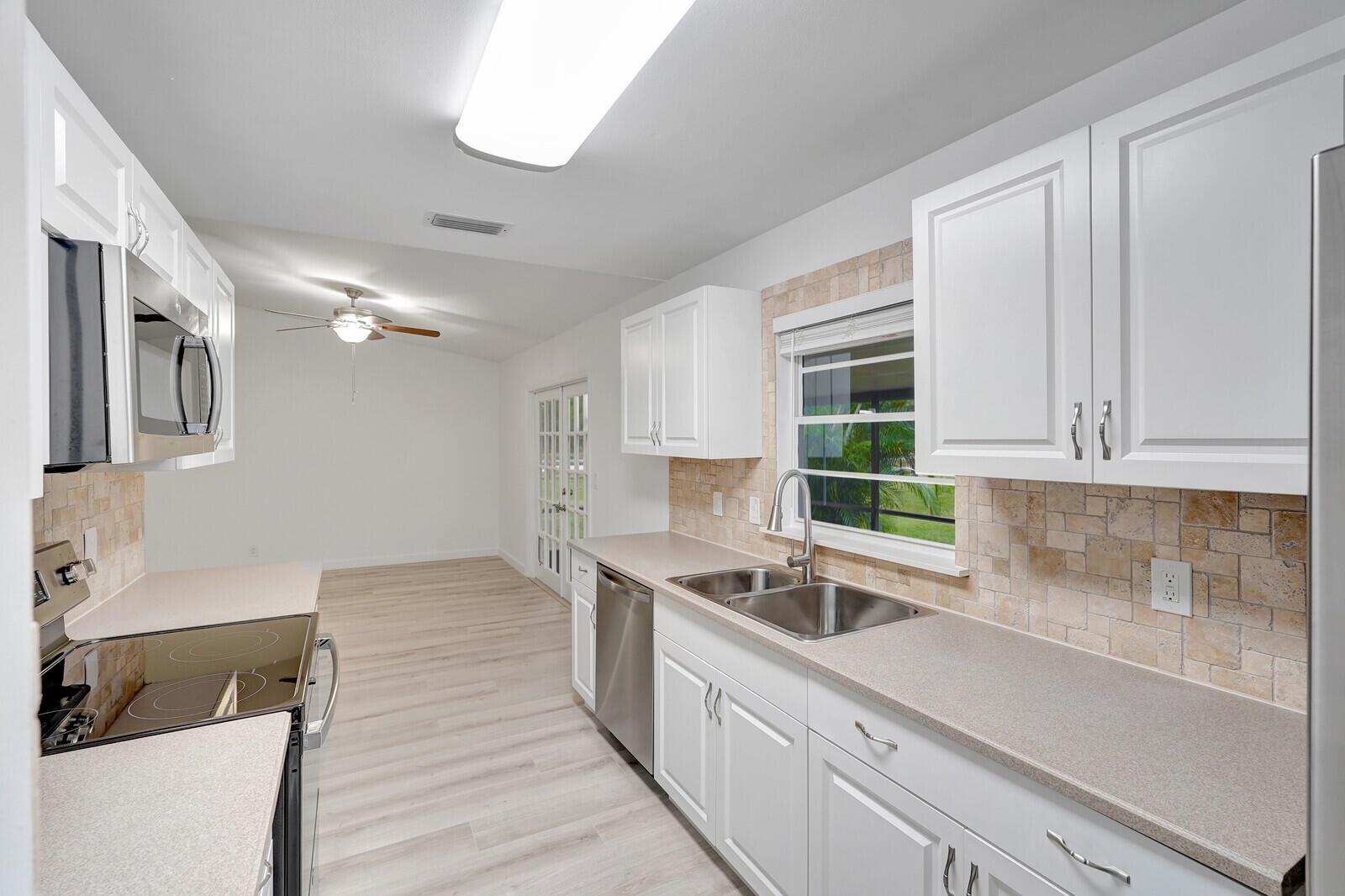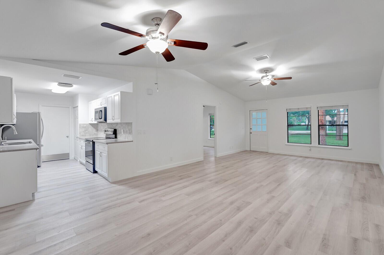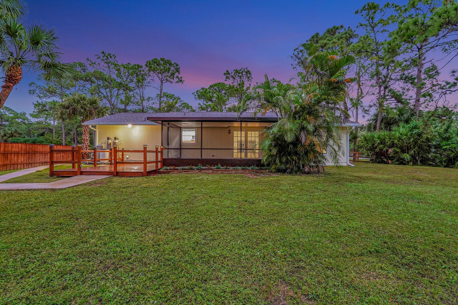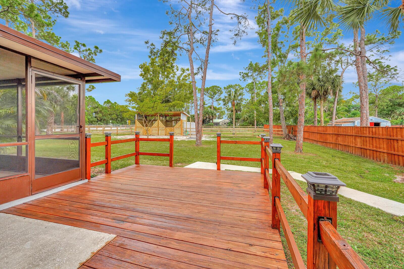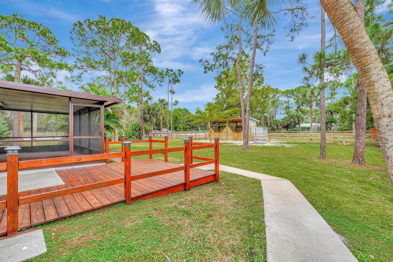 Better than BRAND NEW! This home has been completely renovated from top to bottom! Brand new roof (2023), new AC(2023),new luxury vinyl plank floor, designer inspired paint, new stainless steel appliances and so much more! Take full advantage of this extremely large corner lot and fenced in back yard! Bring your horses and any other animals you can think of! Two BRAND new horse stalls with two paddocks that offer plenty of grazing for your horse(s)! Nothing like sitting on your covered back patio or inside and having the amazing view of your horses and other animals as they roam the backyard! Location, Location, Location!! This home offers all the peace and quiet you want while still being closer than most to downtown West Palm, I 95 and all major amenities. Make this your home today!