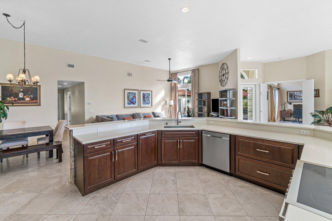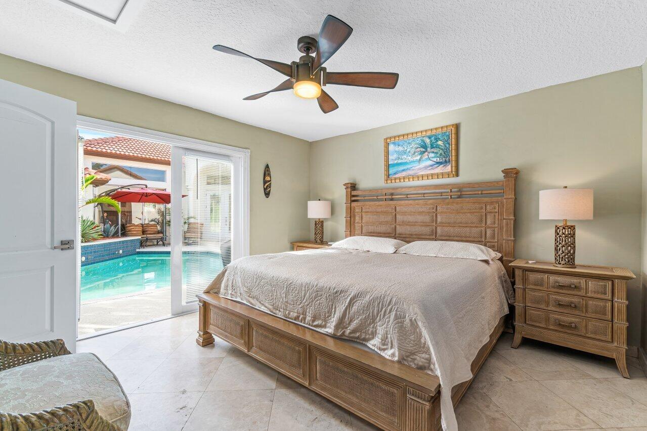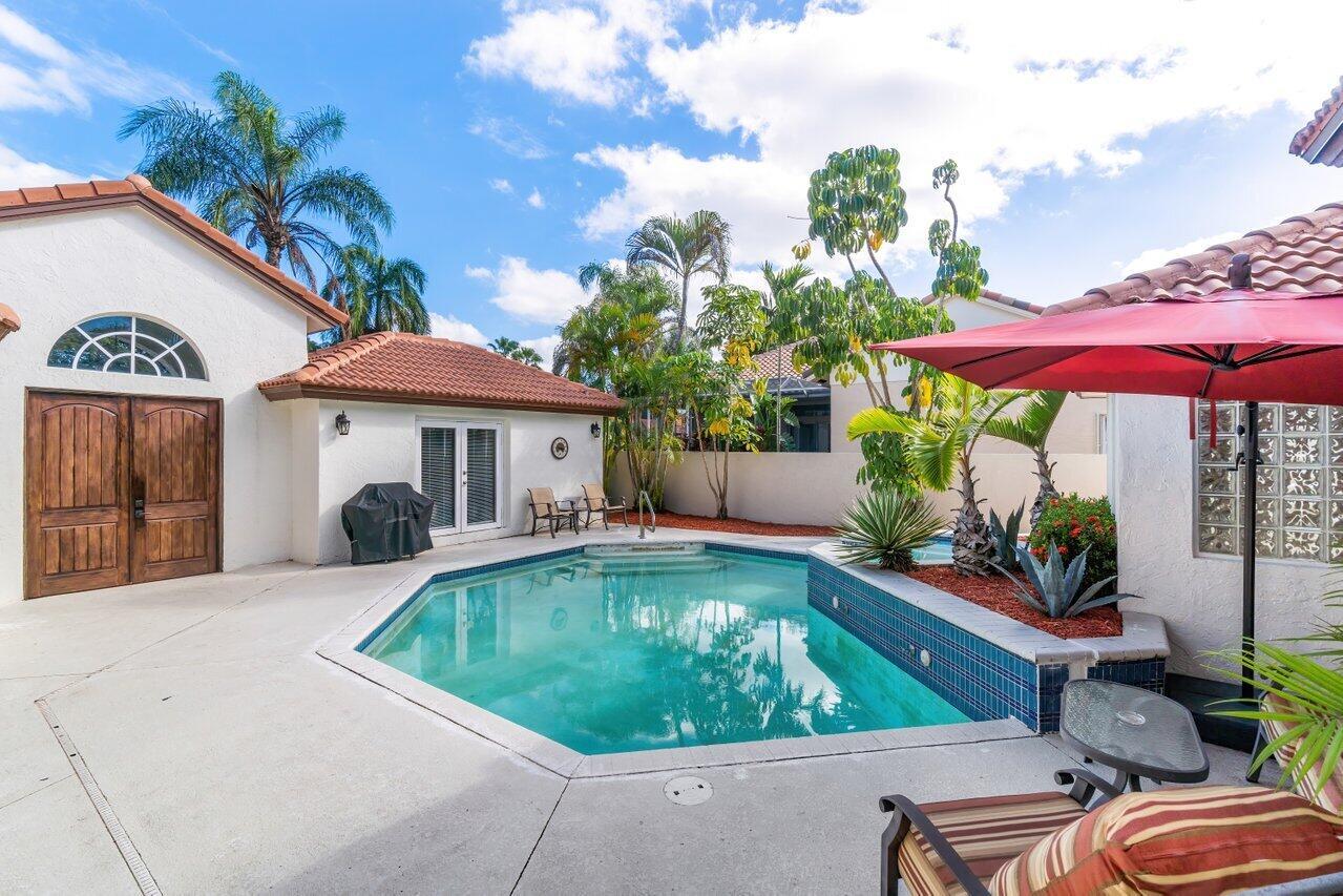 Exceptional modern home with backyard facing directly west to endless lake views in upscale Boca Isles South. Great room concept with open floor plan with remarkable high ceilings. Home features private pool with spa, split floor plan with 4 bedrms & 3 full bathrms, and separate guest house with its own private bathrm. Newer roof installed 2019. Master bedroom located on its own separate wing of house away from other bedrooms. Spacious master bathroom features a double-sink vanity, walk-in shower, Jacuzzi tub, two walk-in closets for his and hers and linen closet. Boca Isles South is a gated community with an exceptional club house featuring a resort-style pool, spa, tennis & b-ball courts, playground, multiple meeting/card rooms, state-of-the-art fitness center, TV/game & billiards room.