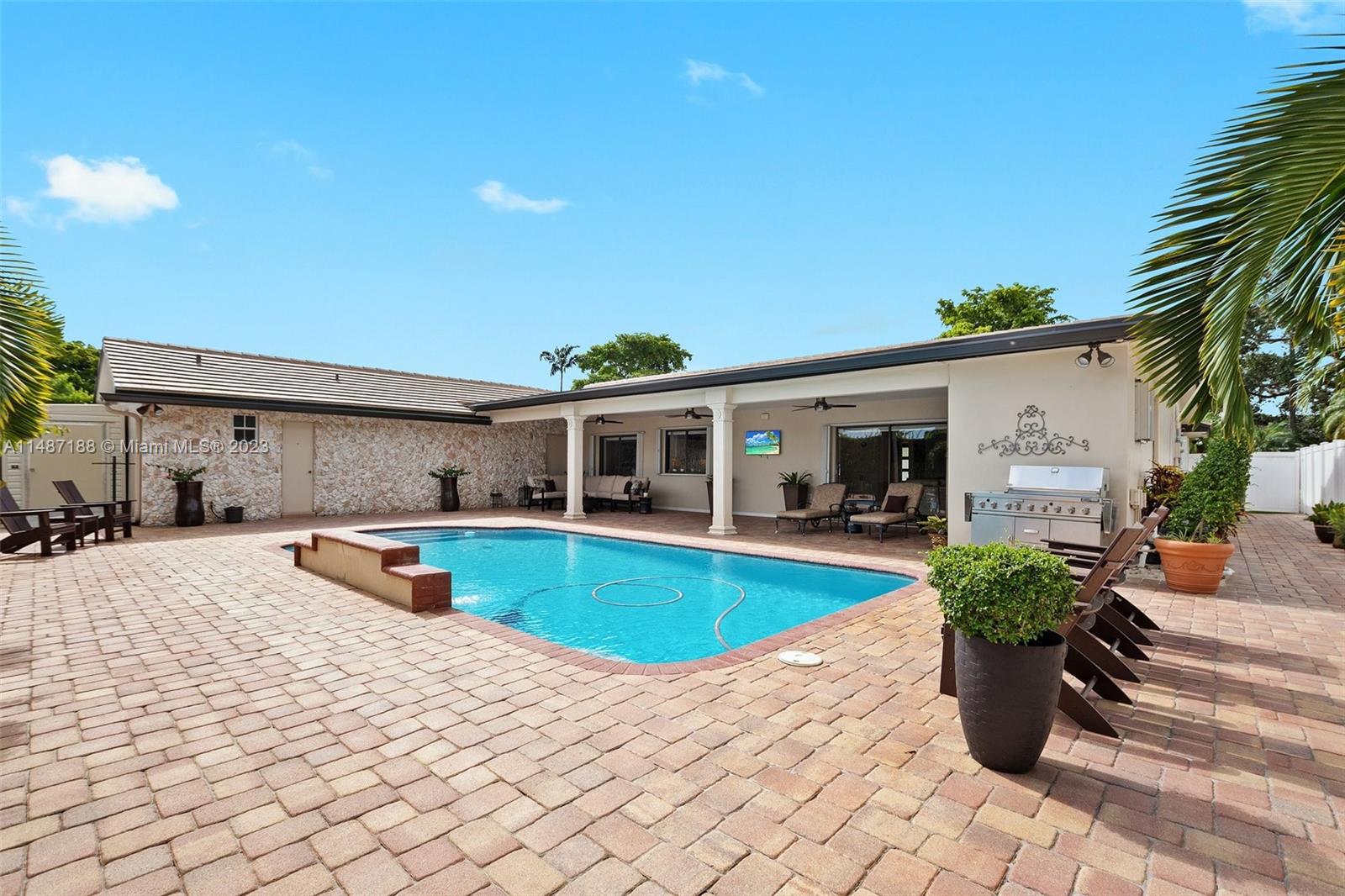 Beautifully updated true 4-bedrooms, 3-bathrooms home in the desirable Emerald Hills Community. This charming ranch home has been meticulously renovated to offer modern comfort and style featuring a formal living and dining room with open-concept family room drenched in natural light. The stunning kitchen showcases sleek quartzite countertops, stainless steel appliances, and ample storage space, making it a dream to cook and entertain in. Discover a private backyard oasis, perfect for outdoor gatherings and relaxation by the pool. Whether you're hosting a BBQ or enjoying a quiet evening, this outdoor space has it all with its lush landscaping and designated patio area. Other notable features of this gem include a New roof, updated pool, landscaping, and kitchen.