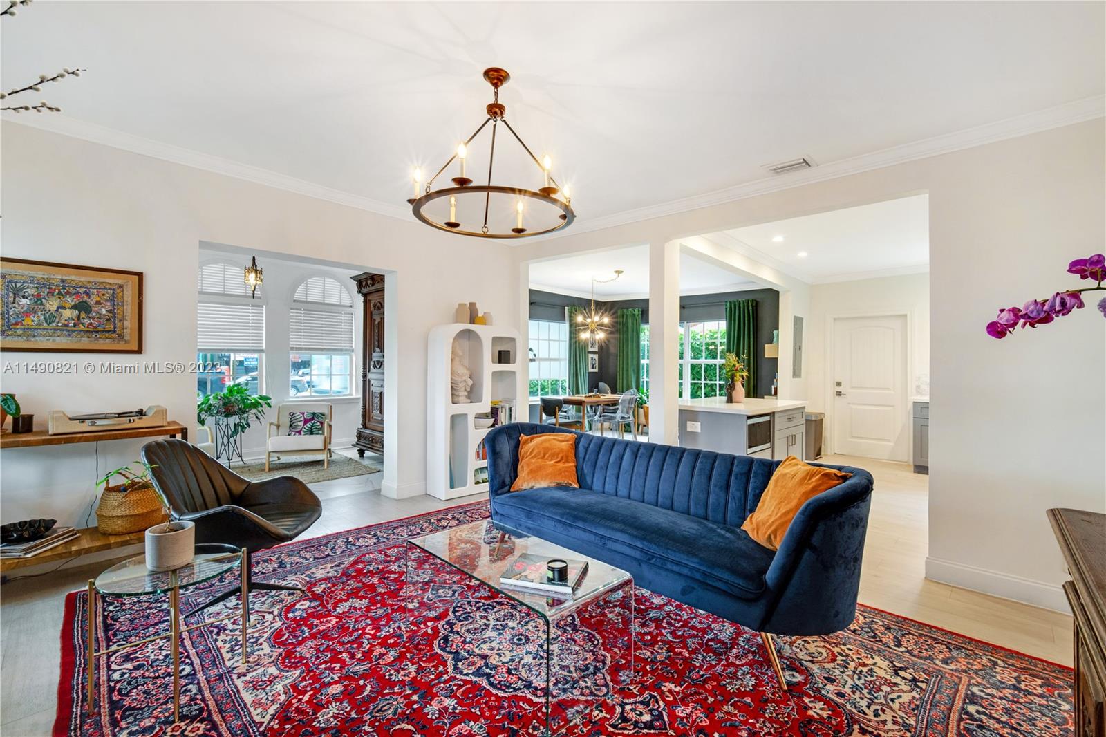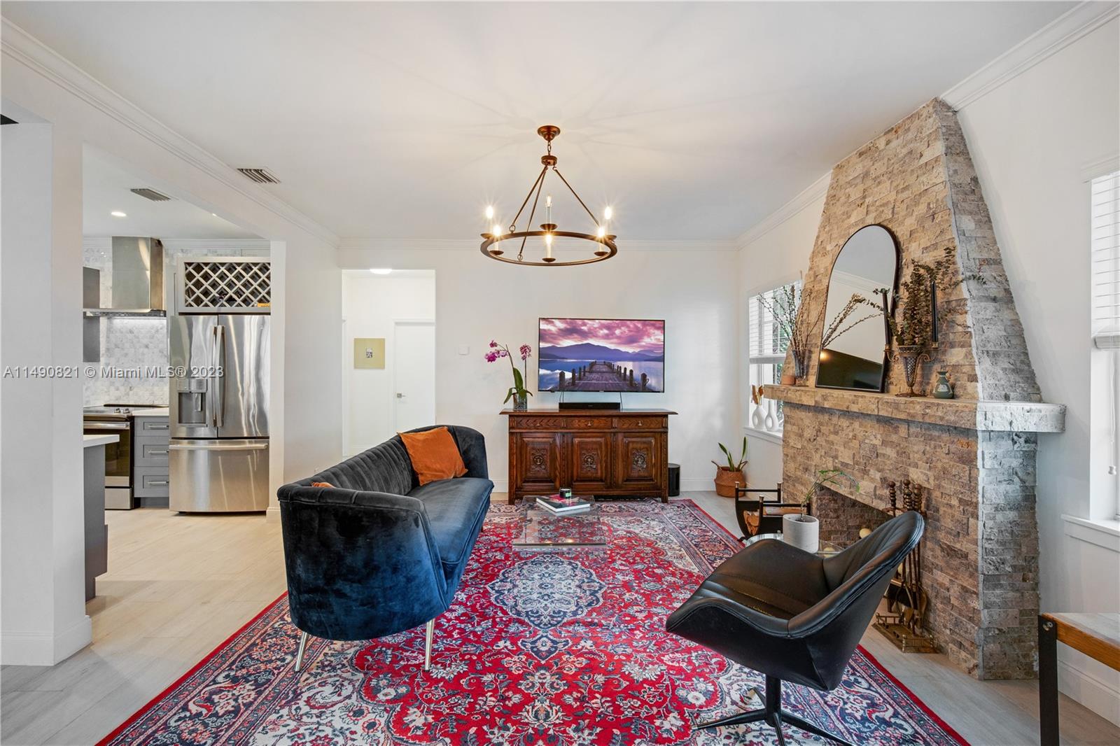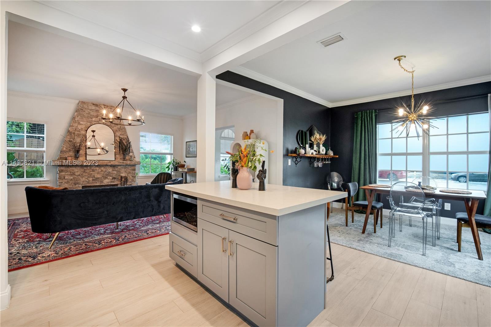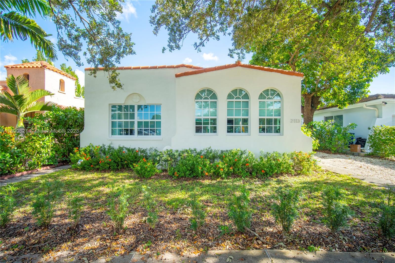 Experience timeless elegance in this fully updated Coral Gables classic. This 1925 Spanish-style bungalow features 2 beds & 2 baths with tasteful, modern finishes throughout. The updated kitchen is paired with a light-filled foyer and large living area with fireplace to create open floor plan. Gut-renovated in 2021, with full renovations to the subfloor, plumbing, and electrical systems while adding impact windows/doors. The silicone roof coating measurably reduces energy use and provides added protection against leaks. The backyard features lush landscaping for privacy, tropical fruit trees and raised beds for gardening. A prime location steps away from the beautiful Country Club Prado, Biltmore Hotel, Granada golf course, Riviera Country Club, and Miracle Mile shopping/restaurants.