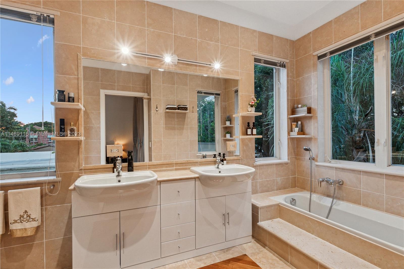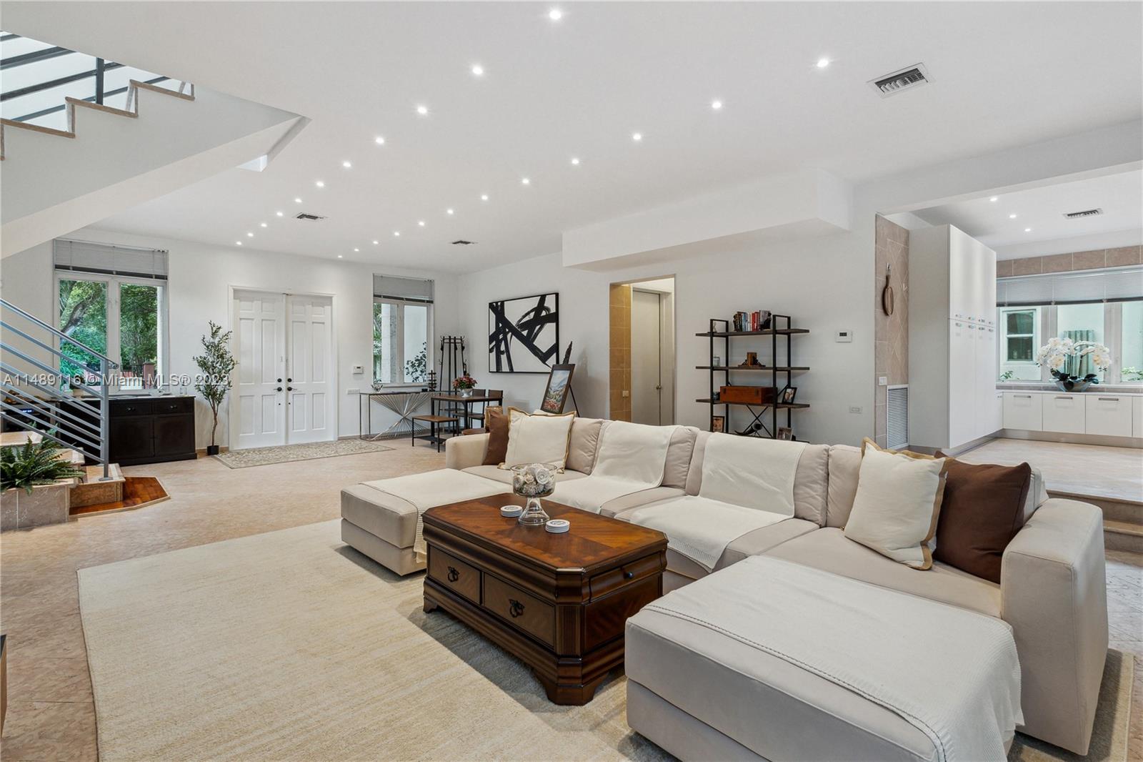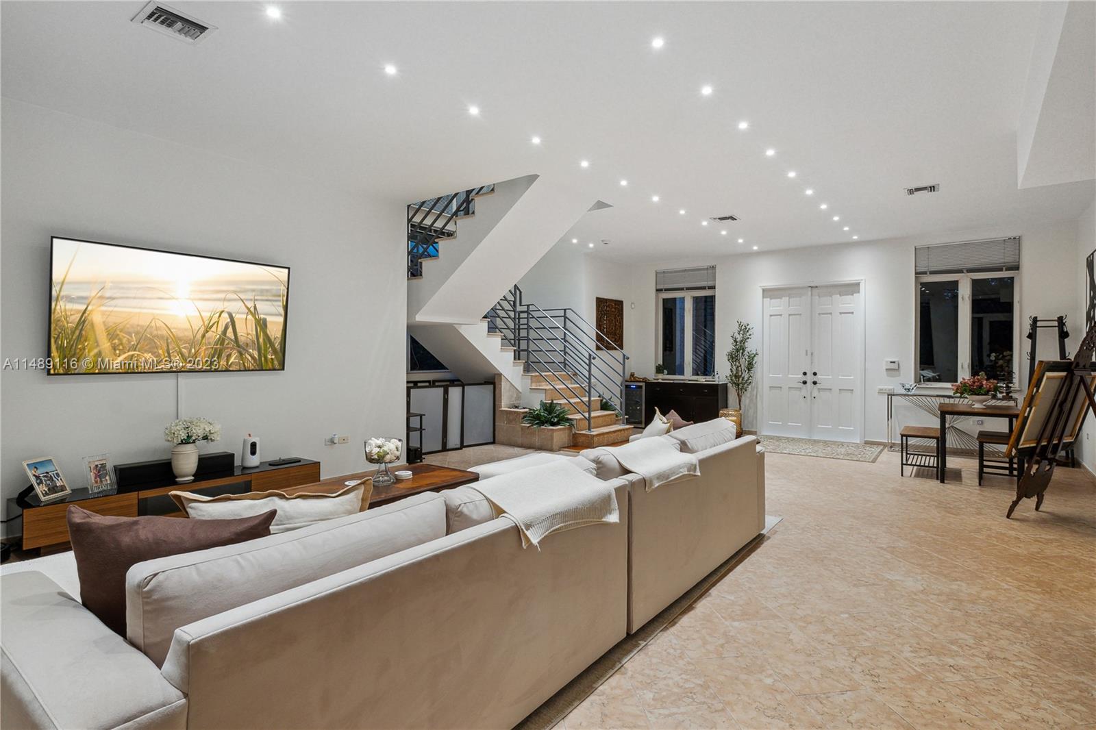 Dramatic and beautiful! Newly refined Italian modern architecture with fabulous great room open floor style! Sophisticated, streamlined & stunning two story executive home in the heart of City Beautiful! Soaring high volume ceiling, floor to ceiling glass walls, special lighting, Rosa Perlino marble floors, impact windows & doors! Open gourmet kitchen with center island and more! 3 bedrooms upstairs. Huge wrap-around second floor private terrace perfect for private retreat and sun/moon bathing with stunning views of charming Coral Gables! Additional roofed patio off kitchen & living room. Room for pool. In demand location with a short stroll to fine dining, shopping and entertainment! Beautiful street & best schools! A gables Gem! Truly unique. Perfection! See Broker's remarks for appts.