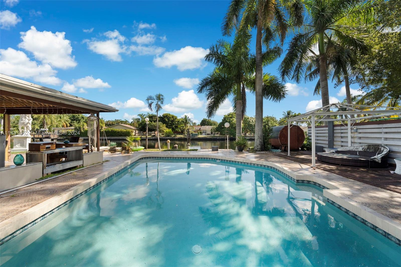 Wow, don't miss this Opportunity!! An Investors dream! Beautiful, Spacious, Waterfront 4 bedroom 2 bathroom Single Family House with a Pool and Sauna Overlooking Intracoastal is Active on market Now! No - HOA, Airbnb welcome. Close to major roadways and central to all that you need in town. A short drive to Beaches and Parks. A well loved multi generational home, this home provides the perfect space for your Florida Oasis. A Huge Lot lot with a Dock at the widest point of the canal which has ocean access, there are fixed Bridges.