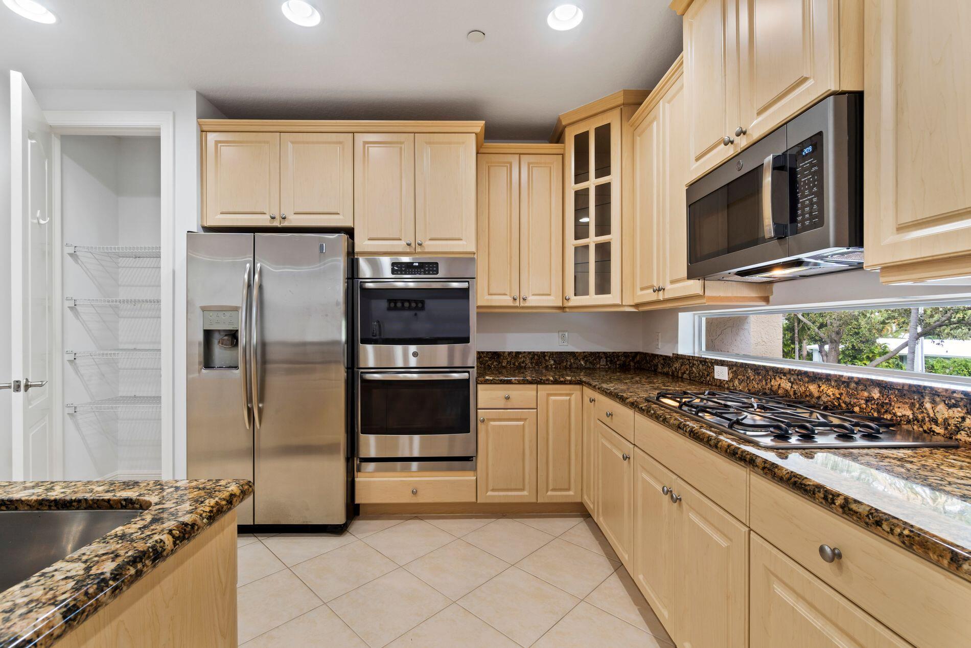 One of East Boca Raton's largest townhomes, this unit features 4BR's (or office), complete with elevator and sits on the perimeter of the community in a premium location. First floor features access to the garage, full bath and large 4BR with sliders opening to covered patio and backyard. Second floor features spacious living room and dining area along with powder room. Adjacent to these rooms is the kitchen featuring, with SS appliances including gas range and double oven, all open to the family room. Third floor has generously sized primary bedroom and 2 large walk in closets. Primary bath includes dual sinks, jetted tub, shower and water closet. Covered balcony with room for a grill and patio furniture along with fenced backyard. This unit is just a very short walk to pool. Fresh paint