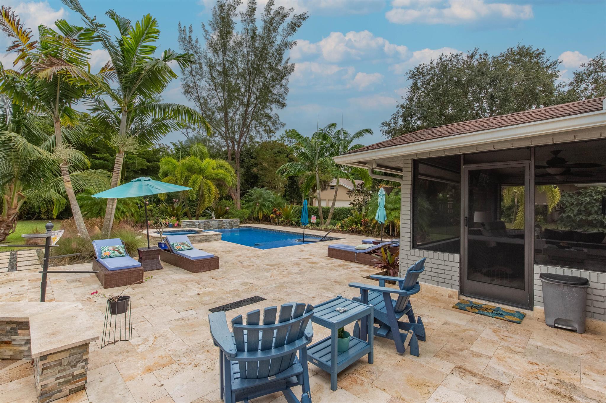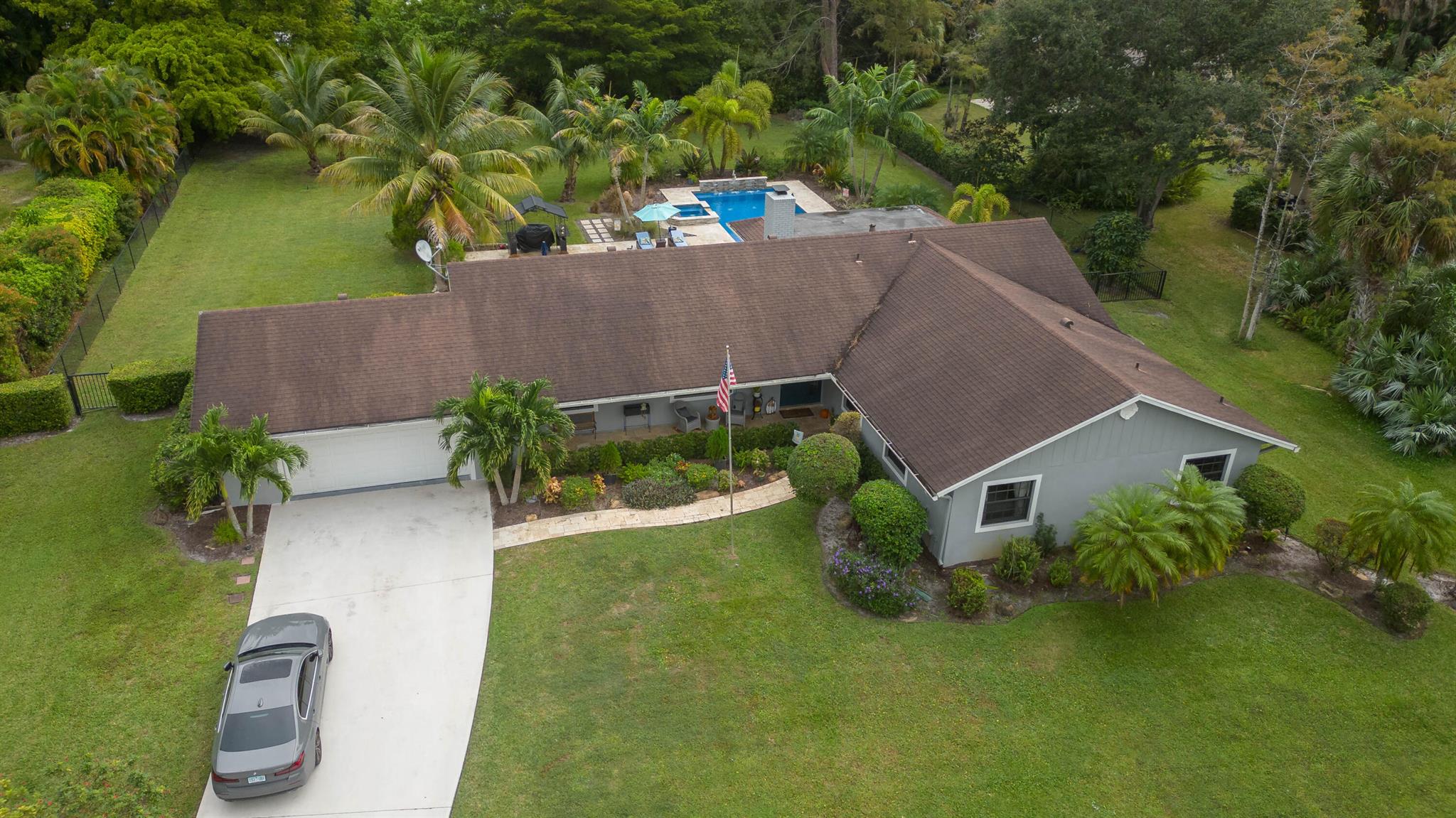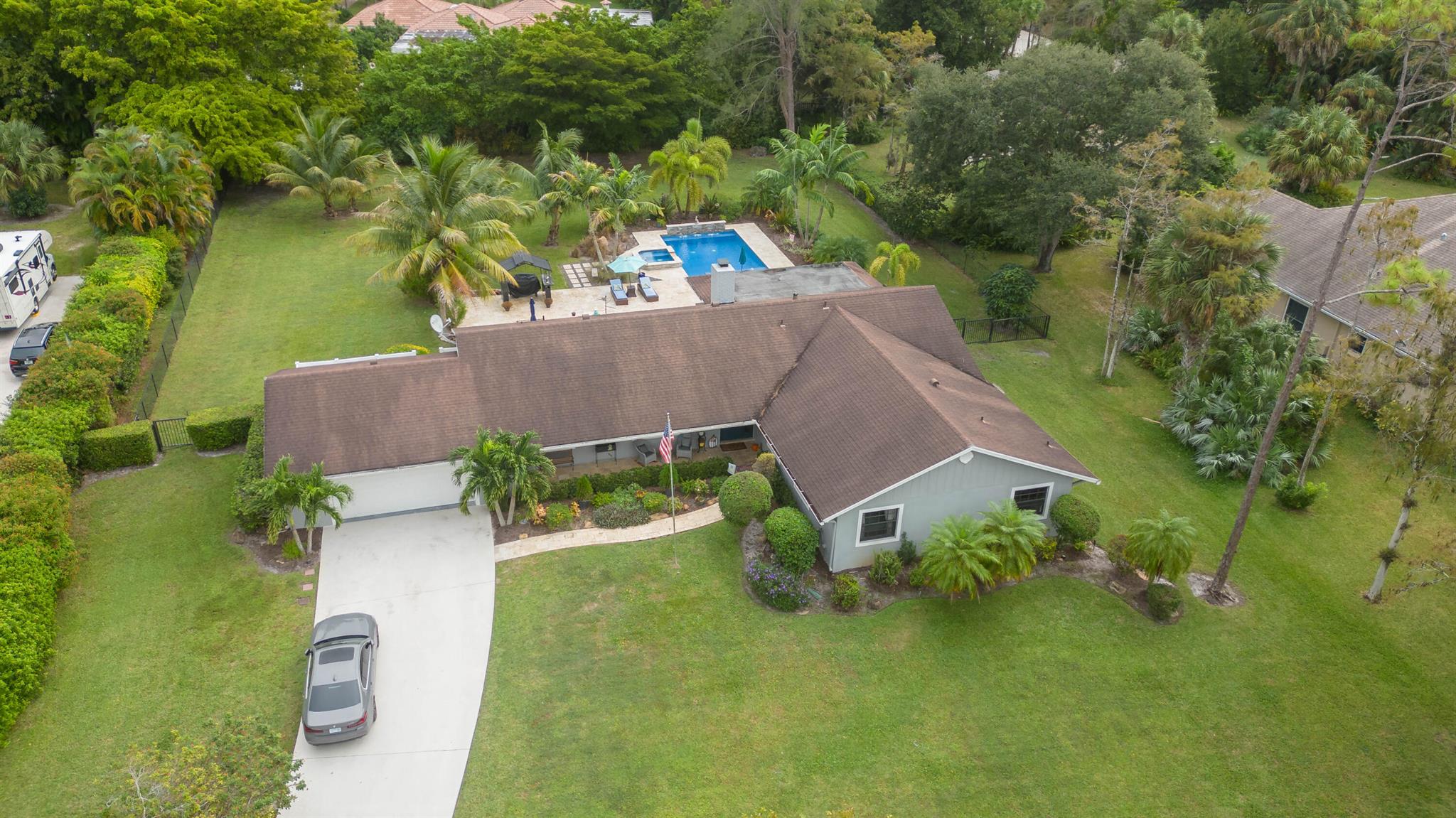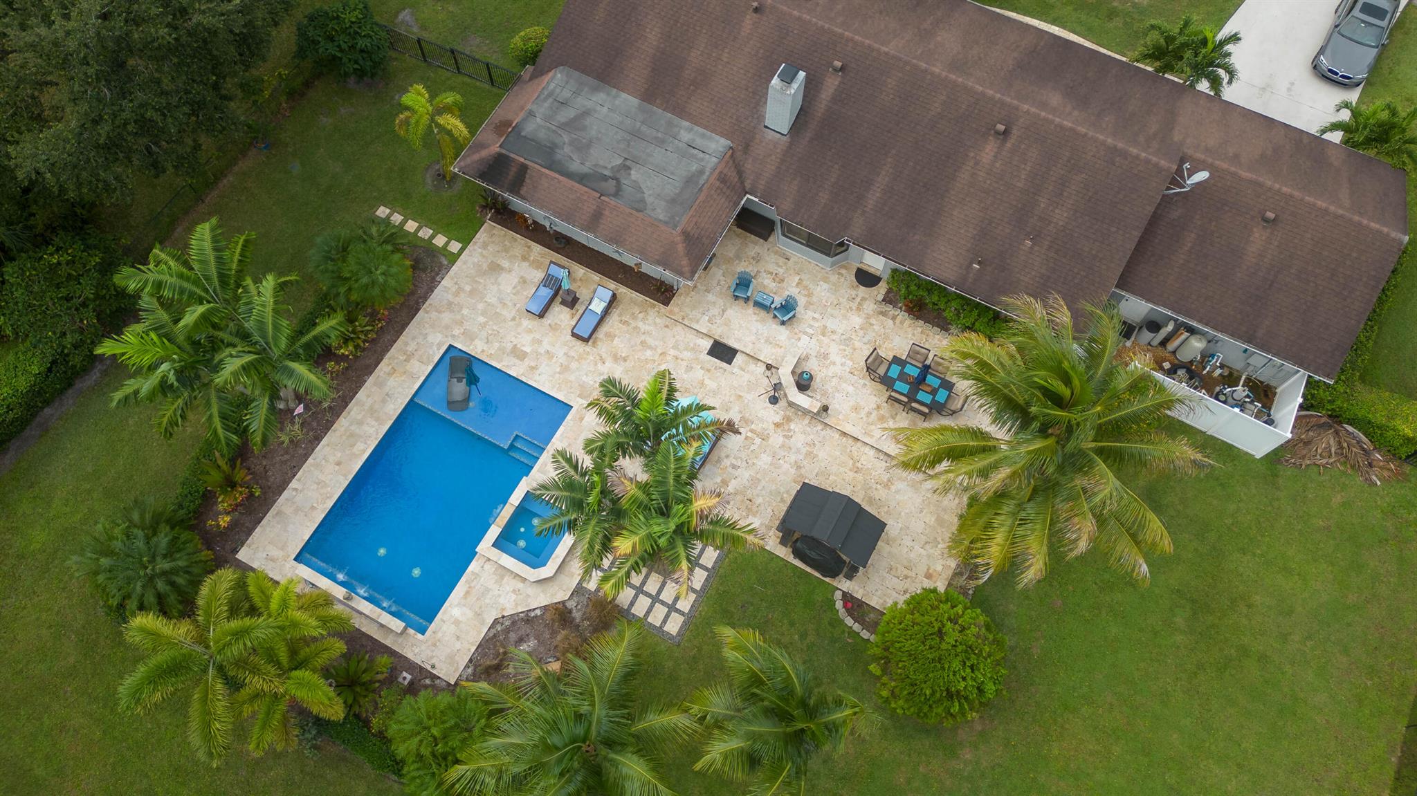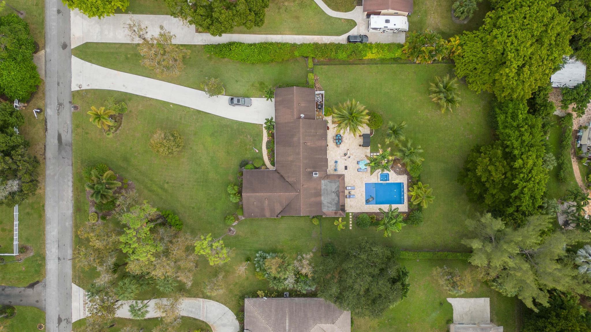 Here it is! Rare opportunity to own 4 Br Pool home on 1.08 arcres with No HOA, clean as a whistle, in good condition . Dead end street, creates quiet enojoyment area with new upcsale homes going up nearby. See it and your family will love you. Charming double hearth fireplace between the kitchen and family room. Double french doors will lead you to the screened porch for additional gatherings or me time. Kitchen and bathroom cabinetry soft close drawers throughout. Large laundry room or mudroom with plenty of storage. Resort style pool and jacuzzi surrounded by Foxtail palm trees