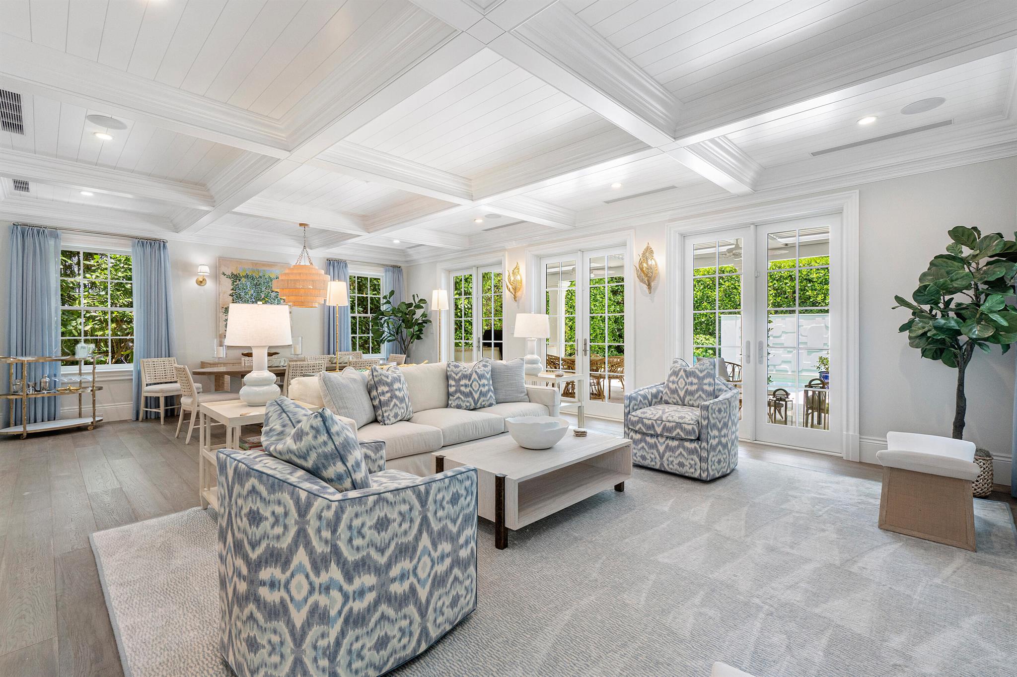 Lovely Island Style residence built in 2017. Totally furnished ....down to the home essentials. Coveted in town location close to the newly renovated town docks, bike trail, the Four Arts, the new town recreation center, beach, and the many shopping and eating establishments on Worth ave. This 4BR/5.1BA is Light and bright offering an open floor plan with stunning coffered ceilings, and a gourmet chef's eat-in kitchen with top-of-the-line appliances and finishes. The large master suite includes a spacious sitting area, dual baths and dual walk-in closets. Additional highlights include wet bar, elevator, garage, and generator. No renovation or furniture necessary. All inclusive and ready for the new owner!