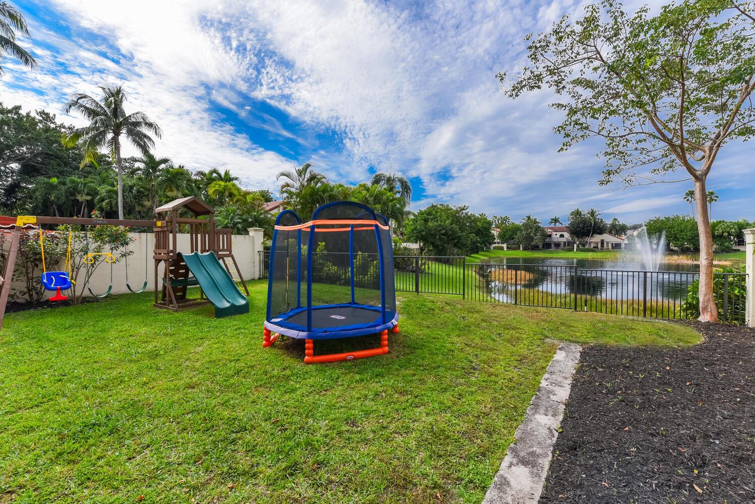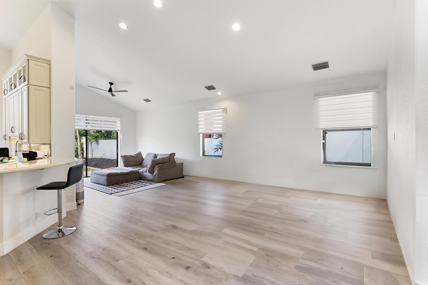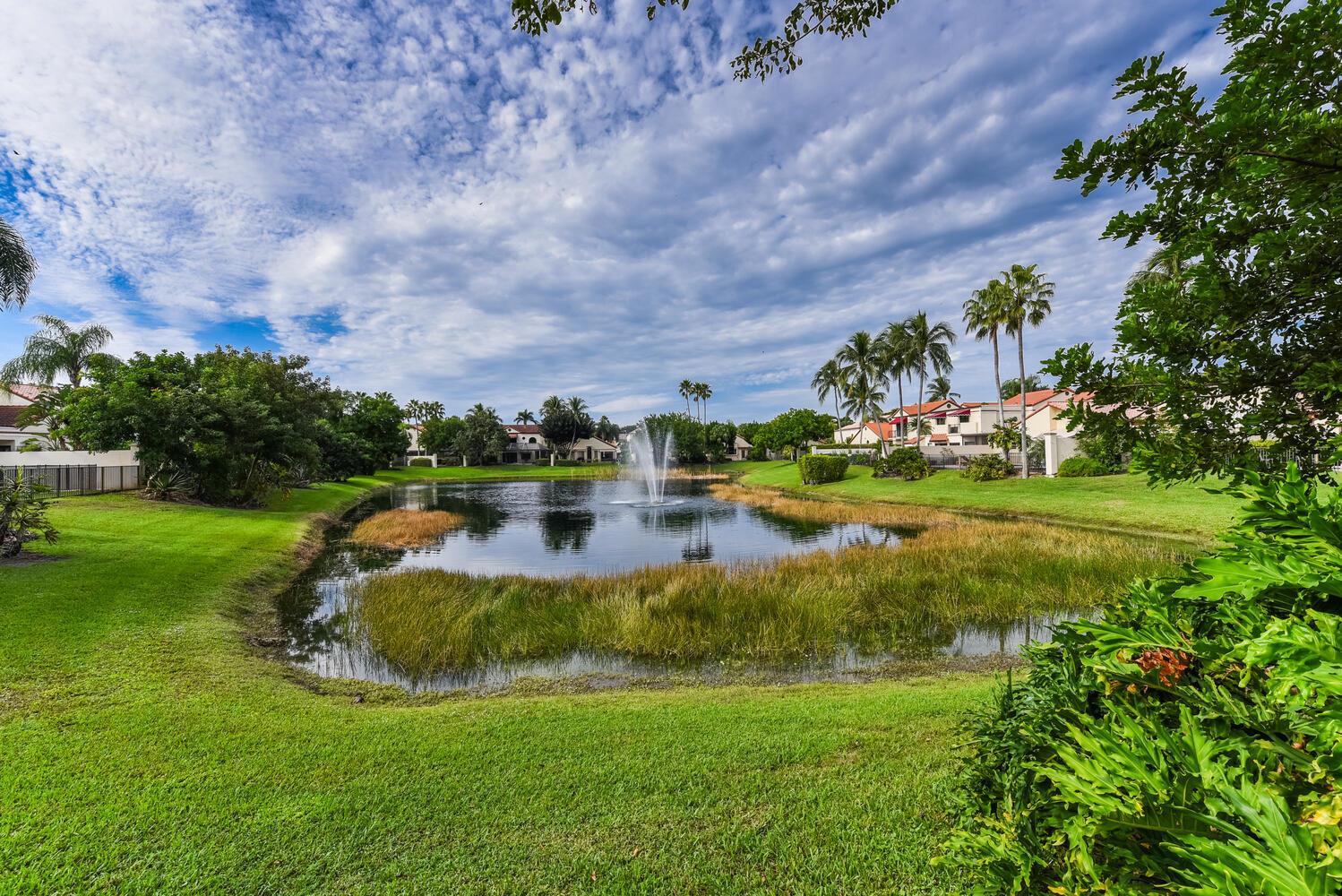 You must see this beautifully renovated single story lake front home in the gated community of Valencia at Boca Pointe! New modern wood flooring throughout! Kitchen redone with quartz counters and stainless steel appliances! Both bathrooms are new with modern European tile! Membership available, but not mandatory at Boca Pointe that includes golf, tennis, and social events! HOA fees include landscaping, cable, exterior house painting and security.