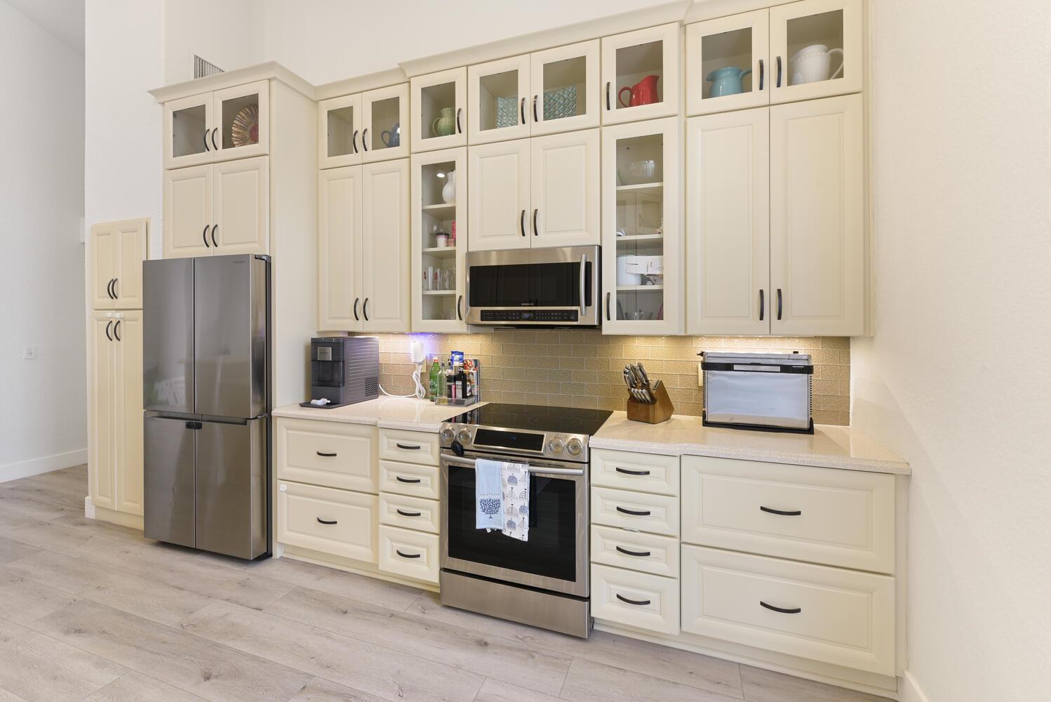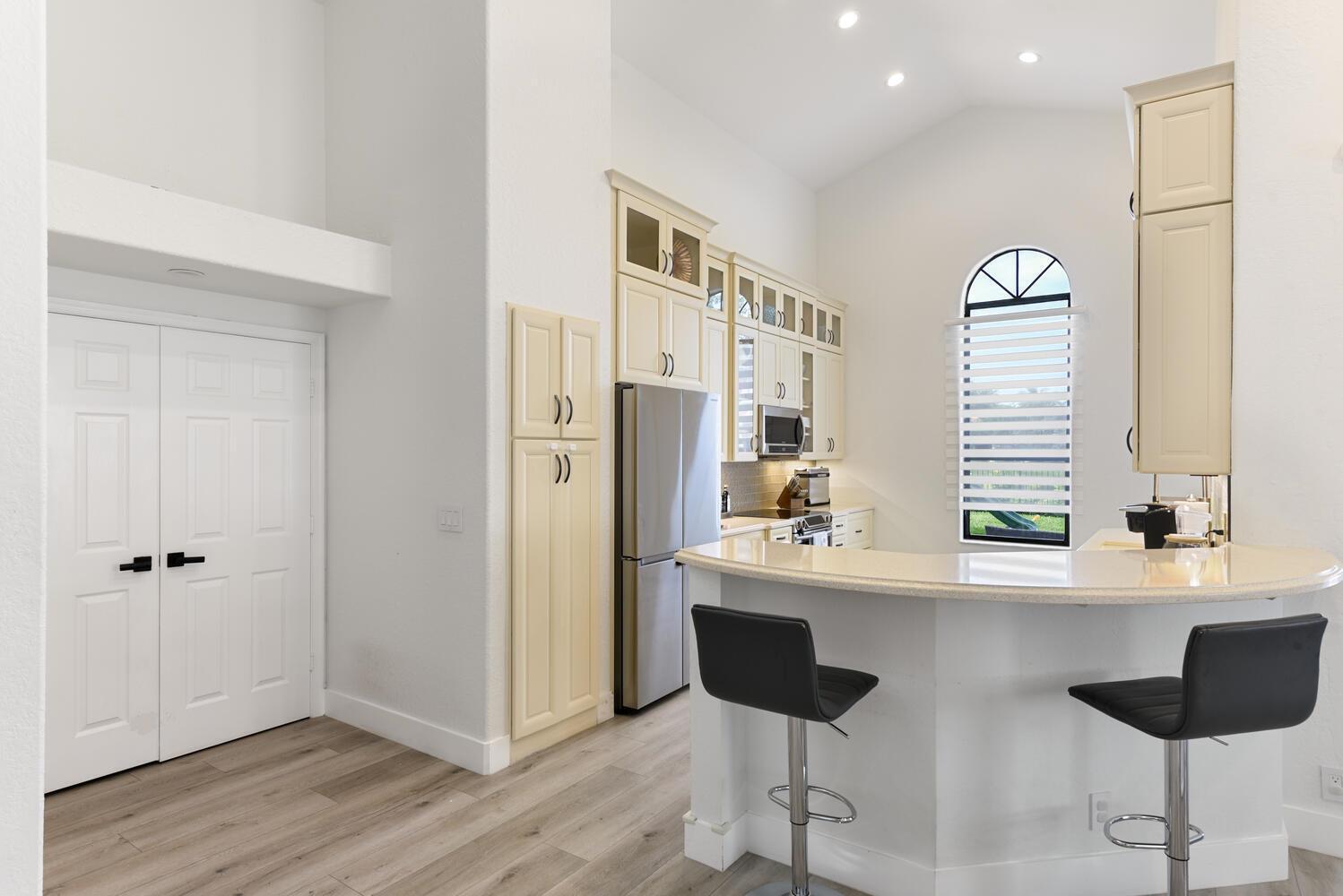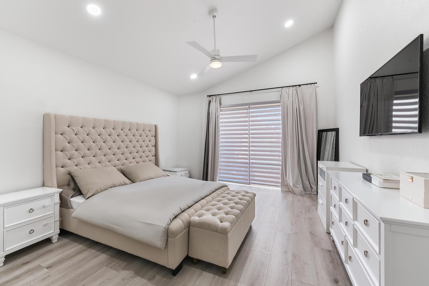You must see this beautifully renovated single story lake front home in the gated community of Valencia at Boca Pointe! New modern wood flooring throughout! Kitchen redone with quartz counters and stainless steel appliances! Both bathrooms are new with modern European tile! Membership available, but not mandatory at Boca Pointe that includes golf, tennis, and social events! HOA fees include landscaping, cable, exterior house painting and security.