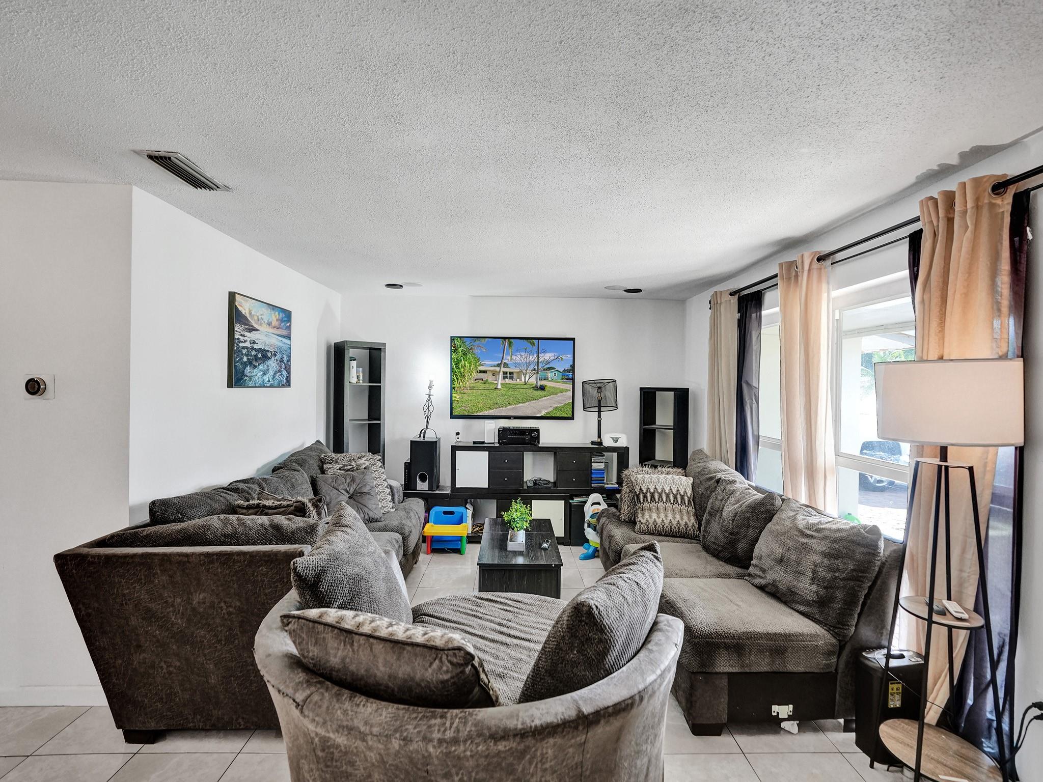 Exquisite water-view residence updated to the MAX! This charming single-family home in Sunrise Golf Village boasts 2 bedrooms and 2 baths, with an additional 3rd bedroom conversion in the attached 1-car garage, complete with a closet for added convenience. No HOA! The home has been meticulously updated, featuring a new roof, and impact windows. The modern kitchen is equipped with stainless steel appliances, perfect for entertaining guests. Generously sized driveway, allowing for multiple vehicles. The master bath has been tastefully remodeled to enhance comfort and luxury. A separate room is dedicated to the convenience of a washer and dryer. Step outside to a fenced backyard that faces the water, offering a tranquil retreat.