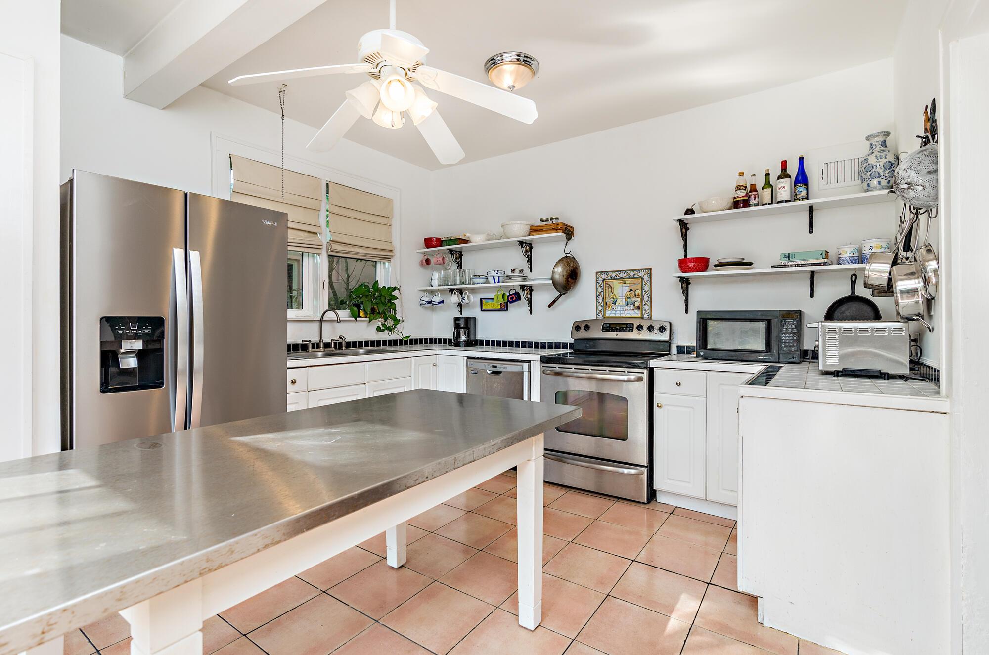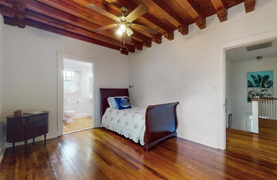 Historic 1920s Spanish Mission in the heart of SoSo just steps from Flagler Drive and the waterfront promenade along the Intracoastal Waterway. Everyone loves the two-story Mizner-inspired Spanish Style homes and this one has all the charm of a bygone era. The home has 3 bedrooms and 2 baths upstairs, plus an upstairs laundry for convenience. Downstairs, there is a 4th bedroom (which would also make a great den or office) and a powder room as well. The original gleaming wood floors, graceful arches and detailed ceilings (including Pecky Cypress) add to the vintage appeal. All impact windows and a new tankless water heater! Formal dining room and a spacious kitchen with room for an island. French Doors lead to the beautiful in-ground swimming pool with patio and tropical landscaping.